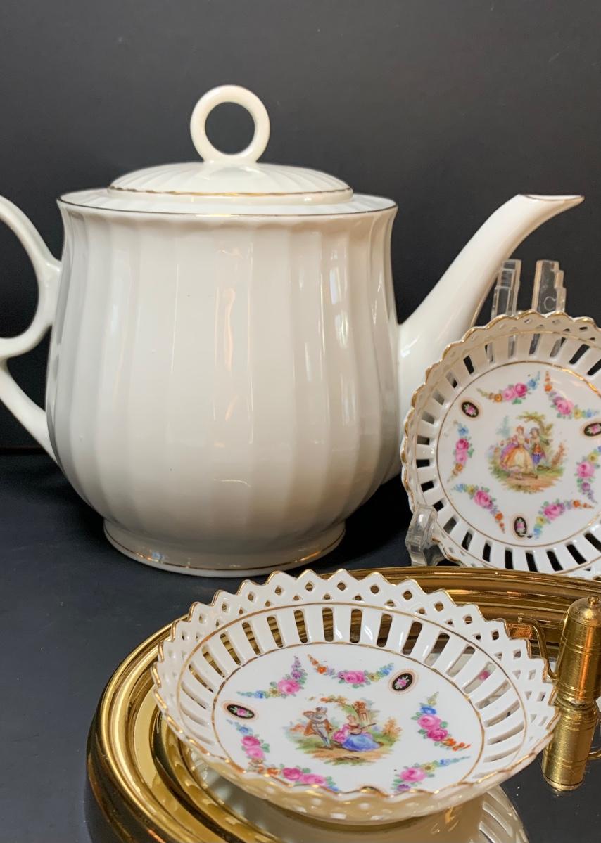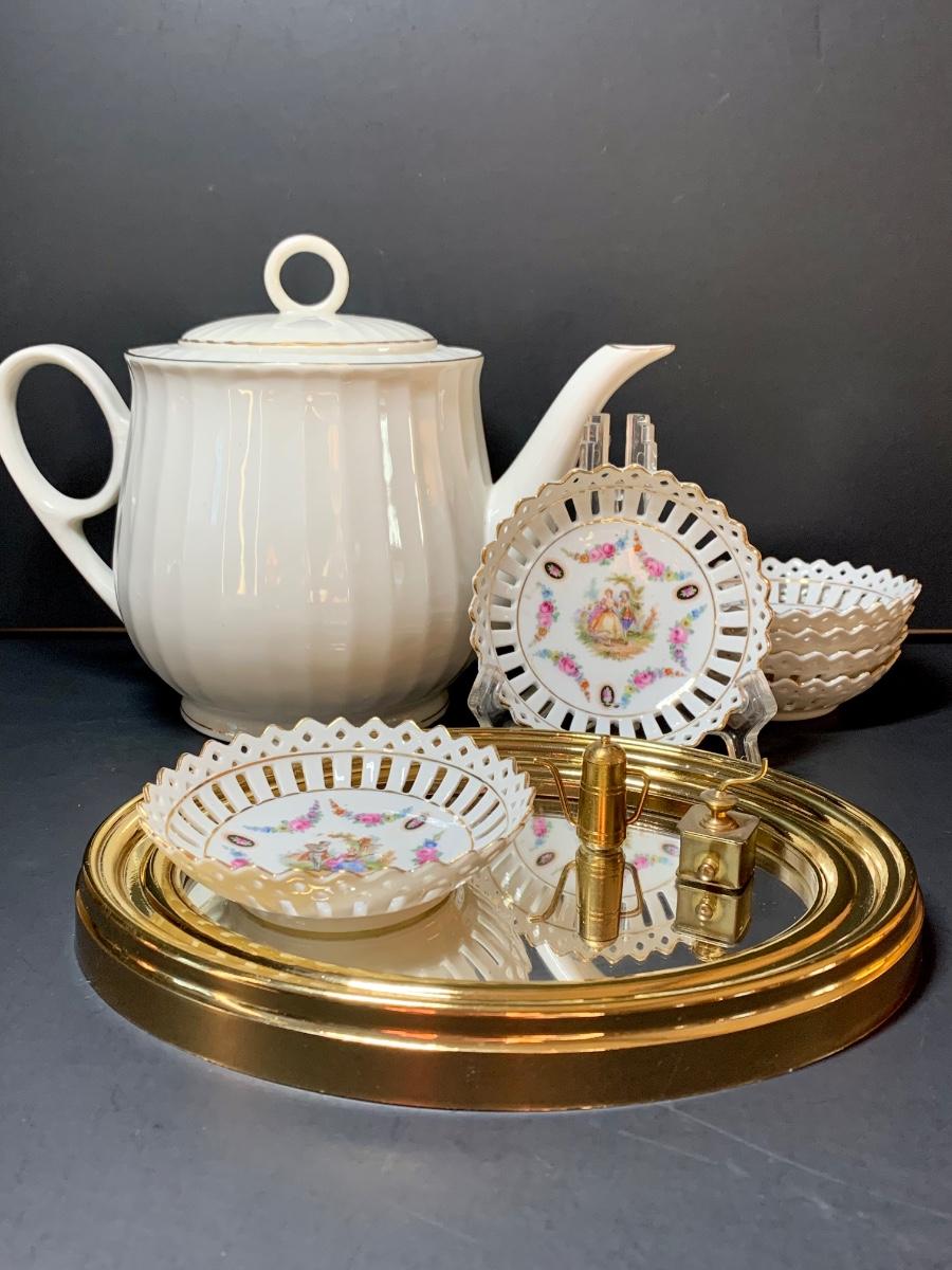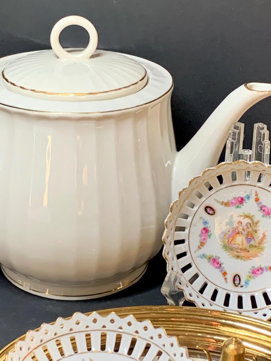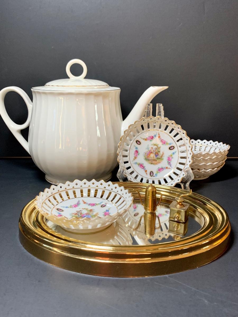 Lot 226R: Bavaria Trinket Dishes, Gibson Teapot, Brass Miniatures & More