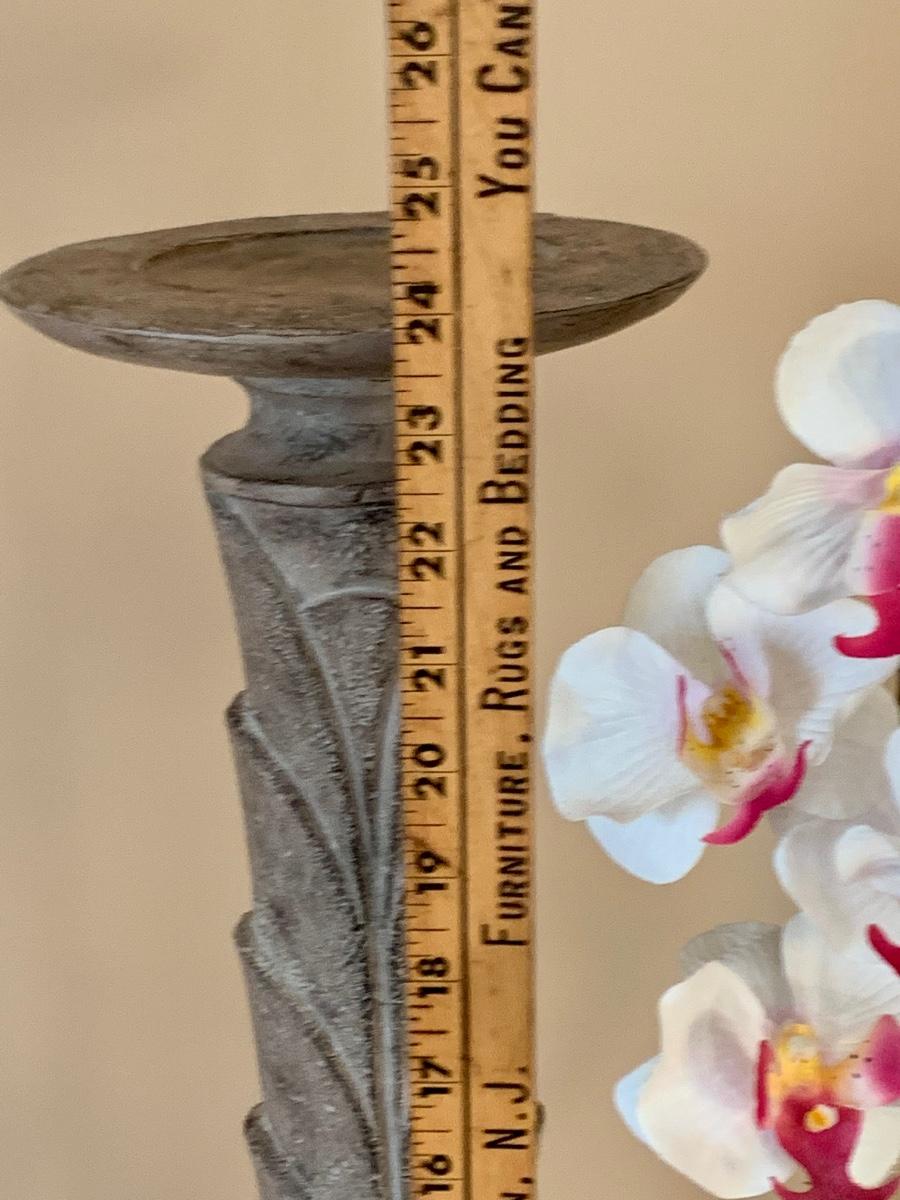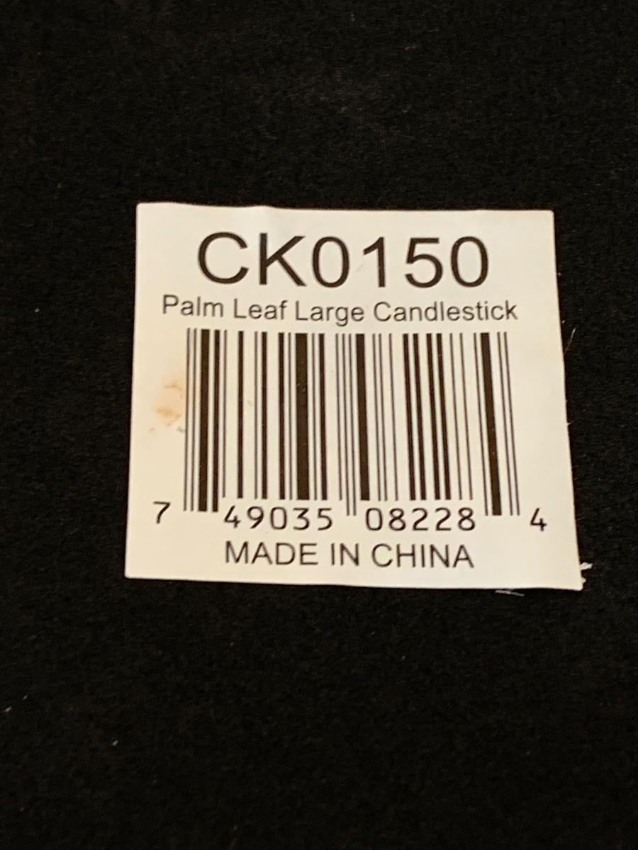 Lot 222R: Tall Palm Leaf Candlestick and Faux Orchid