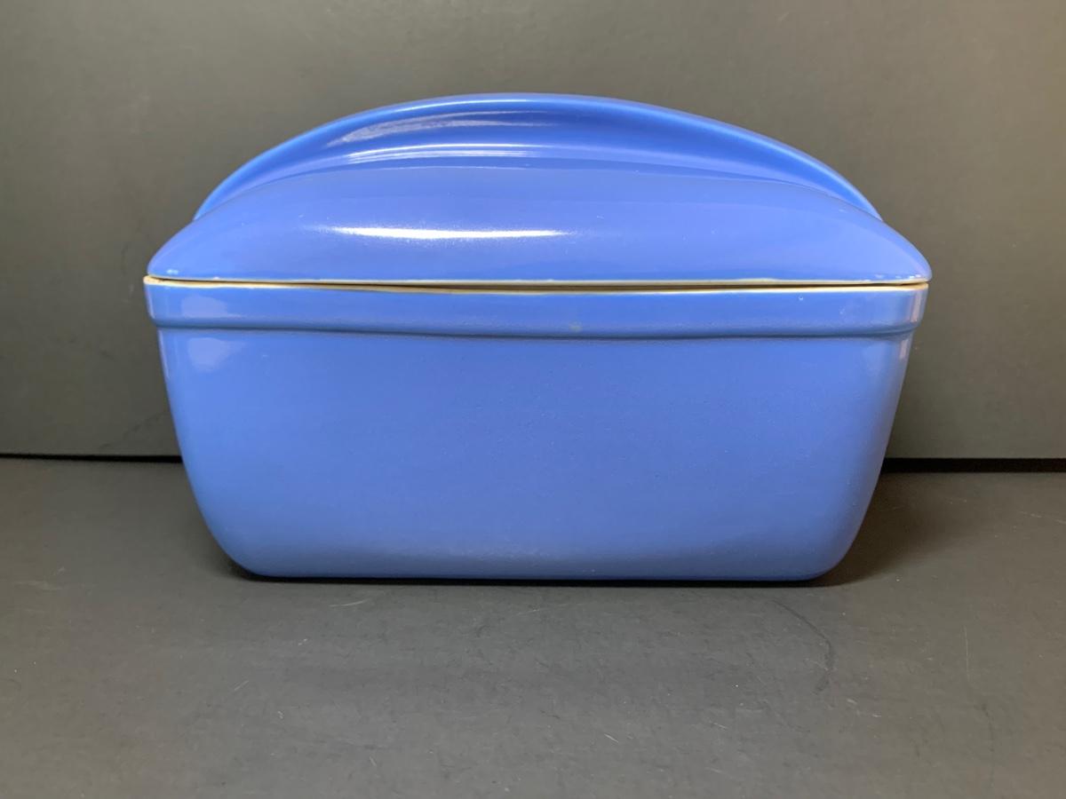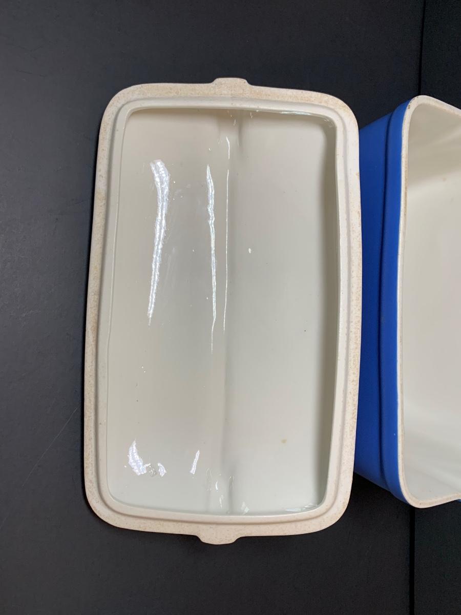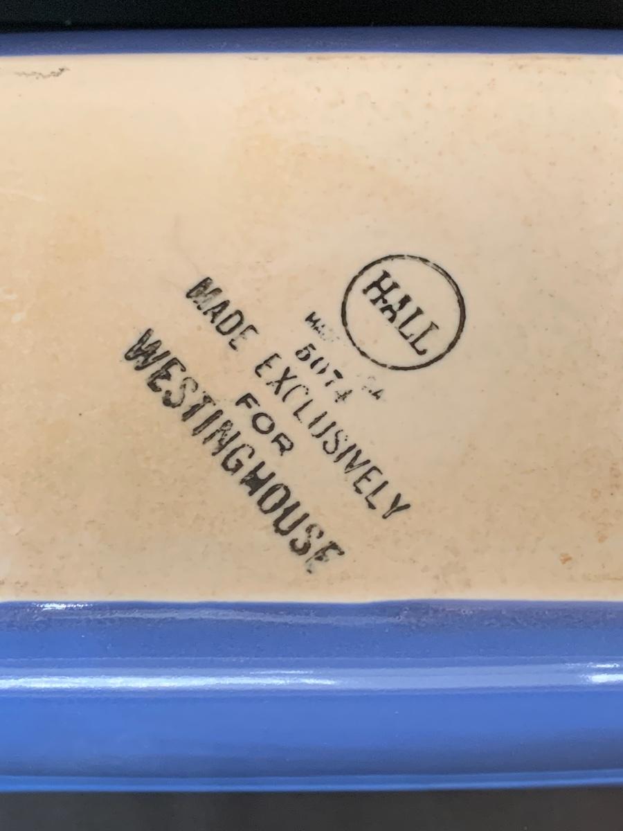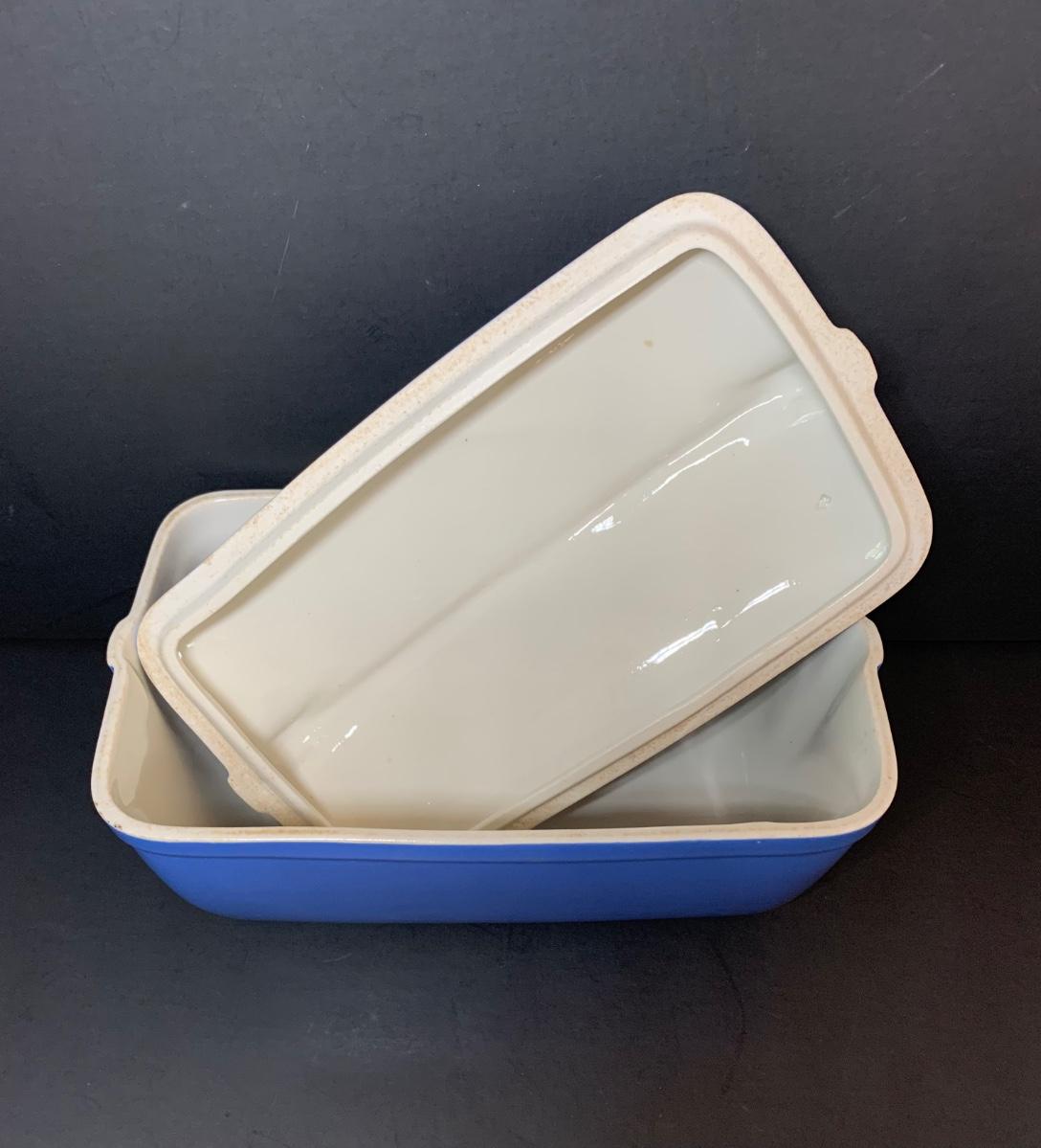 Vintage Hall for Westinghouse blue ceramic loaf pan With lid along with Corning Ware casserole cover dish - this is a great kitchen collection!