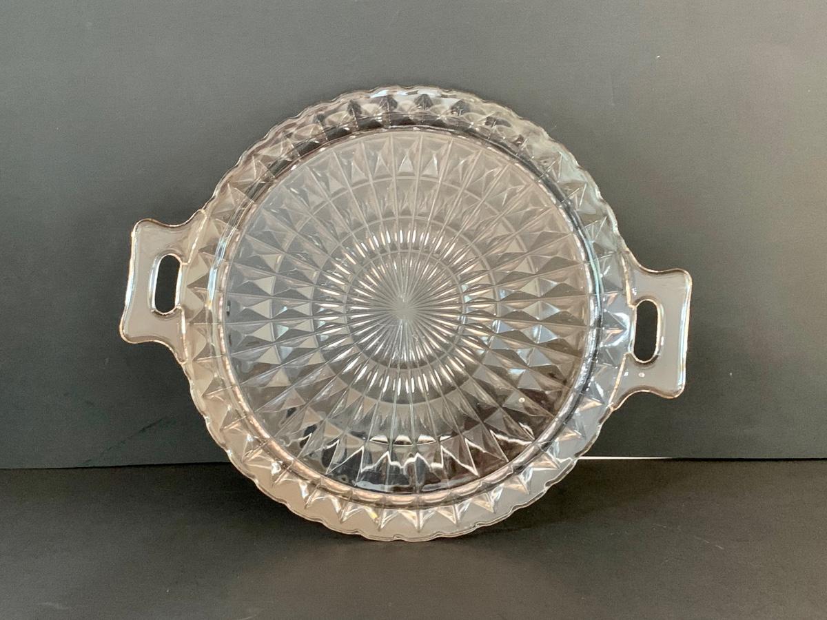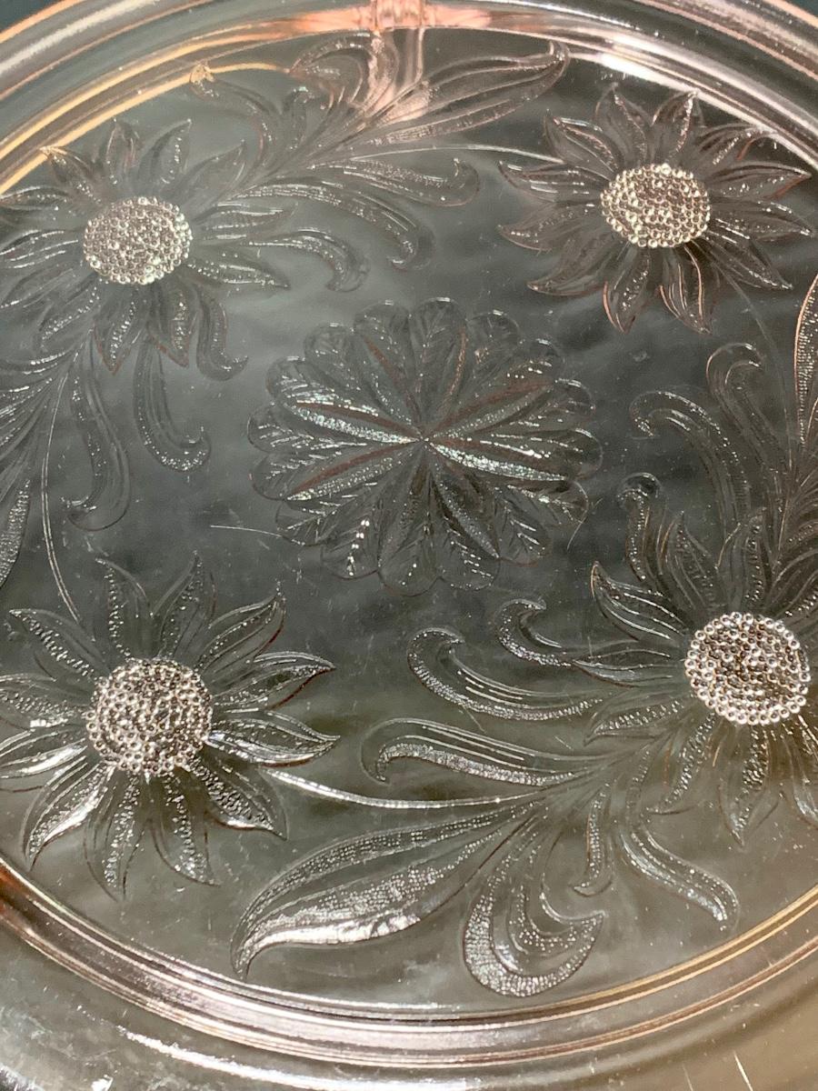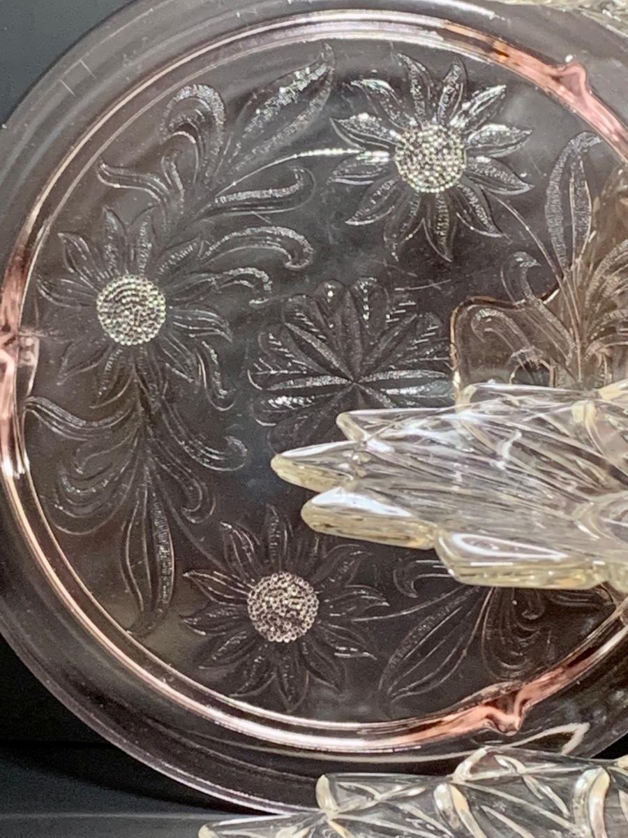 Lot 218R: Pink Depression Glass Cake Plates & Federal Glass Tiered  Tidbit Stand