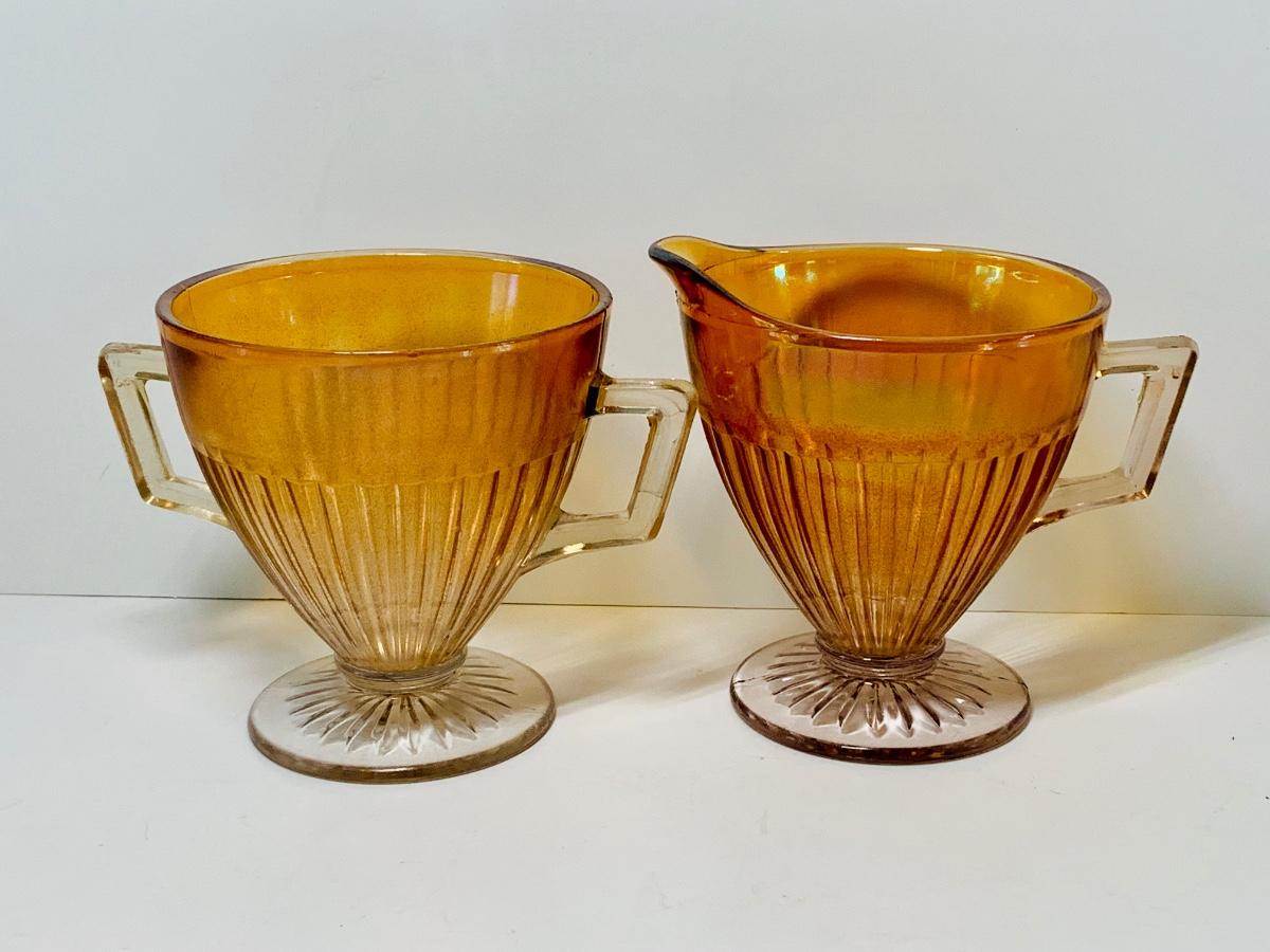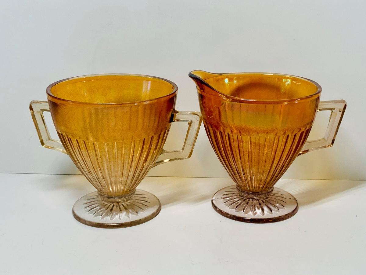Lot 215R: Carnival Creamer & Sugar Set, Amber Plates & More