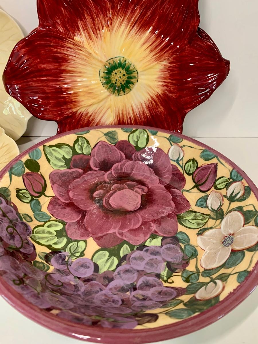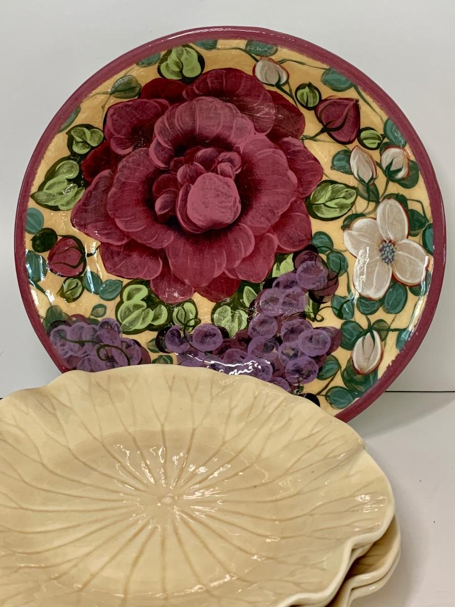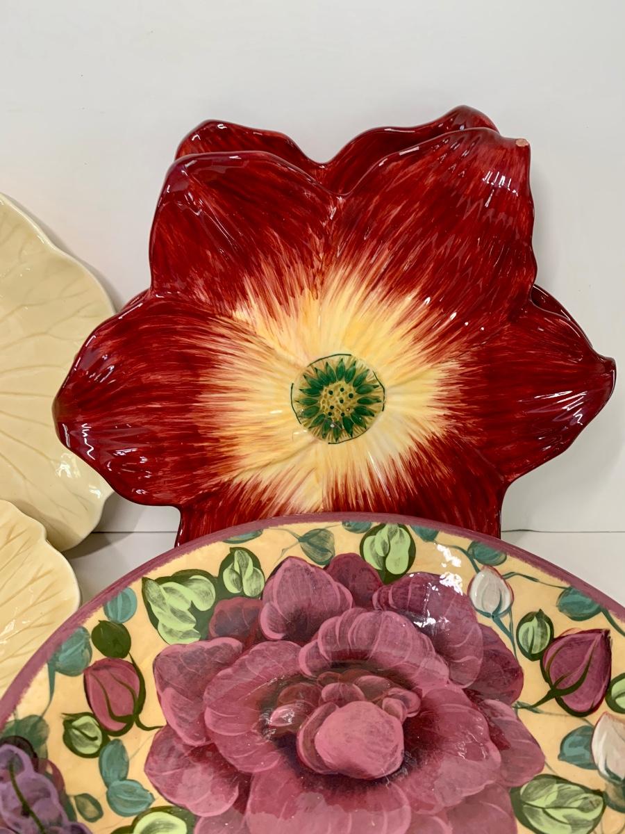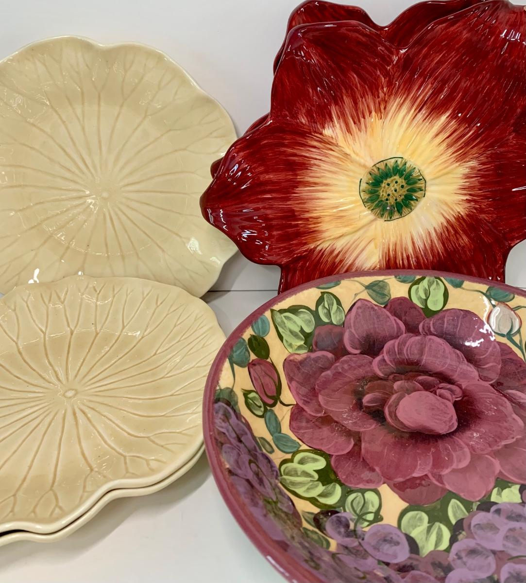Lot 211R: Floral Serving Plates: Lotus Metlox, Nanette Vachor Ambiance Collections & More