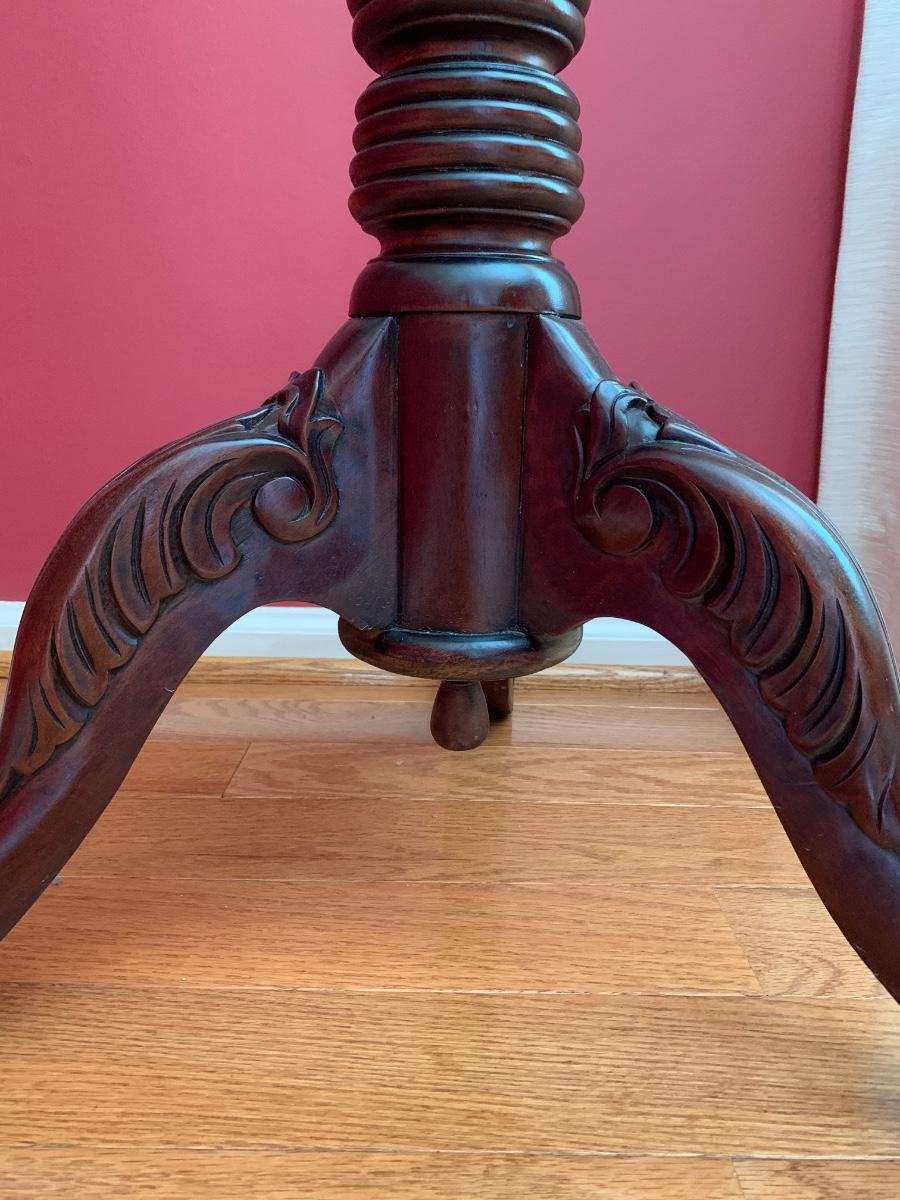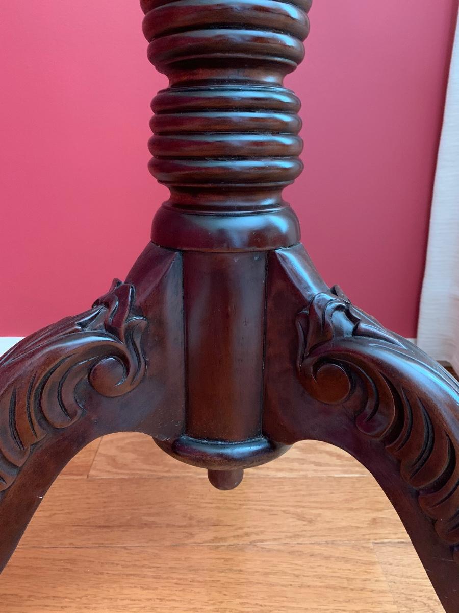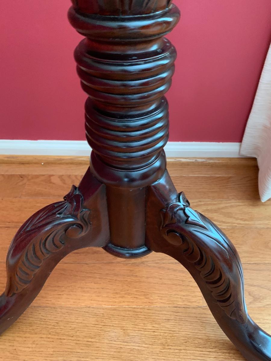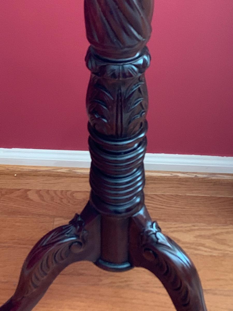 Lot 204R: Tall Wood Spindle Leg Plant Stand with Carved Accents & Mercury Glass Vase