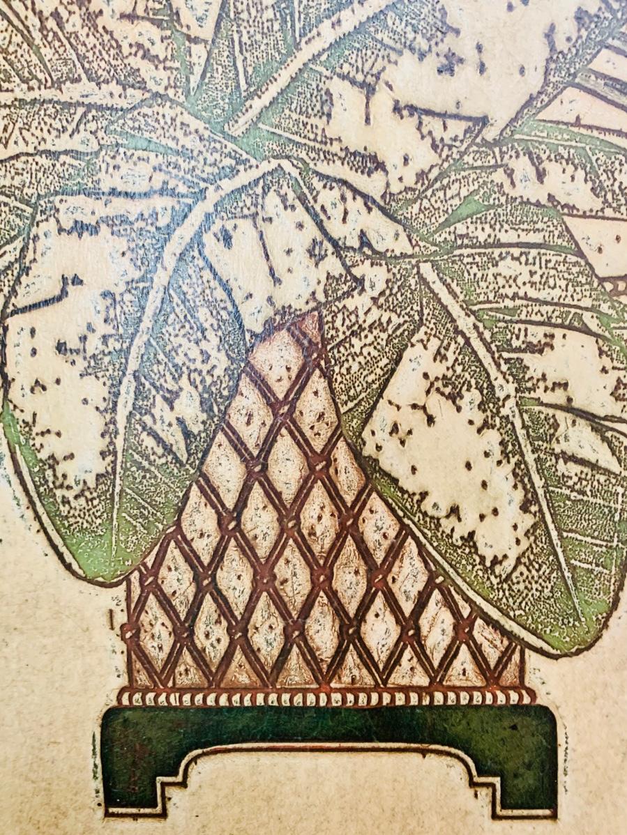 Lot 202R; Large Artwork Asian Inspired Planter (Not Under Glass/Gorgeous)