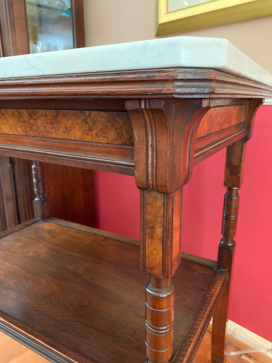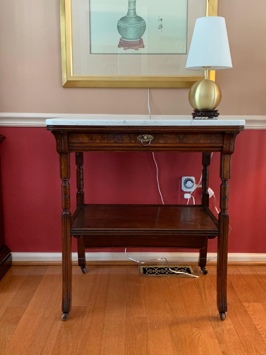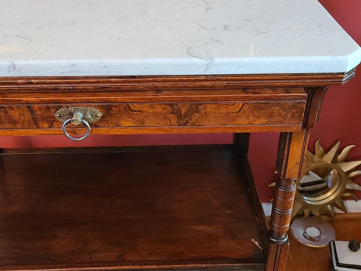 Lot 201R: Antique Marble Top Table with 2 Drawers (One Hidden)