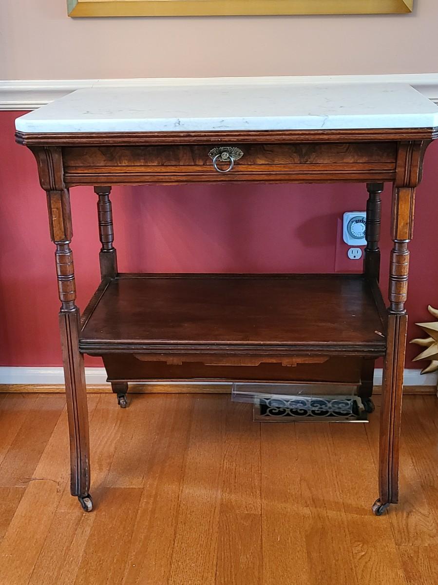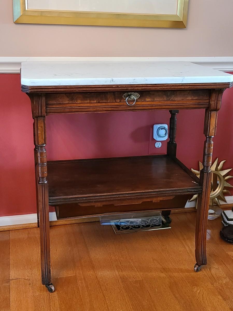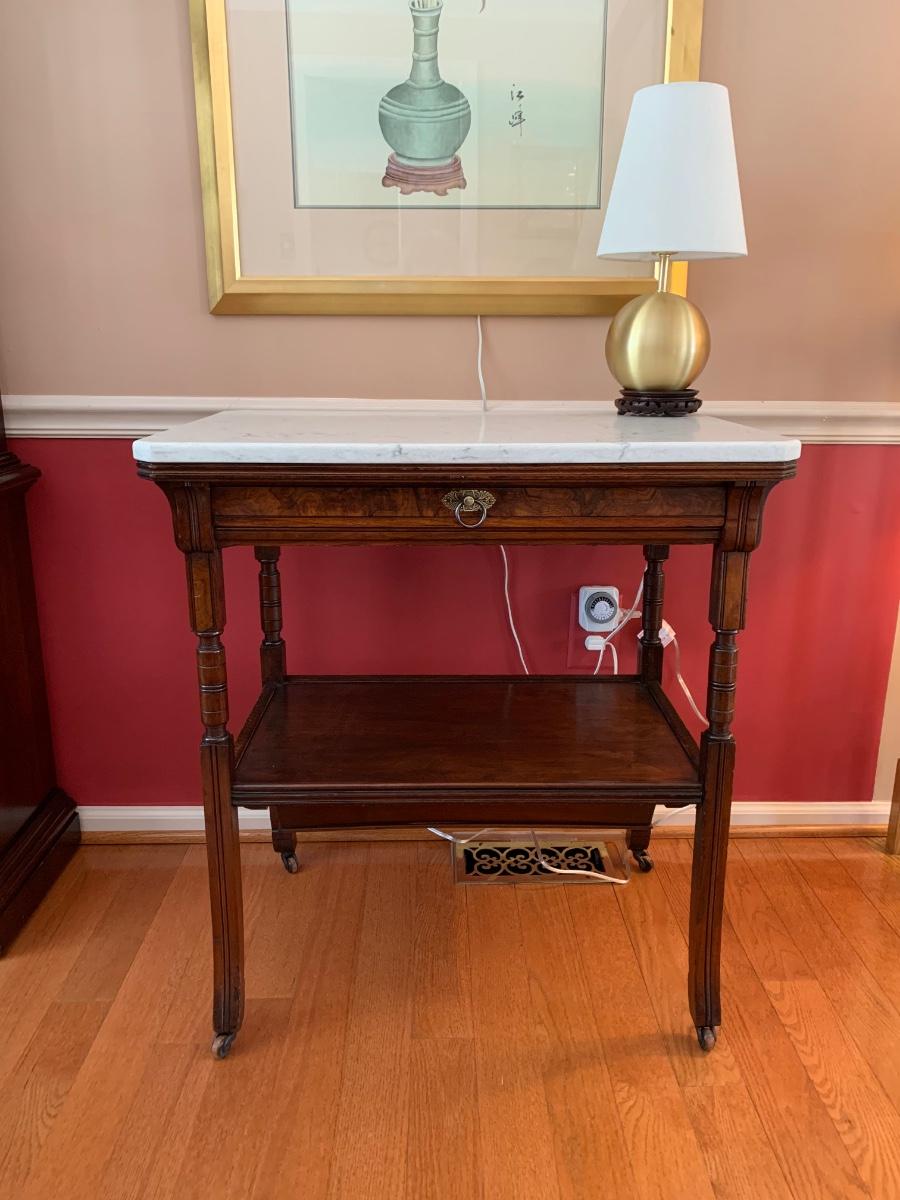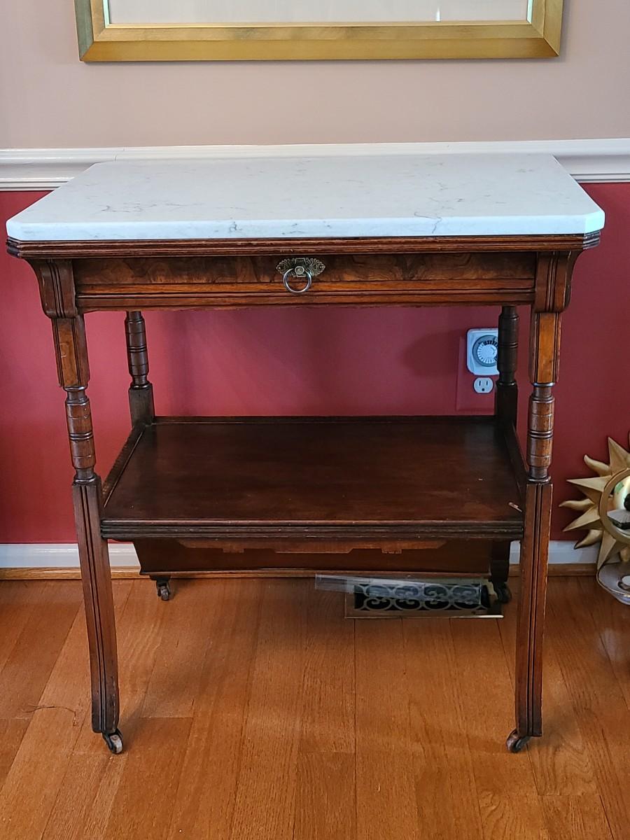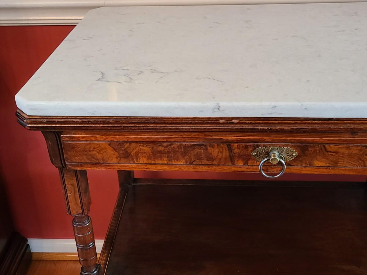 Lot 201R: Antique  Marble Top Table with 2 Drawers (One Hidden)
