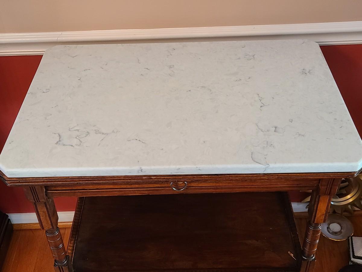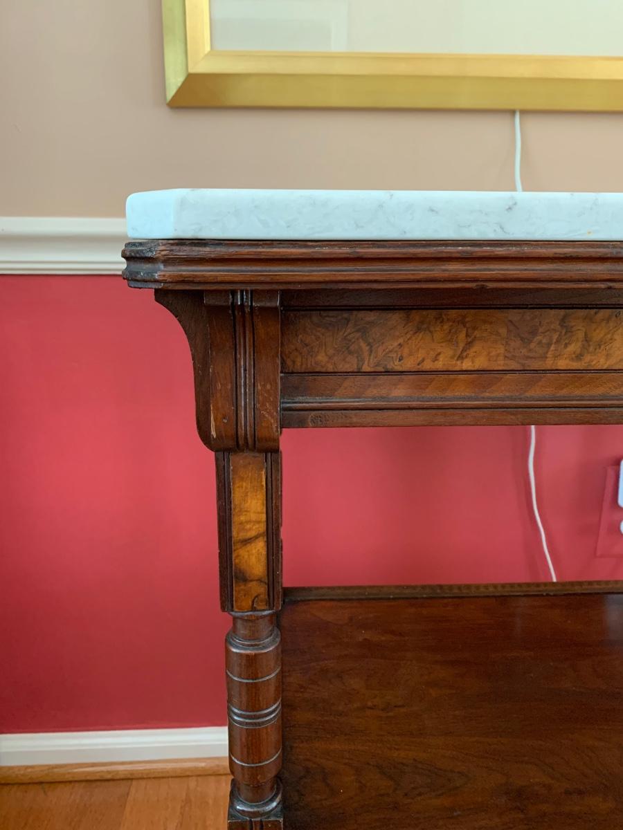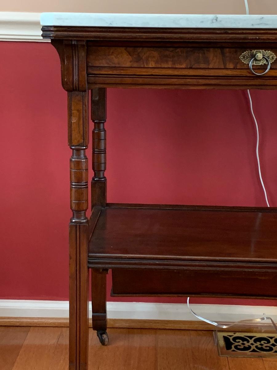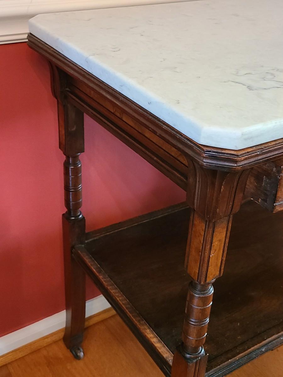 Lot 201R: Antique  Marble Top Table with 2 Drawers (One Hidden)
