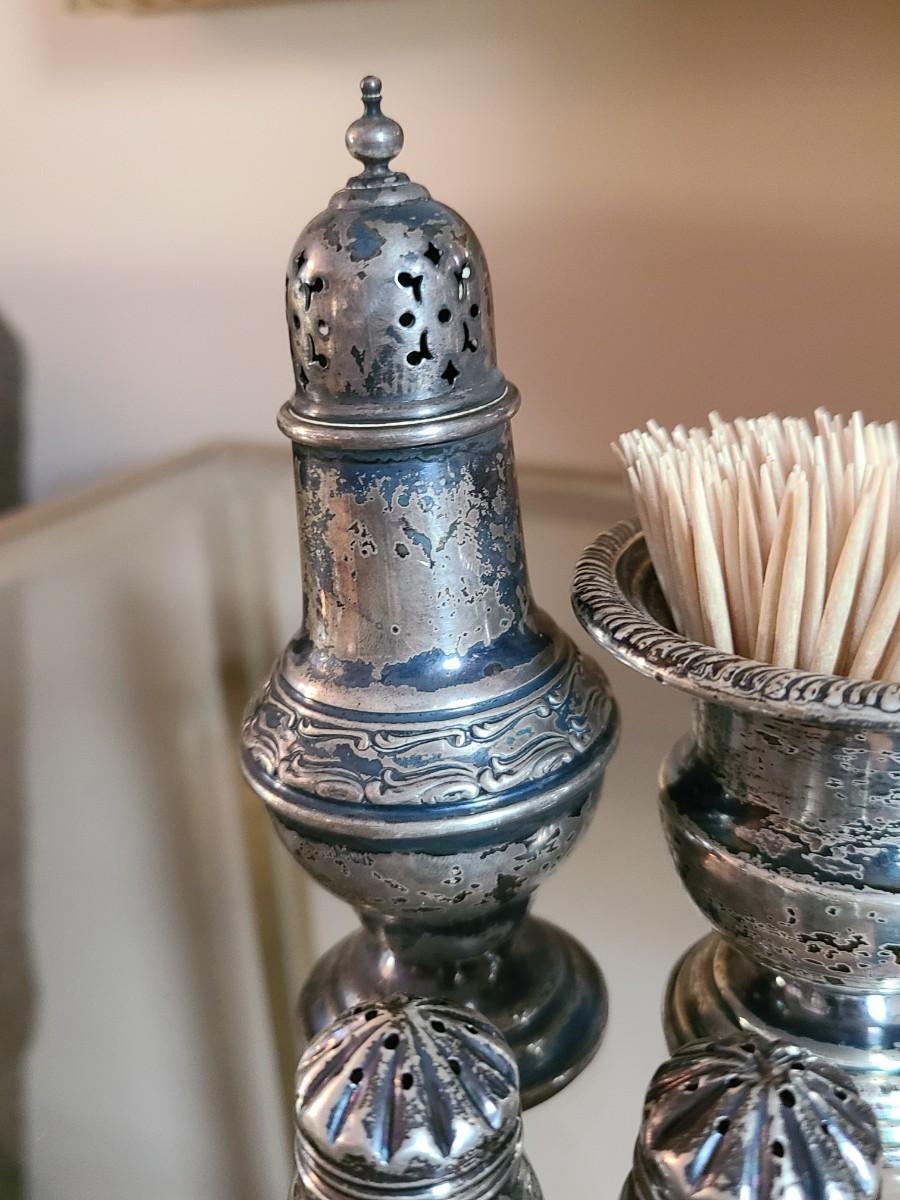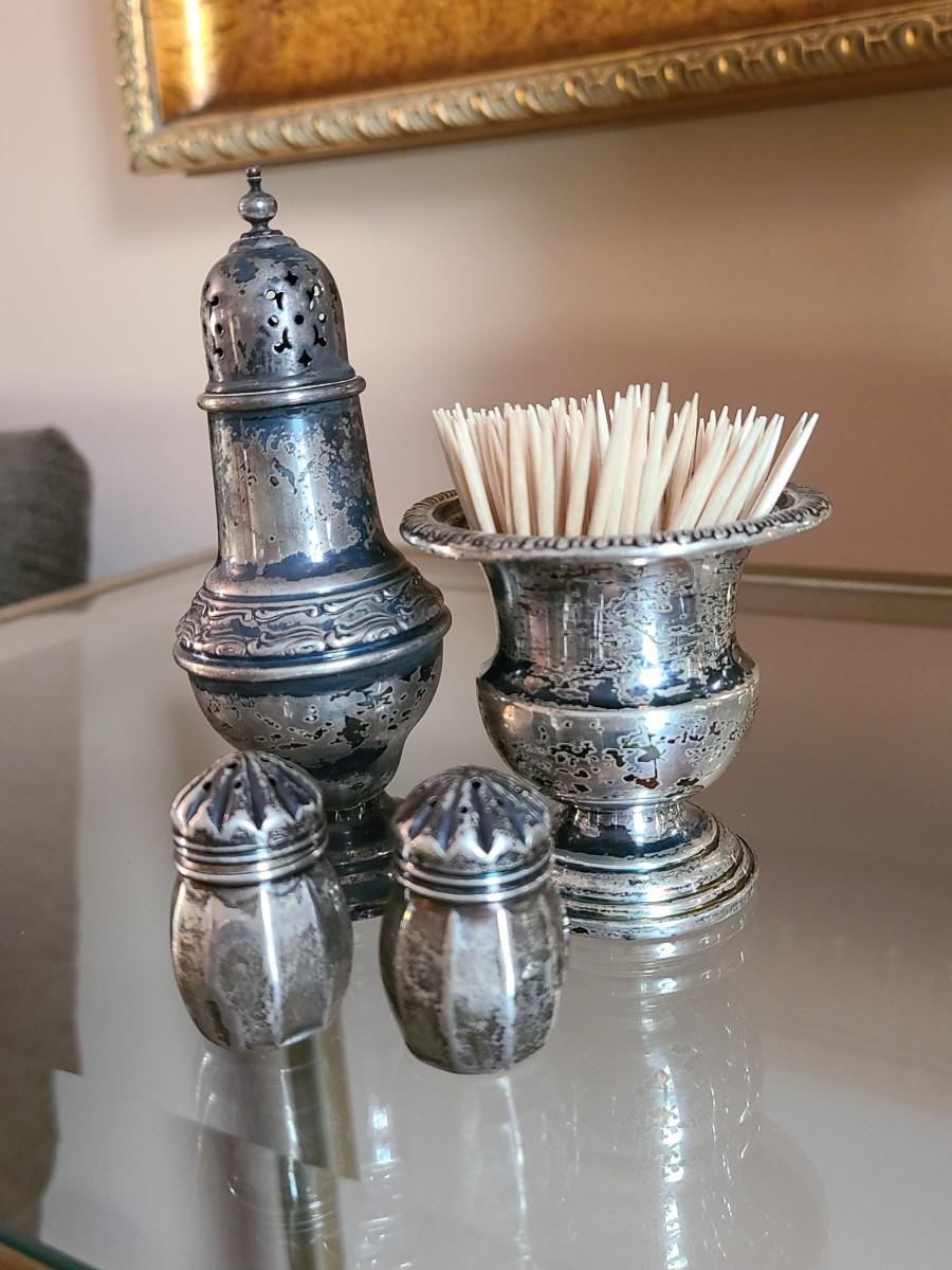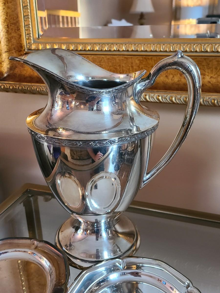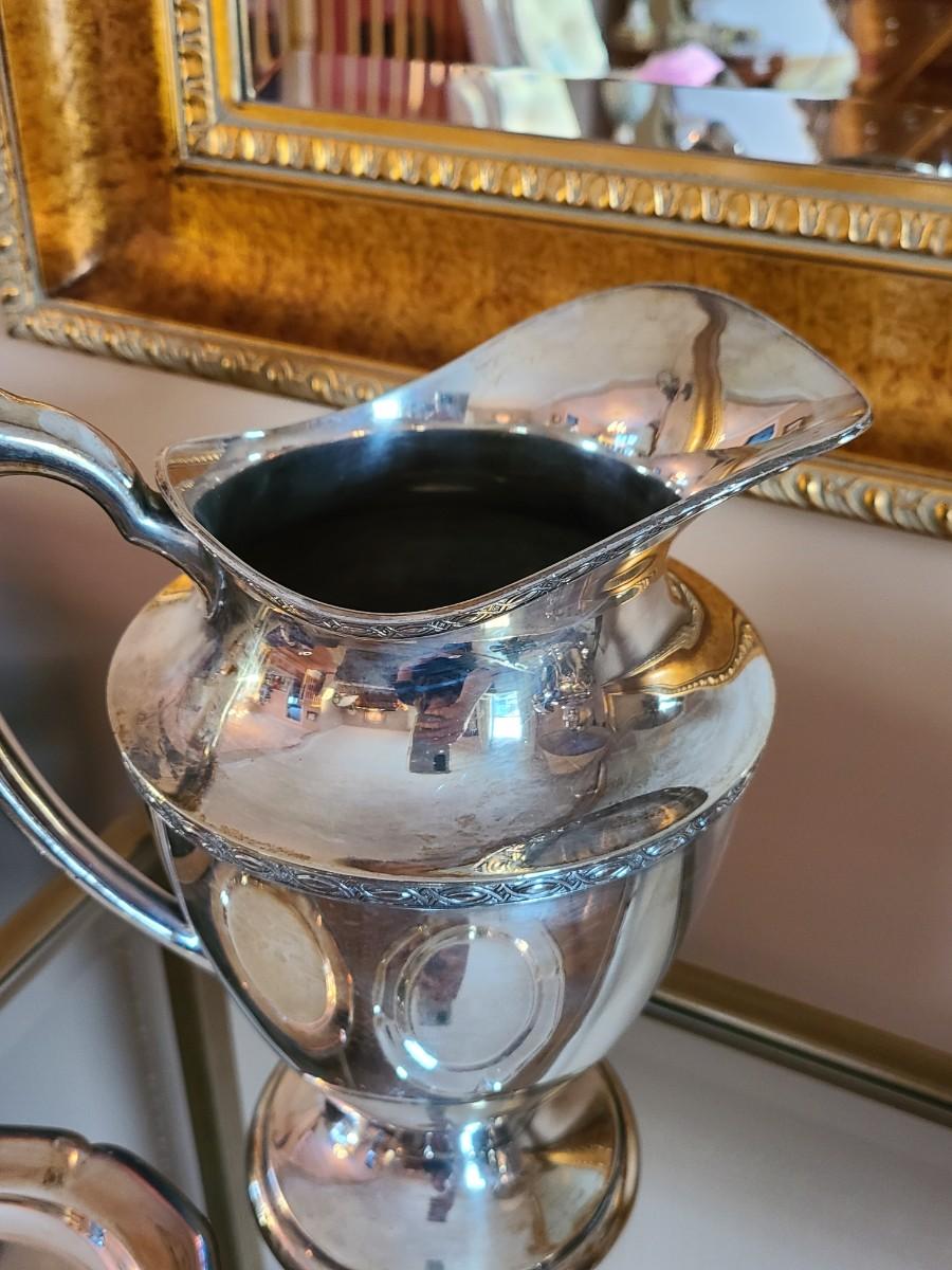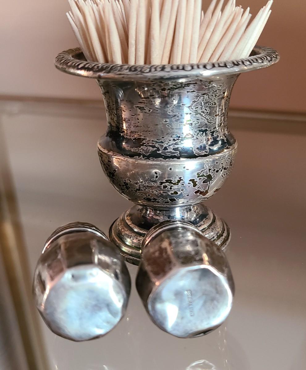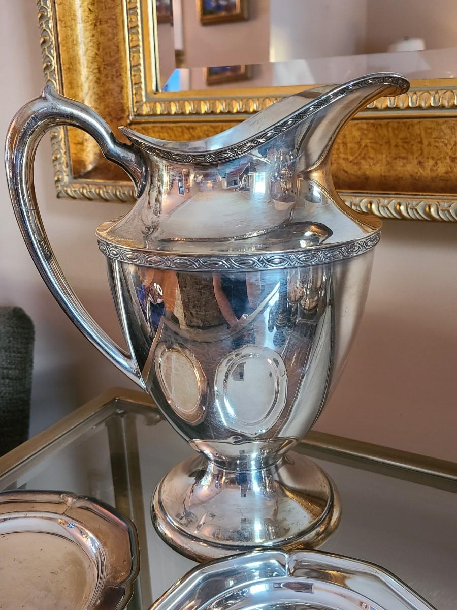 Sterling Plated Wallace pitcher and small trays. The small mutineer, salt/pepper and toothpick holder are all vintage, pre-owned pieces of marked sterling. Please see all pictures as they are the best representation of the items. The pictures show condition, measurements if taken, and what is included in the lot. Due to the large amount that we photograph and the time frame, we are not always able to take measurements. All items unless noted, are pre-owned and have been used. If you purchased furniture, you must bring help. We do not allow one person to carry large furniture out on their own. Bring help, tools and a truck for the safety of our client’s homes, and your personal safety. Any damages that result to the property including walls, and floors due to moving of the furniture will be charged to the buyer. Company policy. Thank you.