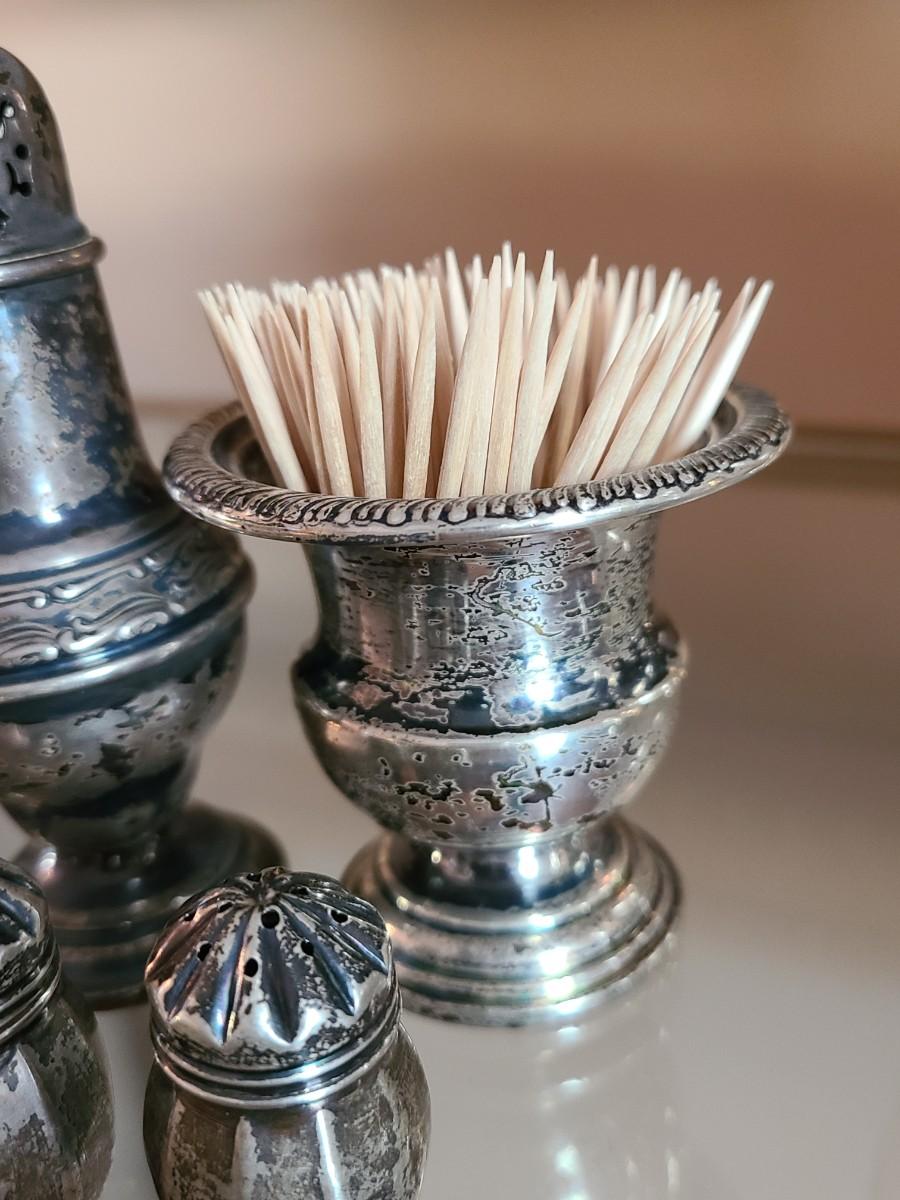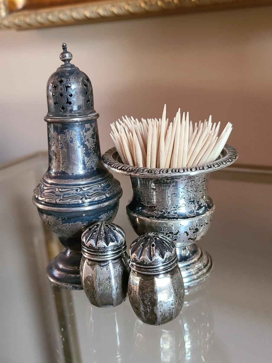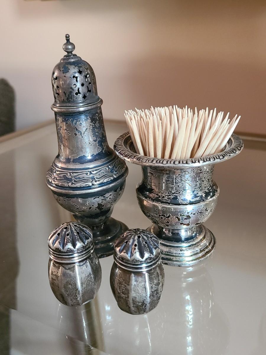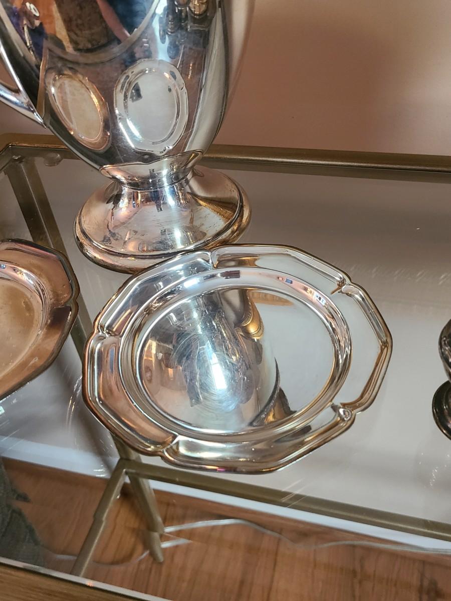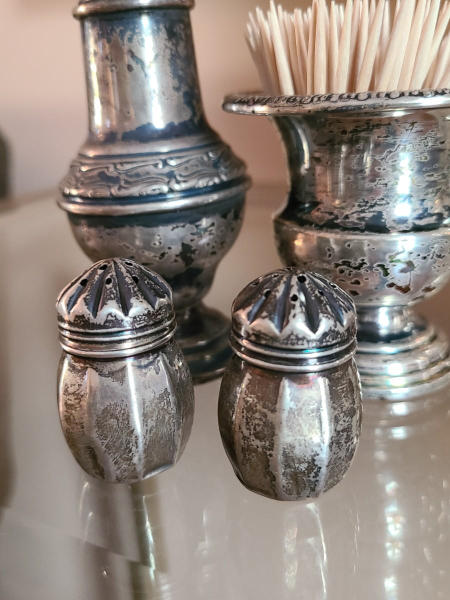 Sterling Plated Wallace pitcher and small trays. The small mutineer, salt/pepper and toothpick holder are all vintage, pre-owned pieces of marked sterling. Please see all pictures as they are the best representation of the items. The pictures show condition, measurements if taken, and what is included in the lot. Due to the large amount that we photograph and the time frame, we are not always able to take measurements. All items unless noted, are pre-owned and have been used. If you purchased furniture, you must bring help. We do not allow one person to carry large furniture out on their own. Bring help, tools and a truck for the safety of our client’s homes, and your personal safety. Any damages that result to the property including walls, and floors due to moving of the furniture will be charged to the buyer. Company policy. Thank you.