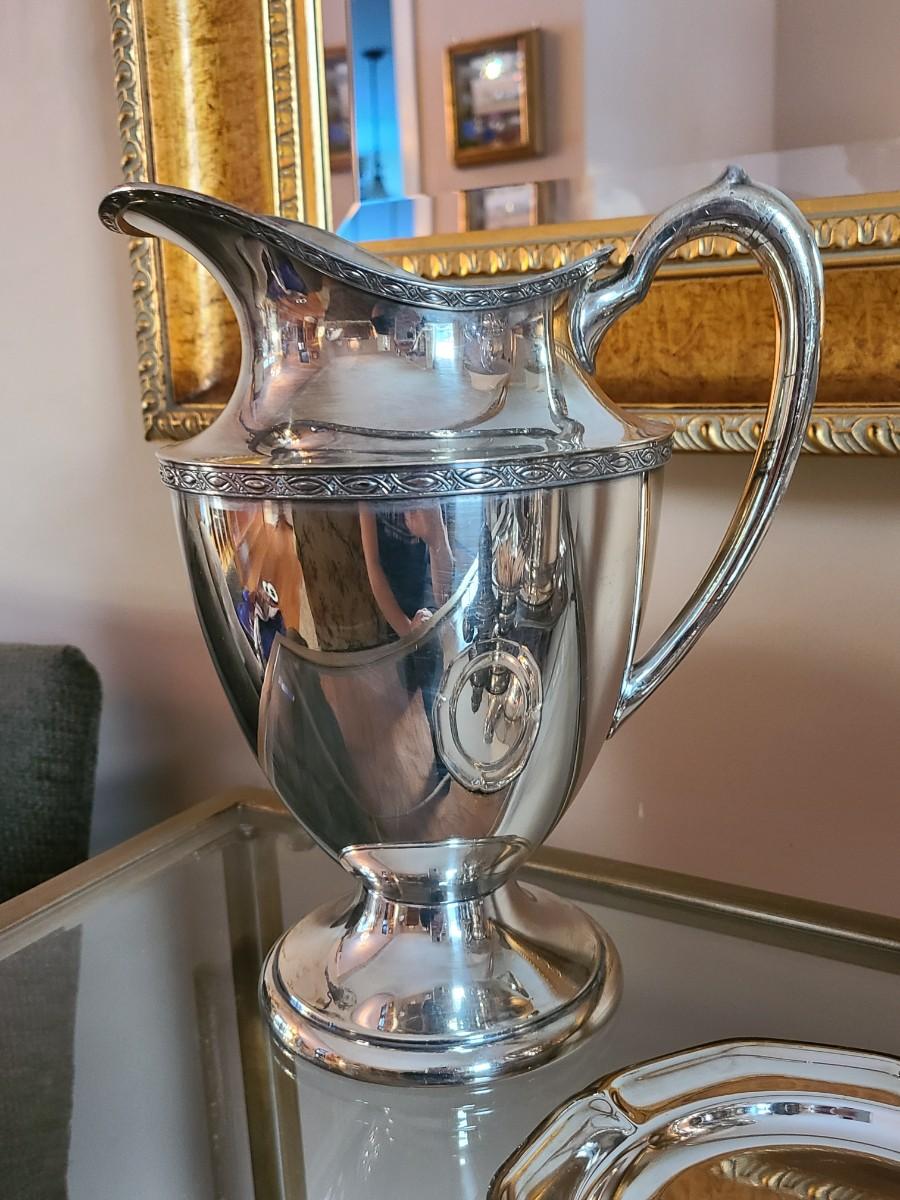 Lot 501: Sterling Silver Serving Pieces, & ESPN Wallace Water Pitcher