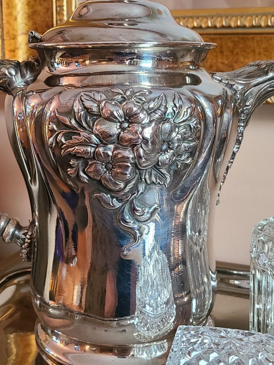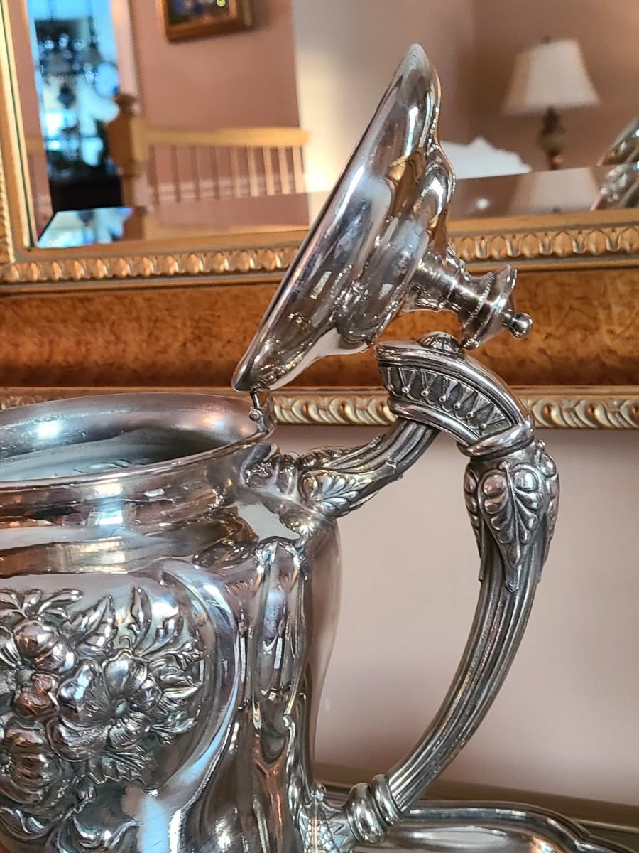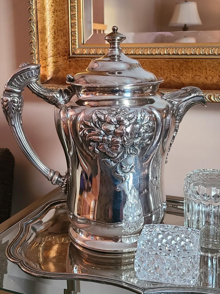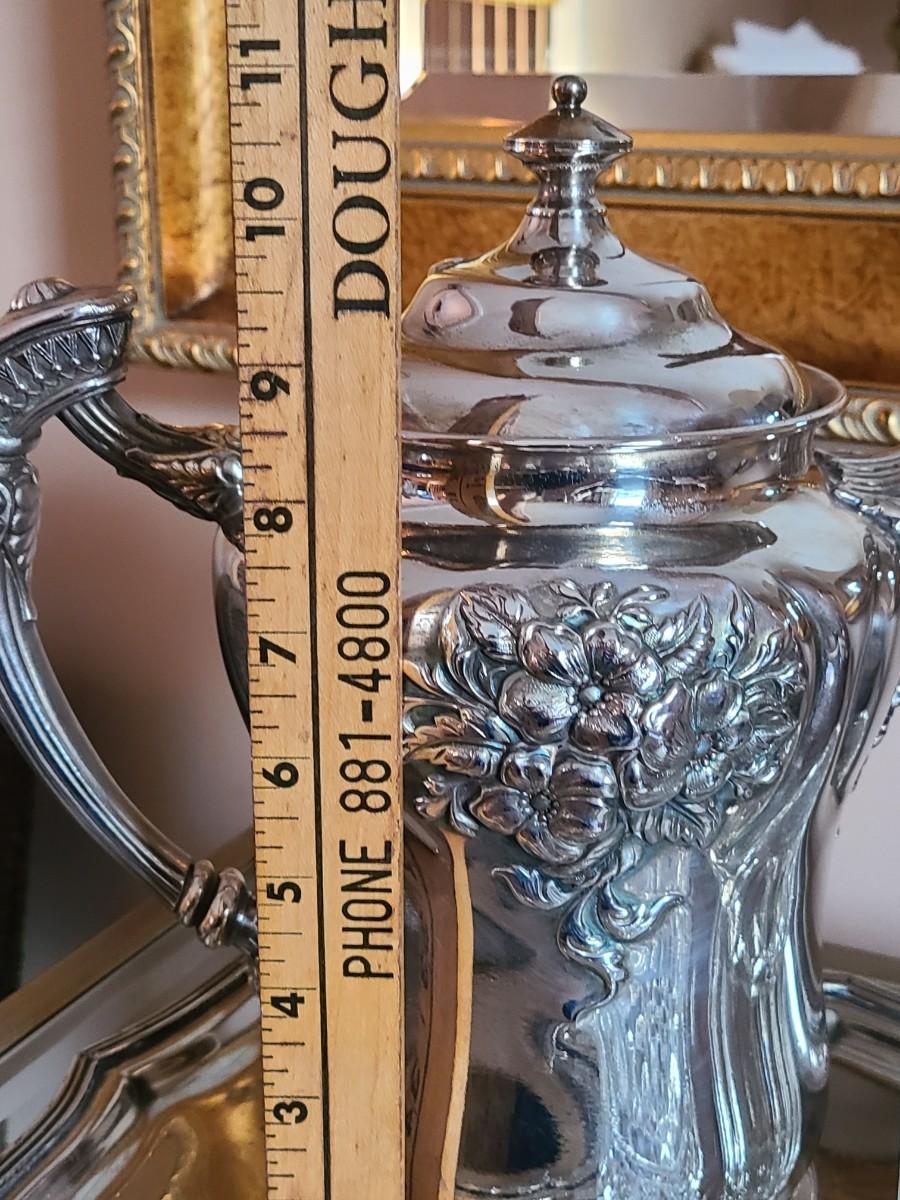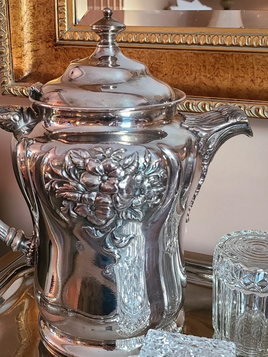 Gorgeous, and I do mean gorgeous water pitcher by Forbes, it is quadruple plated and has been kept in a curio cabinet and looks stunning, So much detail! There is also a silver-plate heavy tray that comes with this and two glass trinket boxes. Looks lovely as display or for function! Please see all pictures as they are the best representation of the items. The pictures show condition, measurements if taken, and what is included in the lot. Due to the large amount that we photograph and the time frame, we are not always able to take measurements. All items unless noted, are pre-owned and have been used. If you purchased furniture, you must bring help. We do not allow one person to carry large furniture out on their own. Bring help, tools and a truck for the safety of our client’s homes, and your personal safety. Any damages that result to the property including walls, and floors due to moving of the furniture will be charged to the buyer. Company policy. Thank you.