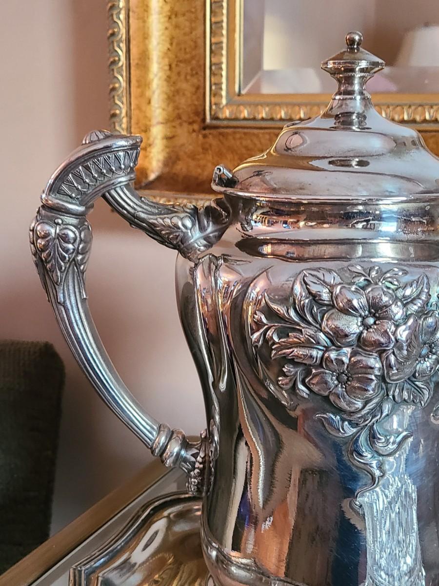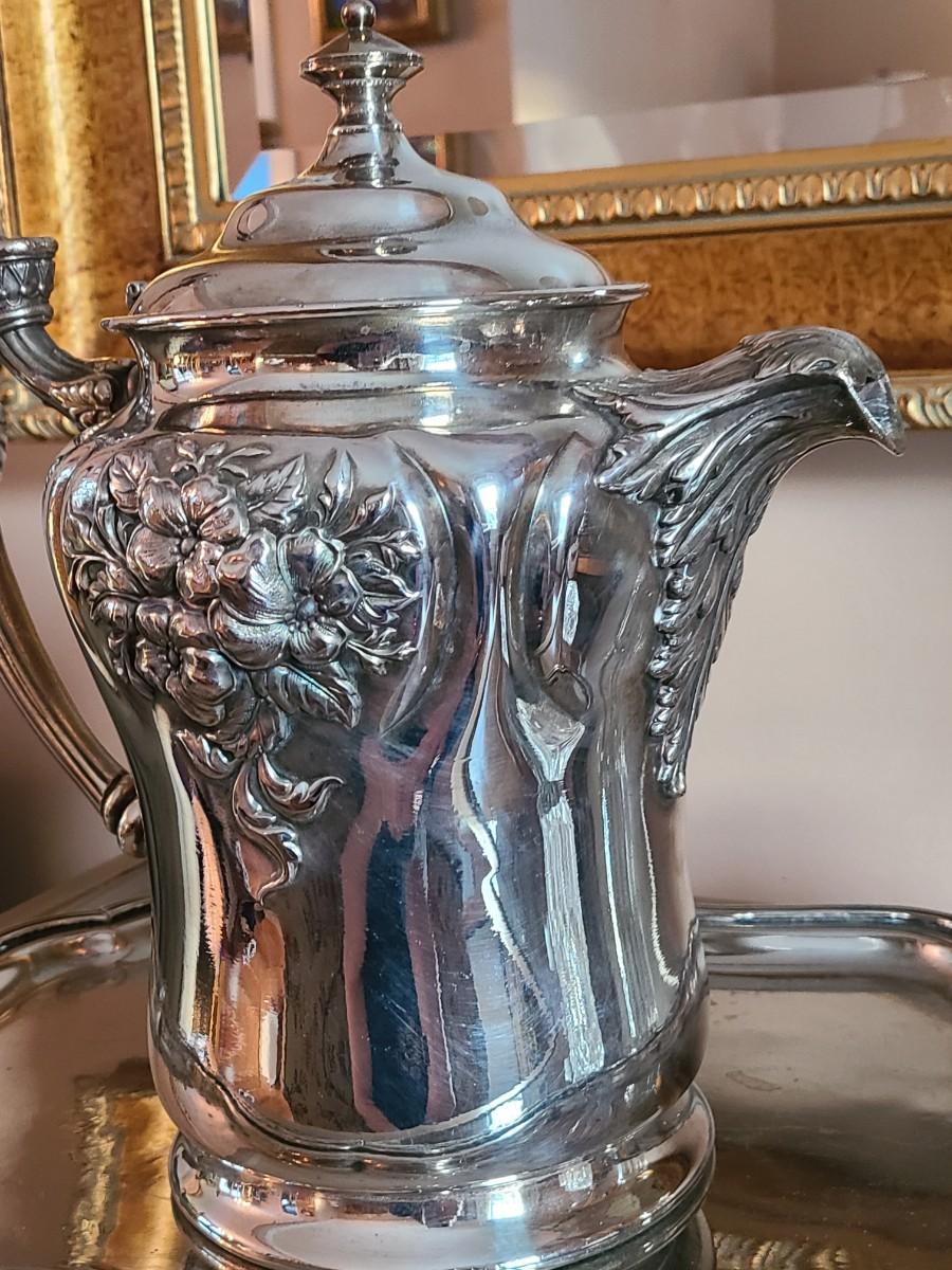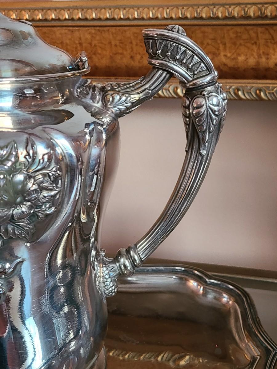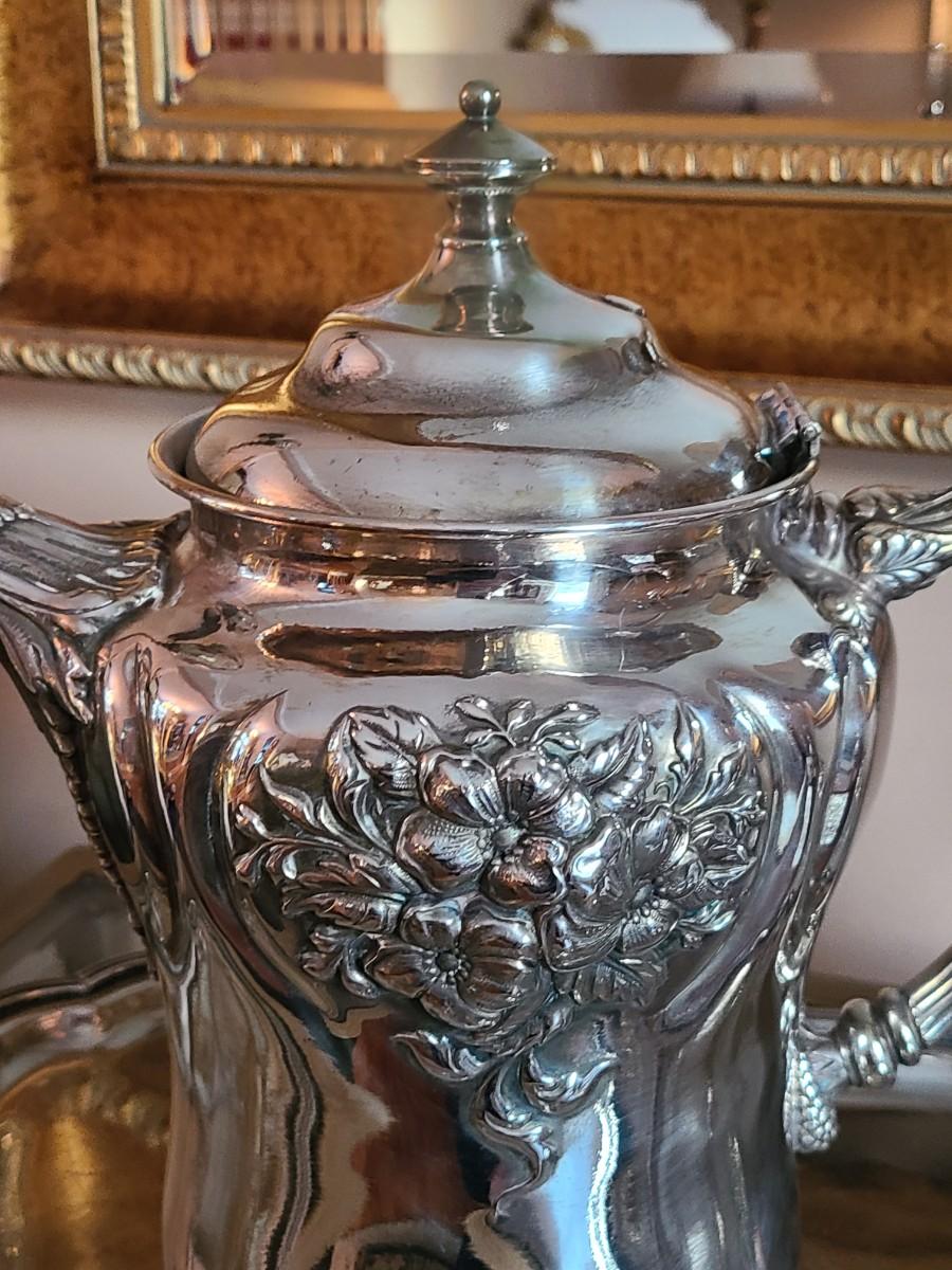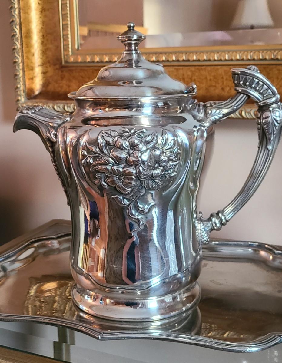 Gorgeous, and I do mean gorgeous water pitcher by Forbes, it is quadruple plated and has been kept in a curio cabinet and looks stunning, So much detail! There is also a silver-plate heavy tray that comes with this and two glass trinket boxes. Looks lovely as display or for function! Please see all pictures as they are the best representation of the items. The pictures show condition, measurements if taken, and what is included in the lot. Due to the large amount that we photograph and the time frame, we are not always able to take measurements. All items unless noted, are pre-owned and have been used. If you purchased furniture, you must bring help. We do not allow one person to carry large furniture out on their own. Bring help, tools and a truck for the safety of our client’s homes, and your personal safety. Any damages that result to the property including walls, and floors due to moving of the furniture will be charged to the buyer. Company policy. Thank you.