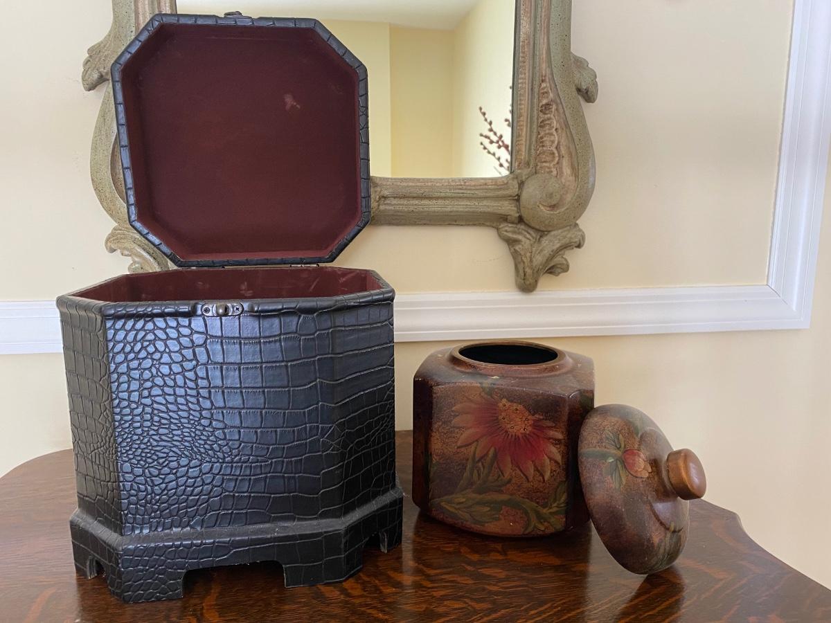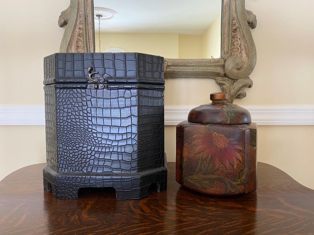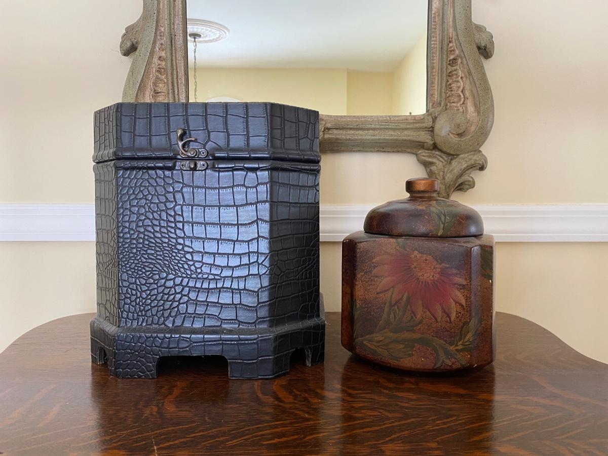 Lot 476G: Home Storage/Decor: Modern Storage Box & Floral Trinket Box