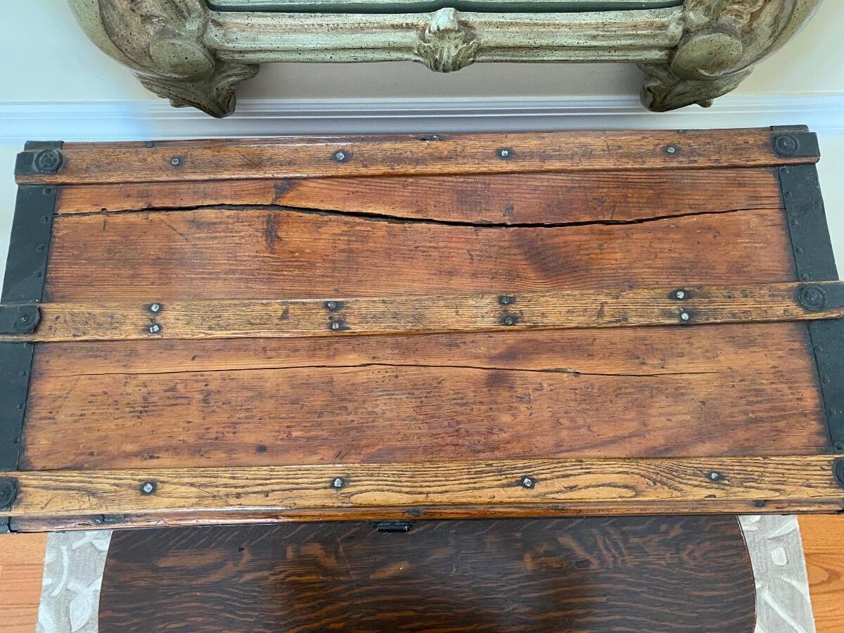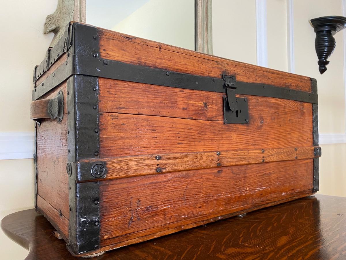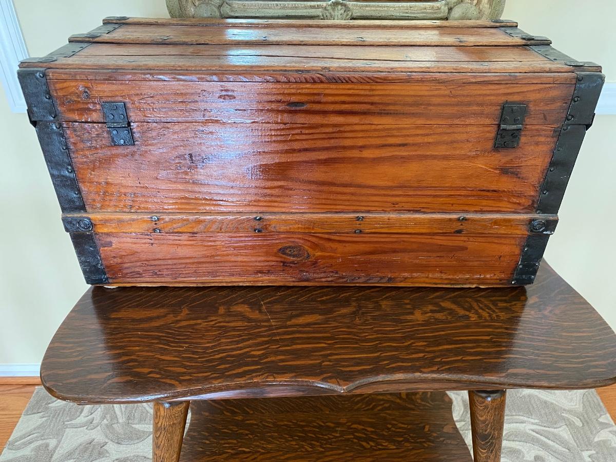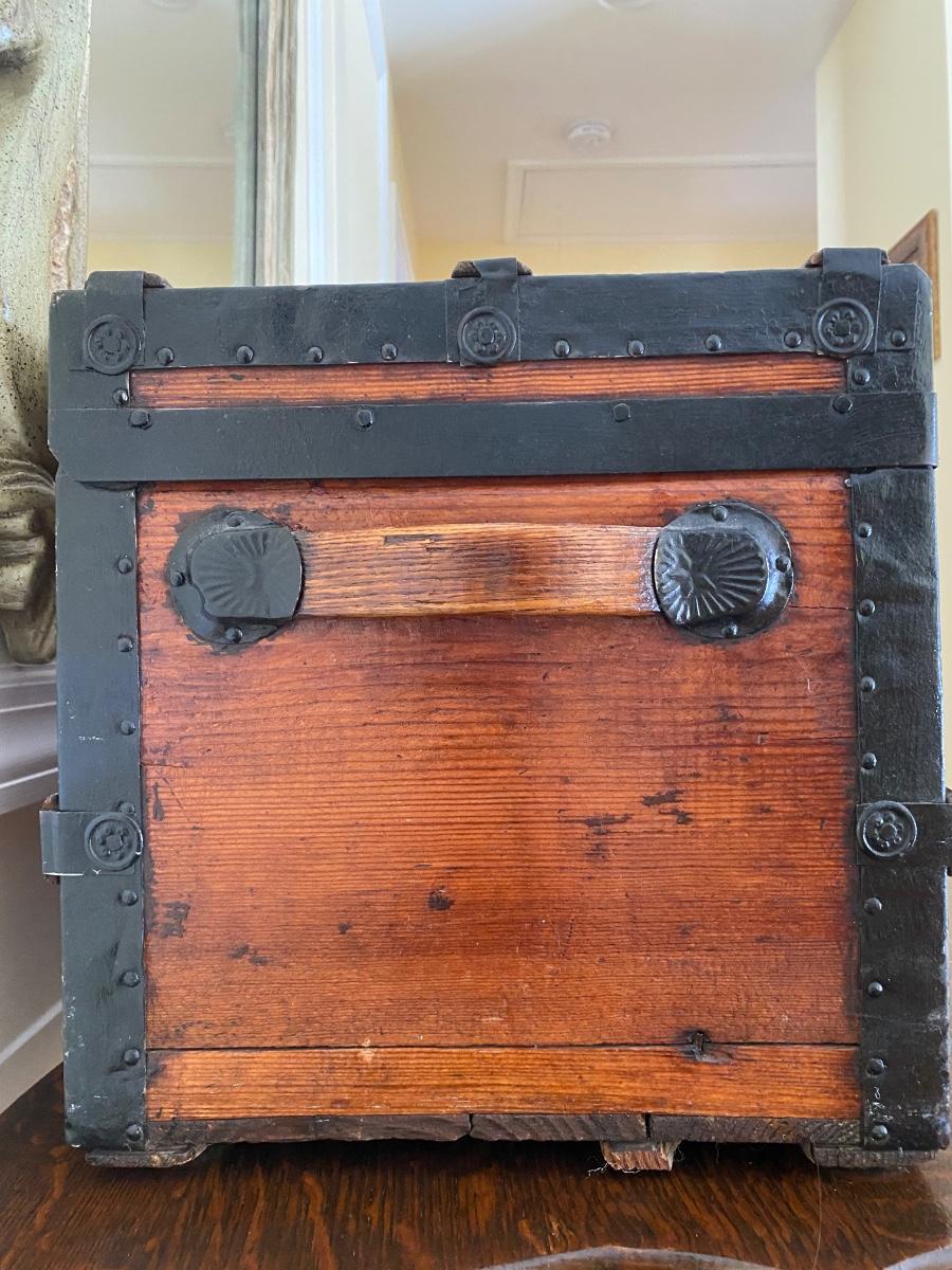 26x13x12 Antique trunk. Perfect size for smaller storage or stacking. Lock has been removed. This was used as an accent piece in a room. Please see all pictures as they are the best representation of the items. The pictures show condition, measurements if taken, and what is included in the lot. Due to the large amount that we photograph and the time frame, we are not always able to take measurements. All items unless noted, are pre-owned and have been used. If you purchased furniture, you must bring help. We do not allow one person to carry large furniture out on their own. Bring help, tools and a truck for the safety of our client’s homes, and your personal safety. Any damages that result to the property including walls, and floors due to moving of the furniture will be charged to the buyer. Company policy. Thank you.