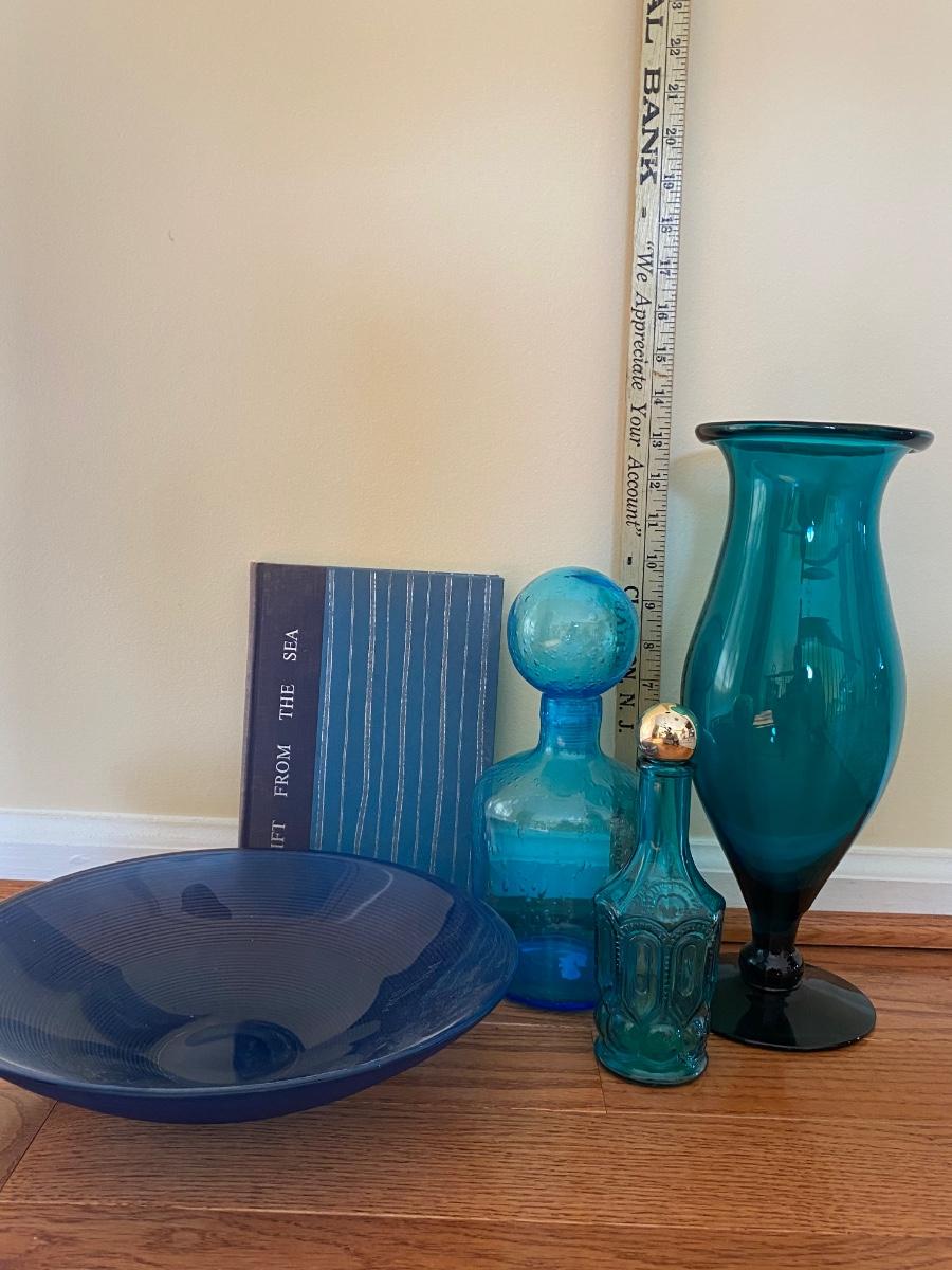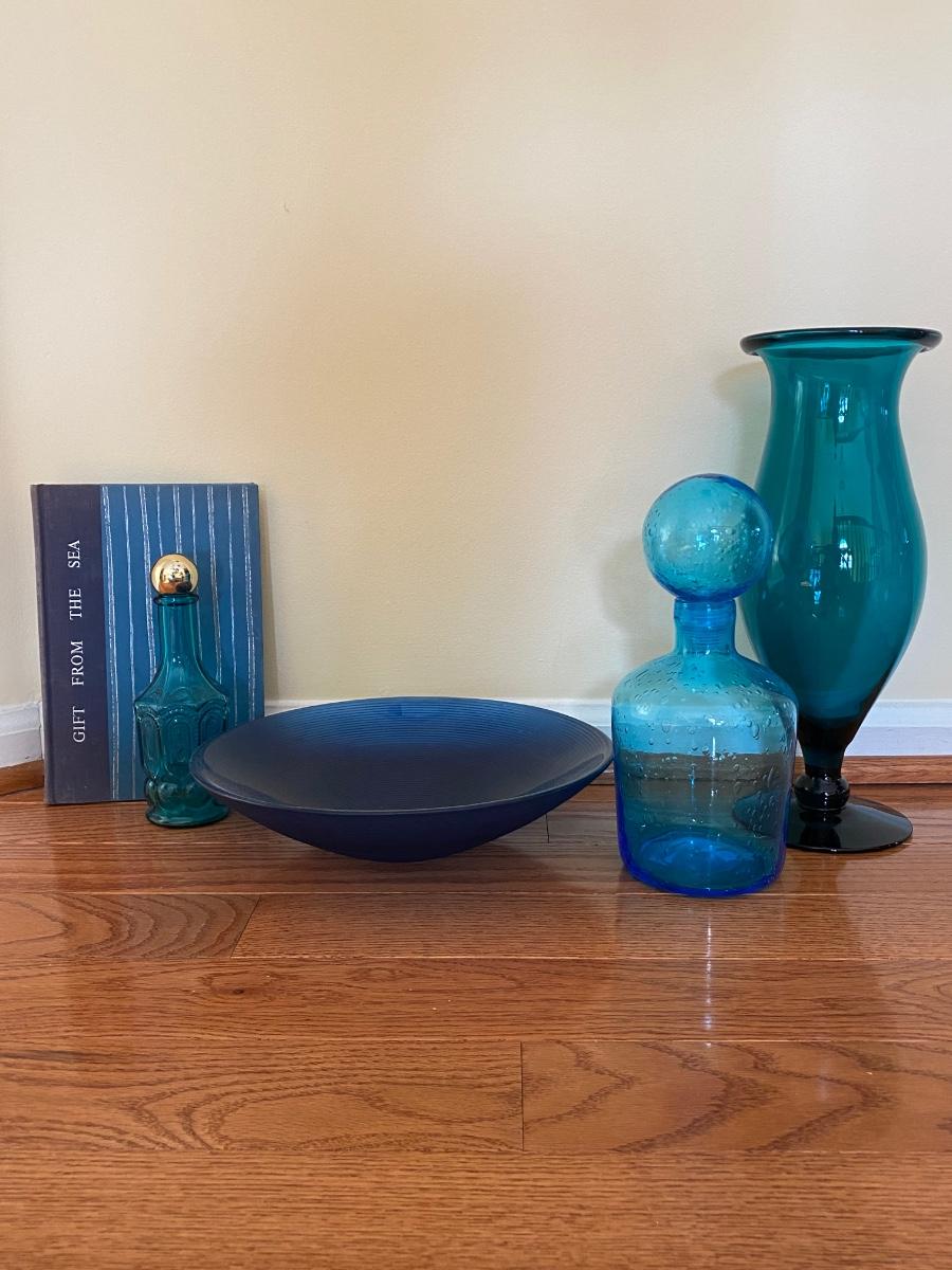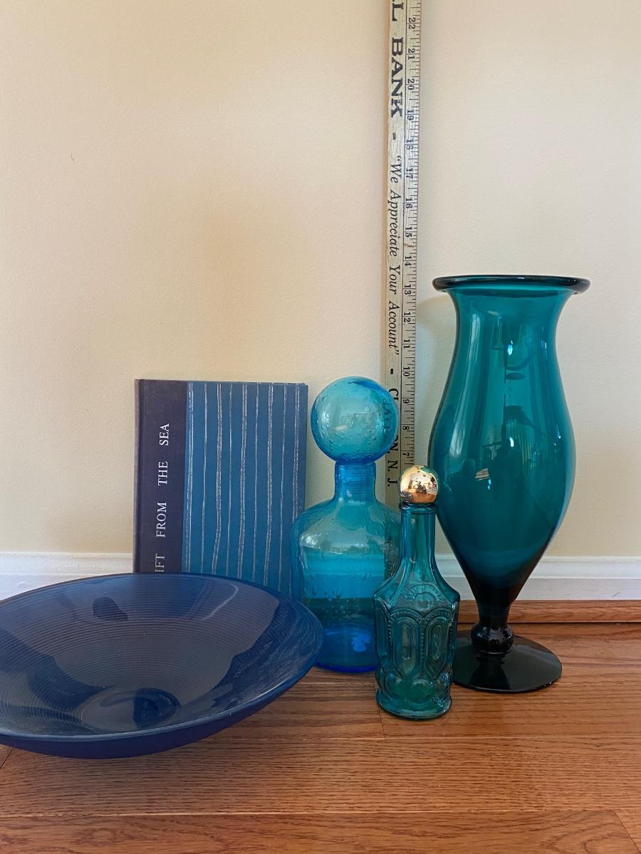 Mixed shades of blues. Glass vase, bottles, bowl and book. Please see all pictures as they are the best representation of the items. The pictures show condition, measurements if taken, and what is included in the lot. Due to the large amount that we photograph and the time frame, we are not always able to take measurements. All items unless noted, are pre-owned and have been used. If you purchased furniture, you must bring help. We do not allow one person to carry large furniture out on their own. Bring help, tools and a truck for the safety of our client’s homes, and your personal safety. Any damages that result to the property including walls, and floors due to moving of the furniture will be charged to the buyer. Company policy. Thank you.