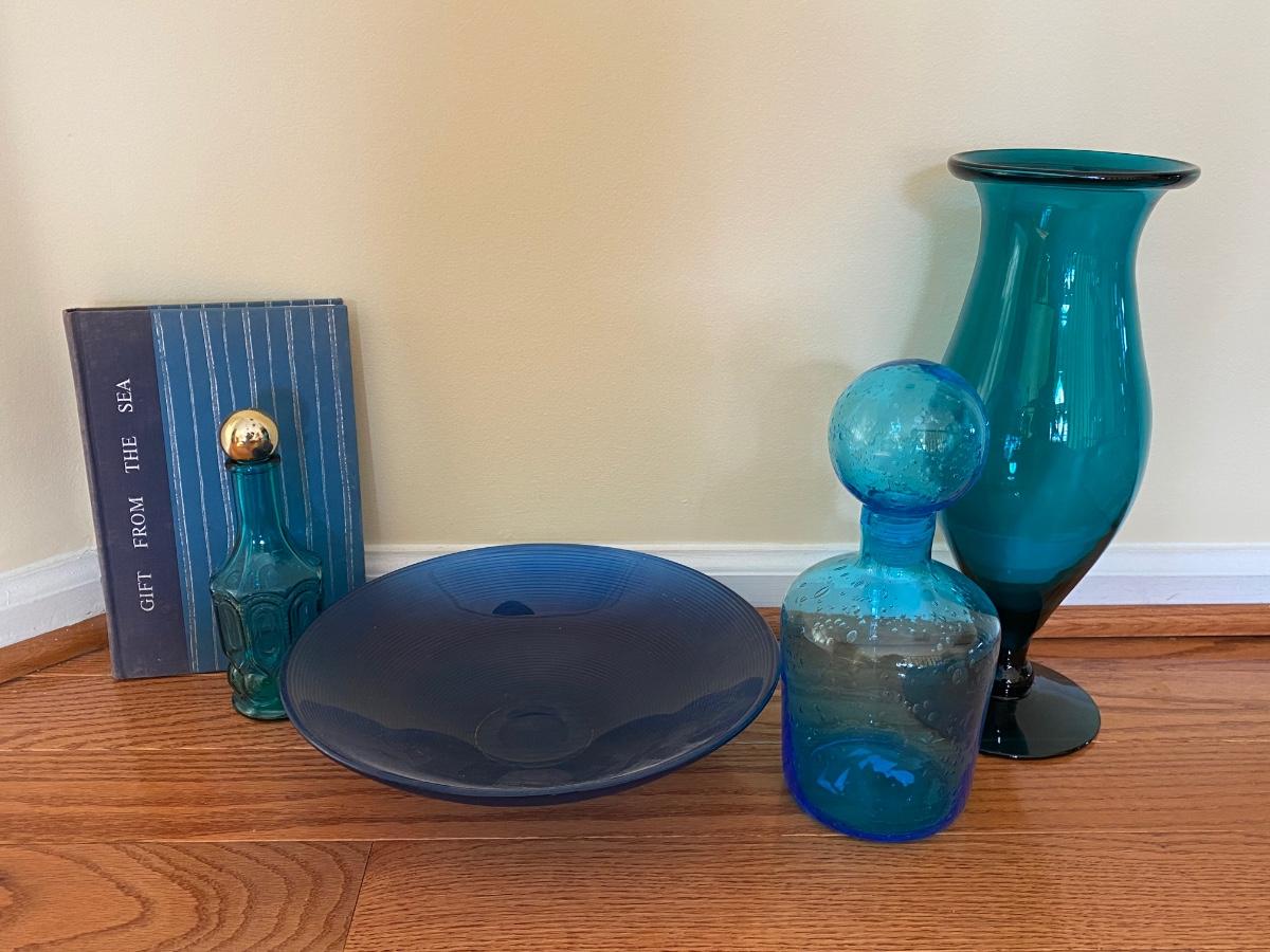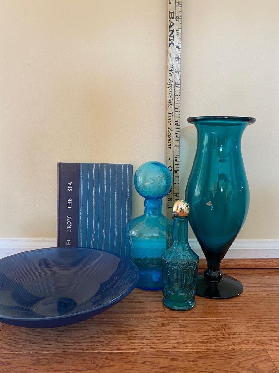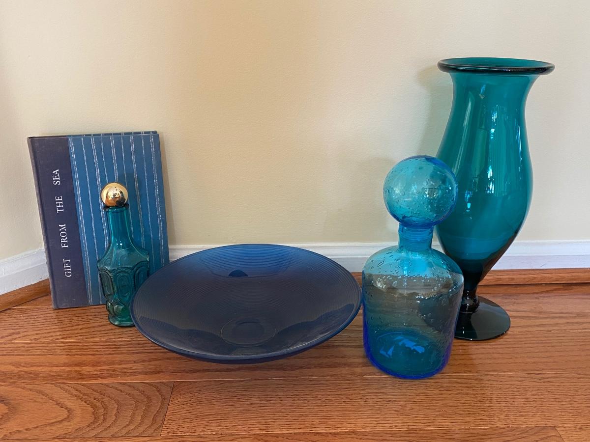 Mixed shades of blues. Glass vase, bottles, bowl and book. Please see all pictures as they are the best representation of the items. The pictures show condition, measurements if taken, and what is included in the lot. Due to the large amount that we photograph and the time frame, we are not always able to take measurements. All items unless noted, are pre-owned and have been used. If you purchased furniture, you must bring help. We do not allow one person to carry large furniture out on their own. Bring help, tools and a truck for the safety of our client’s homes, and your personal safety. Any damages that result to the property including walls, and floors due to moving of the furniture will be charged to the buyer. Company policy. Thank you.