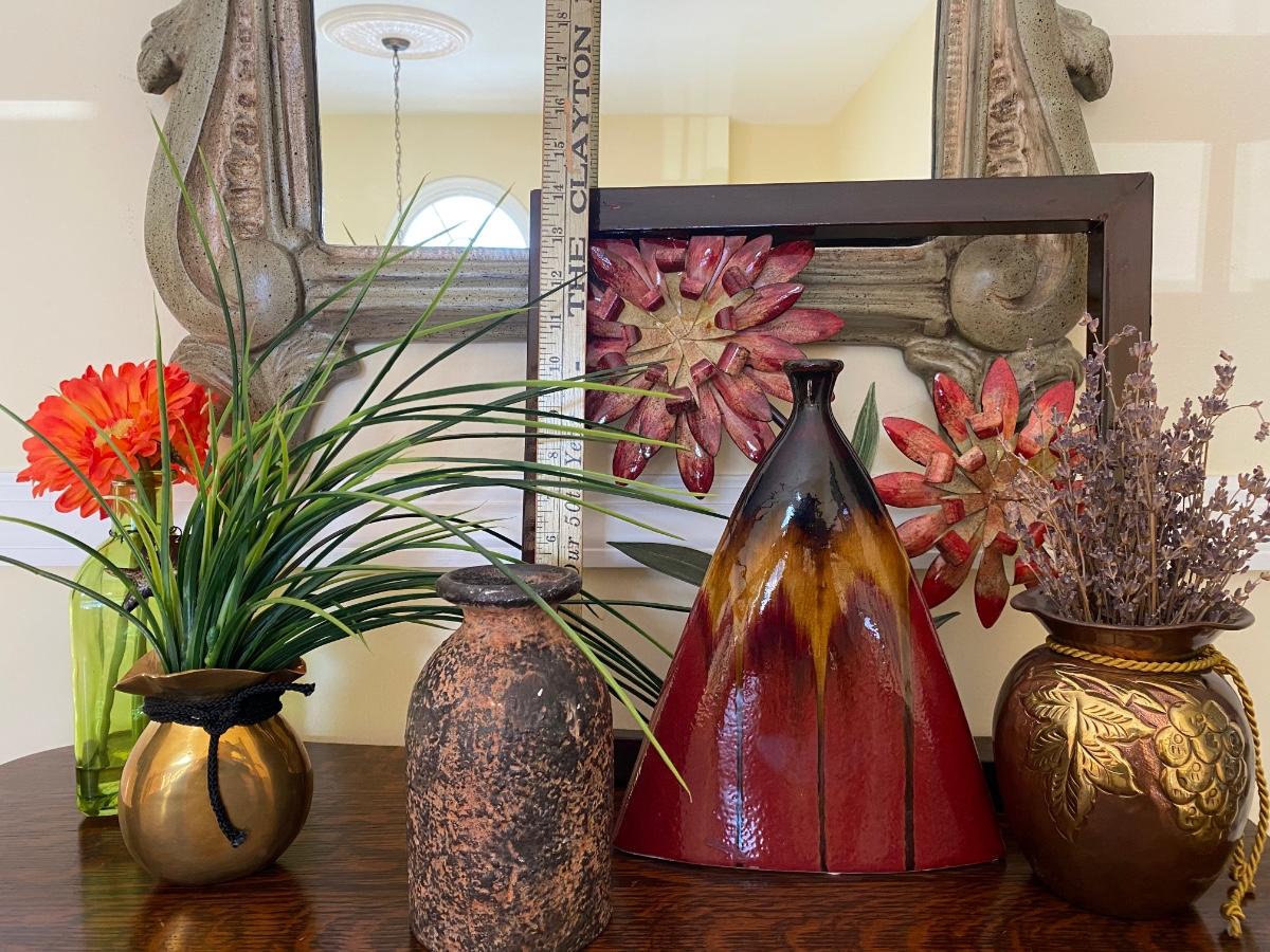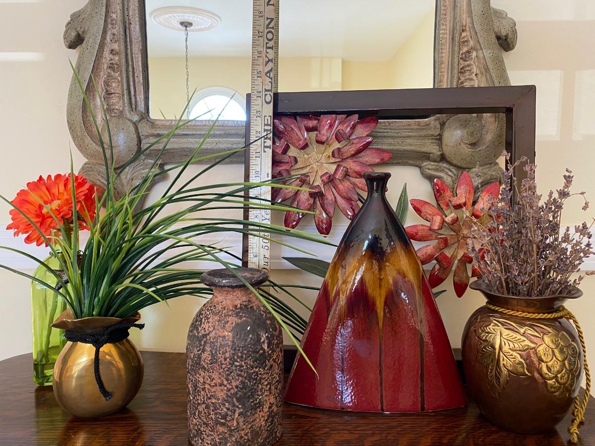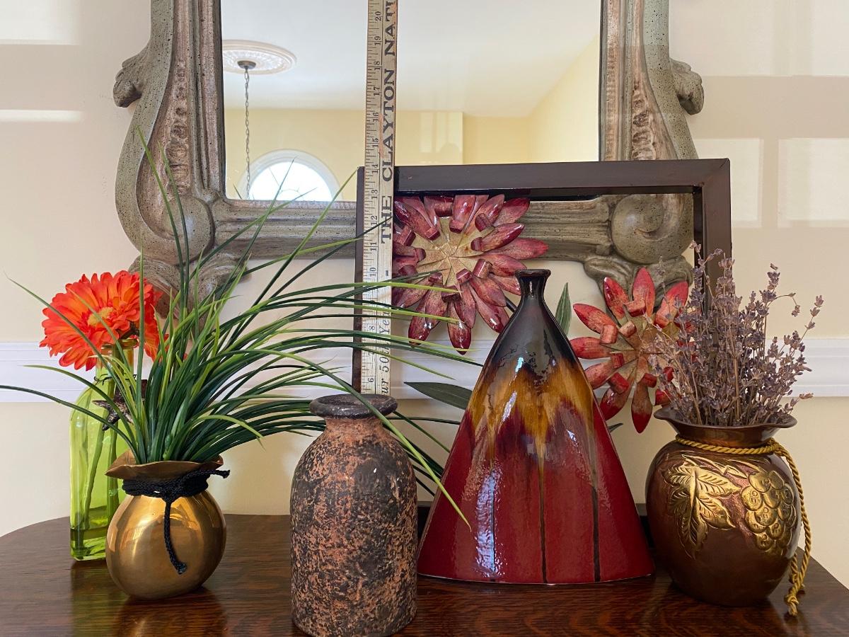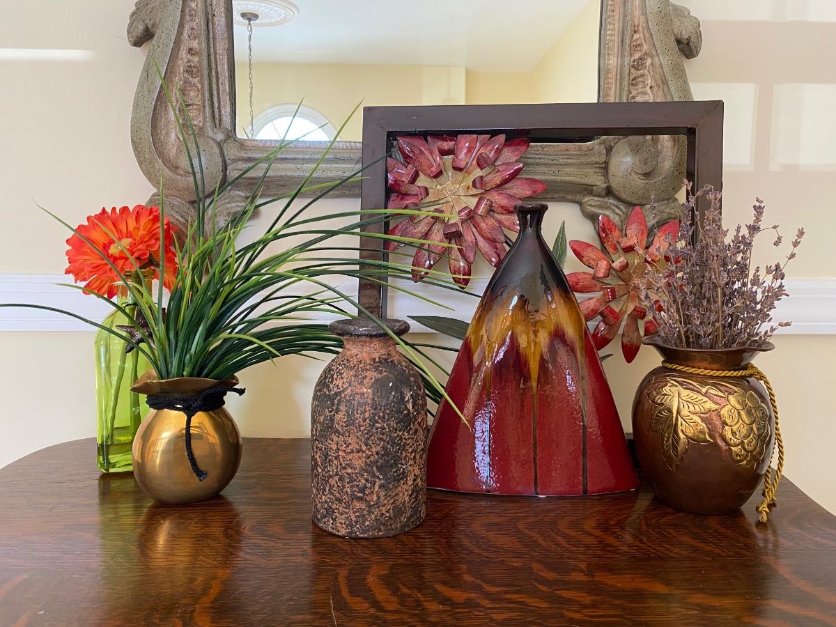 Floral home accents. Framed metal art, pottery and vases with artificial flowers. Please see all pictures as they are the best representation of the items. The pictures show condition, measurements if taken, and what is included in the lot. Due to the large amount that we photograph and the time frame, we are not always able to take measurements. All items unless noted, are pre-owned and have been used. If you purchased furniture, you must bring help. We do not allow one person to carry large furniture out on their own. Bring help, tools and a truck for the safety of our client’s homes, and your personal safety. Any damages that result to the property including walls, and floors due to moving of the furniture will be charged to the buyer. Company policy. Thank you.