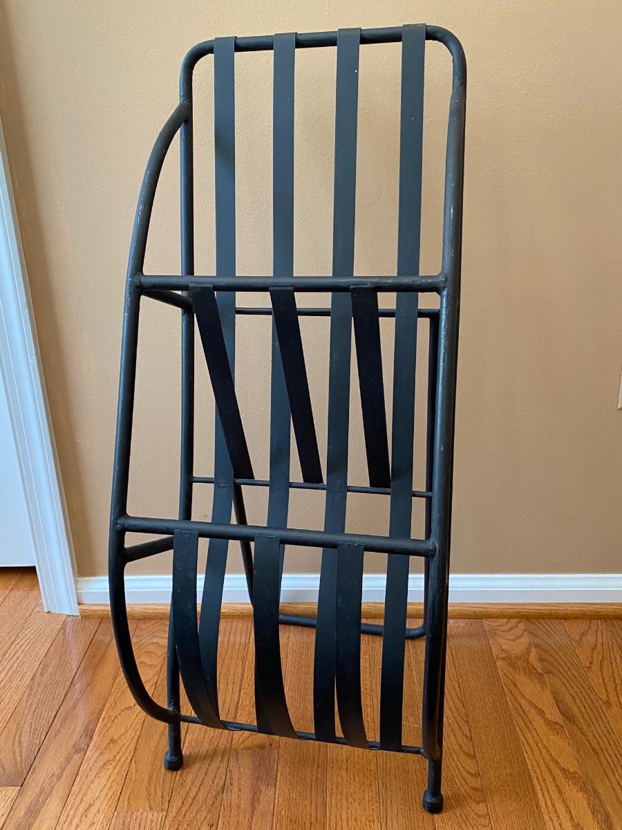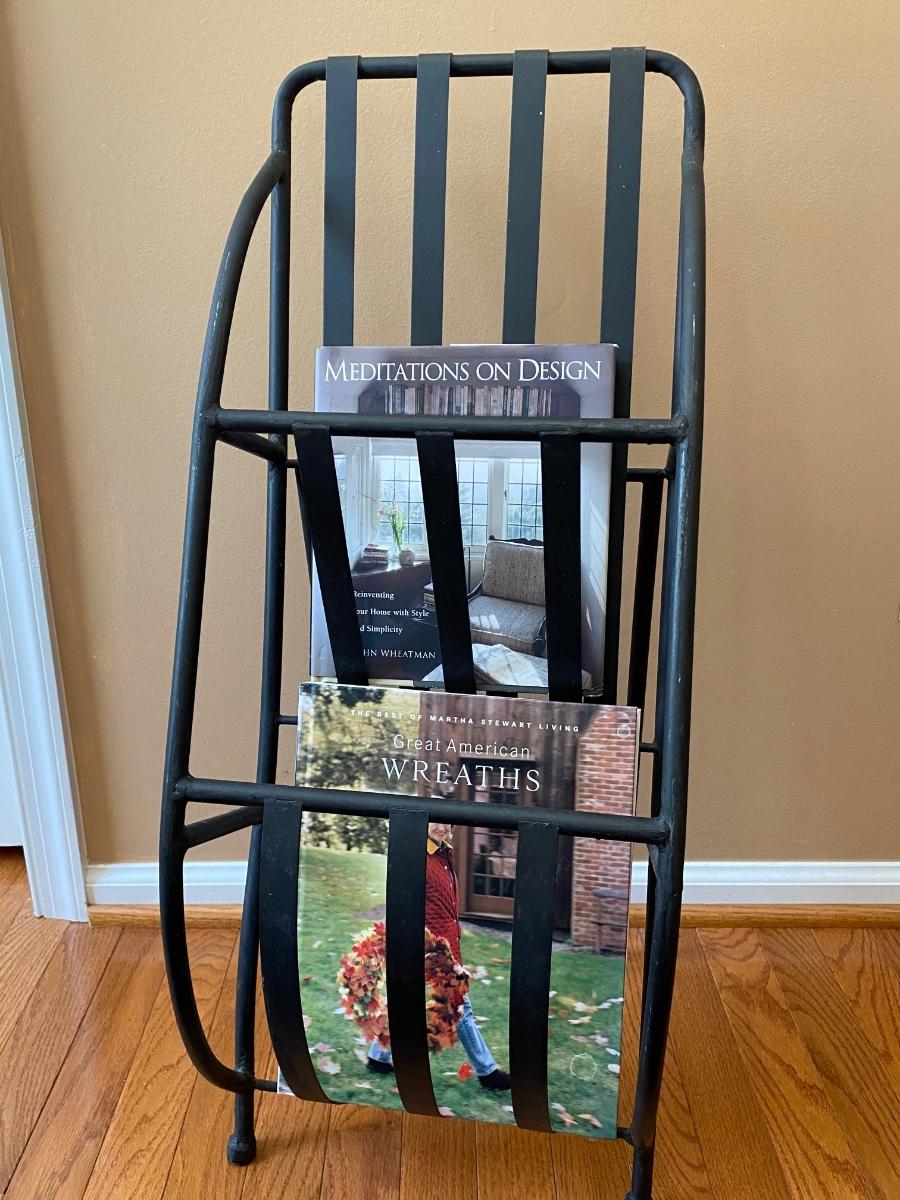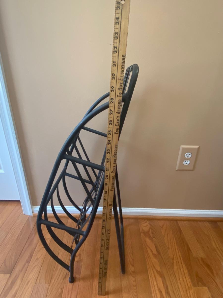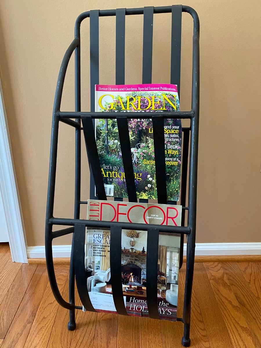 Unique piece perfect for any room. Metal rack holds magazines or books. Does not come with magazines Please see all pictures as they are the best representation of the items. The pictures show condition, measurements if taken, and what is included in the lot. Due to the large amount that we photograph and the time frame, we are not always able to take measurements. All items unless noted, are pre-owned and have been used. If you purchased furniture, you must bring help. We do not allow one person to carry large furniture out on their own. Bring help, tools and a truck for the safety of our client’s homes, and your personal safety. Any damages that result to the property including walls, and floors due to moving of the furniture will be charged to the buyer. Company policy. Thank you.