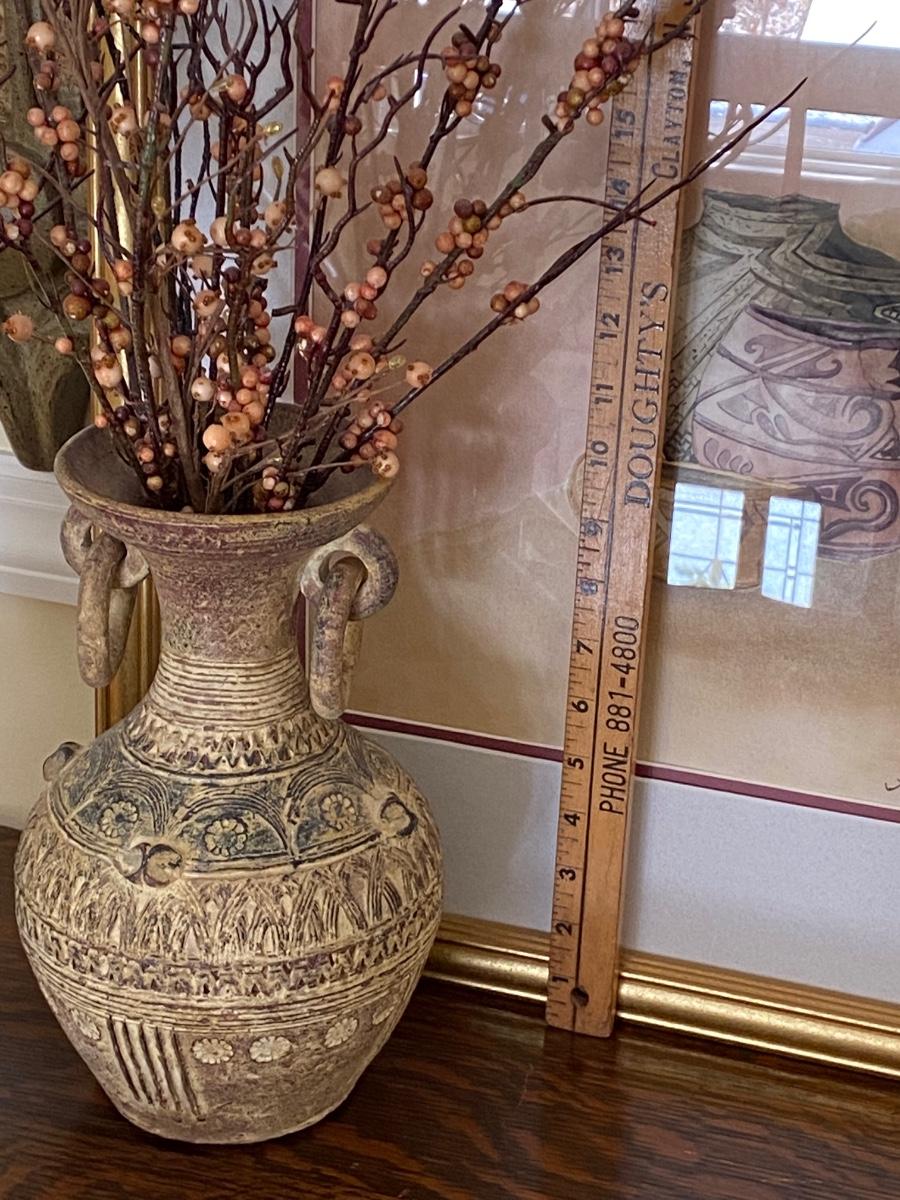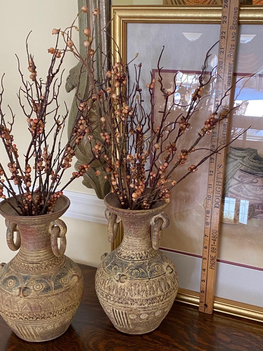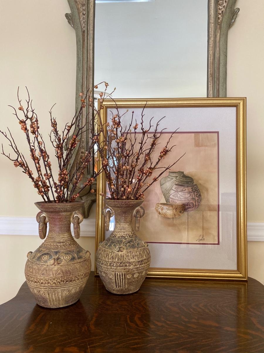 Modern decor pottery vases and framed pottery print. Please see all pictures as they are the best representation of the items. The pictures show condition, measurements if taken, and what is included in the lot. Due to the large amount that we photograph and the time frame, we are not always able to take measurements. All items unless noted, are pre-owned and have been used. If you purchased furniture, you must bring help. We do not allow one person to carry large furniture out on their own. Bring help, tools and a truck for the safety of our client’s homes, and your personal safety. Any damages that result to the property including walls, and floors due to moving of the furniture will be charged to the buyer. Company policy. Thank you.