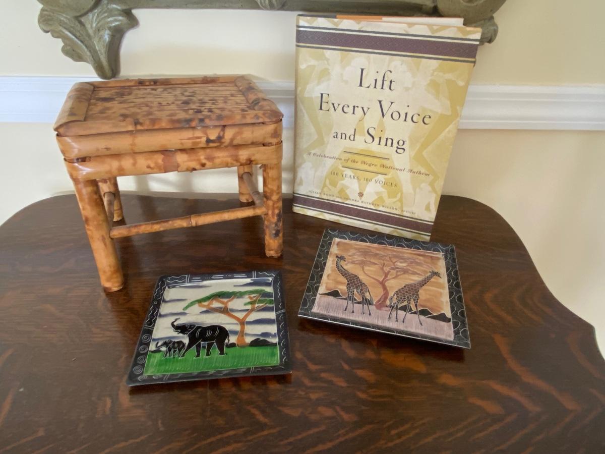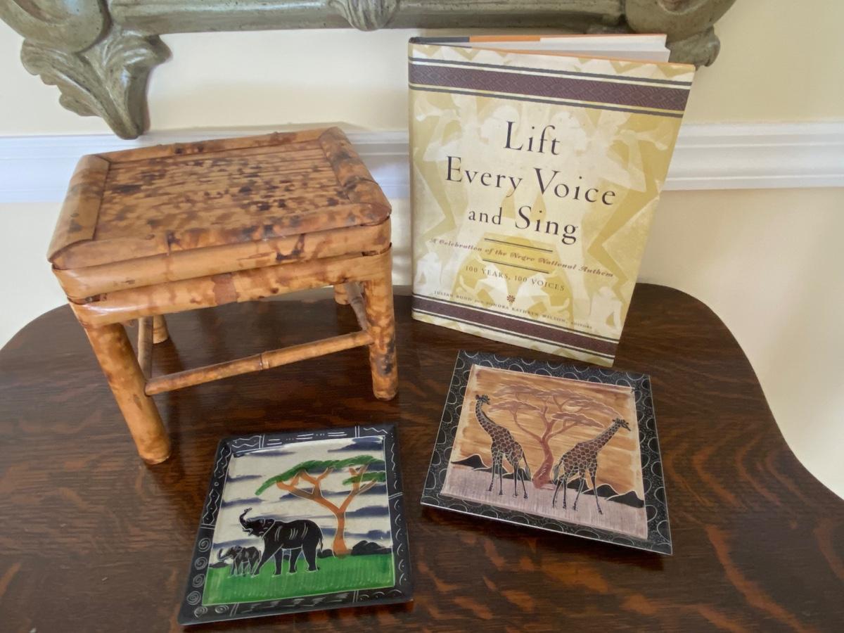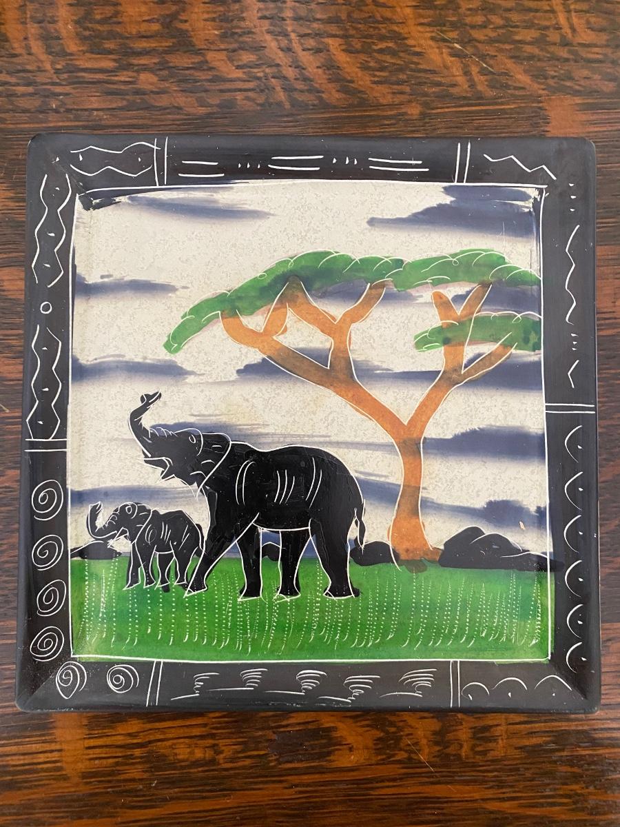 Lot 237G: Large Wall Art, Plant Stand, Trinket Plates Made in Kenya and More