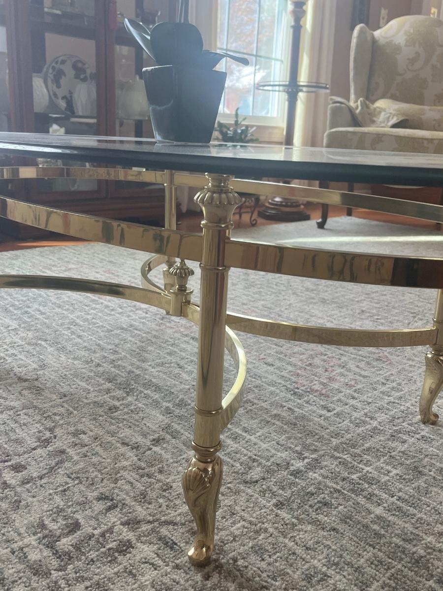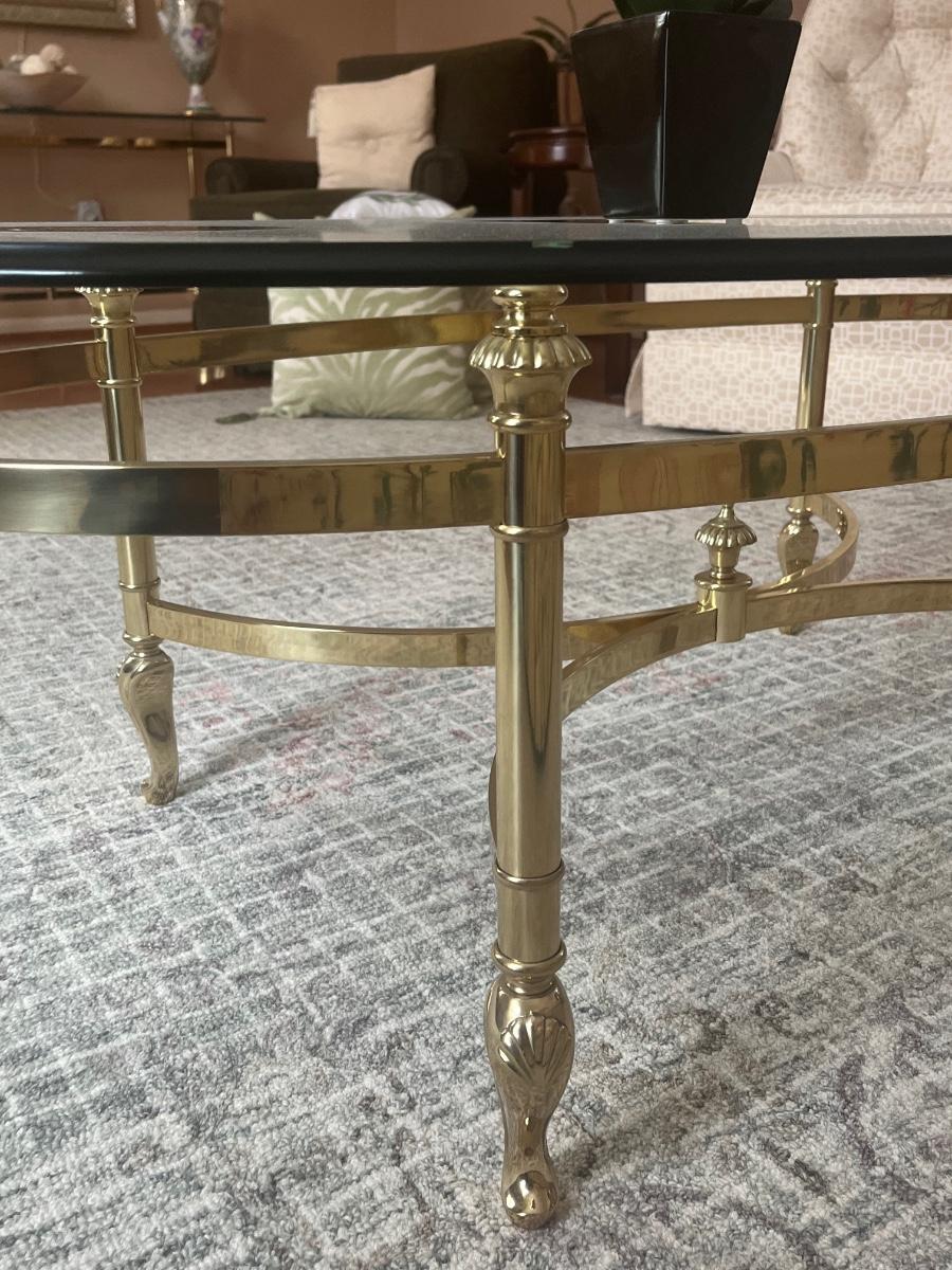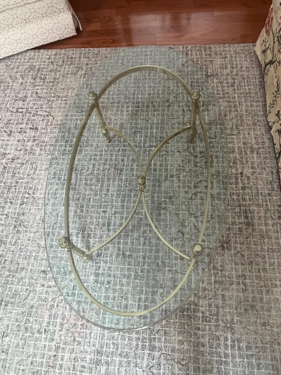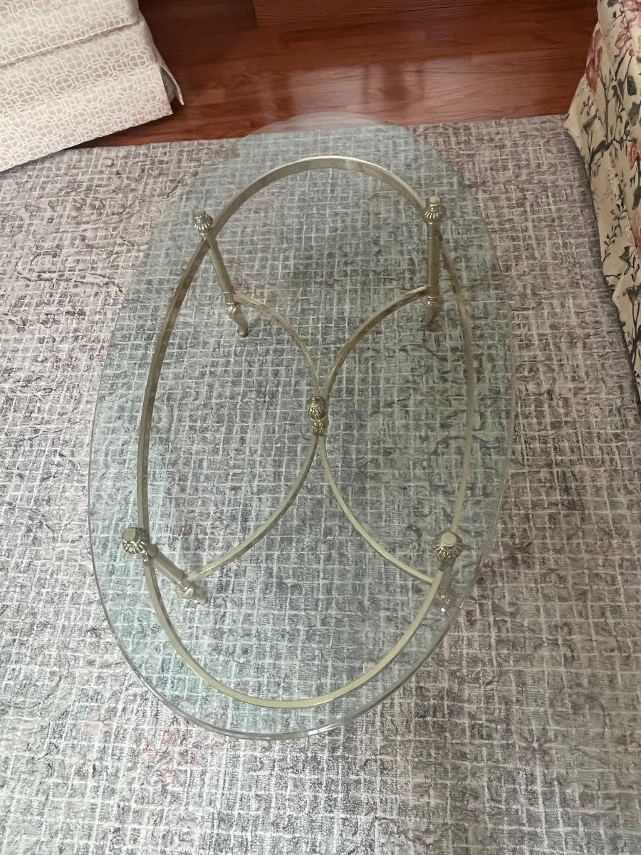 Lot 157: Beautiful Glass and Gold Oval Coffee Table