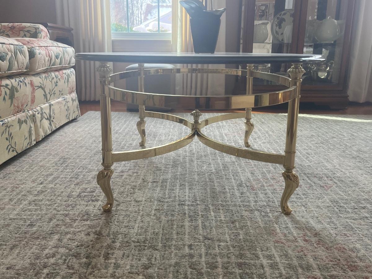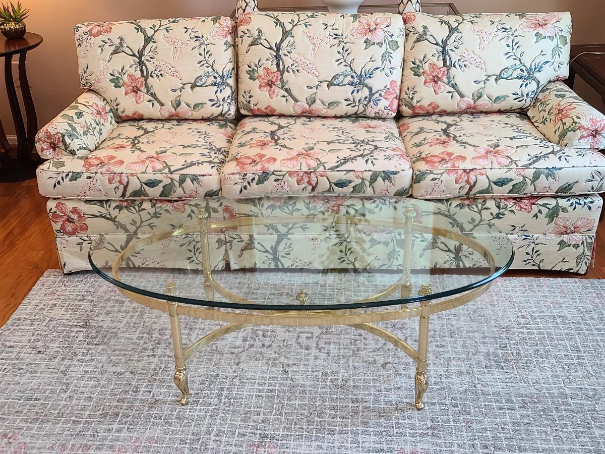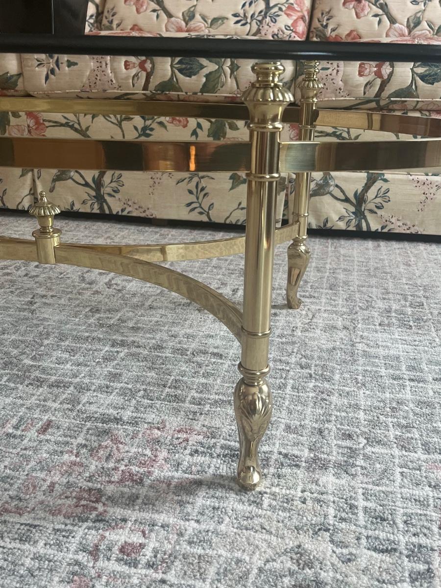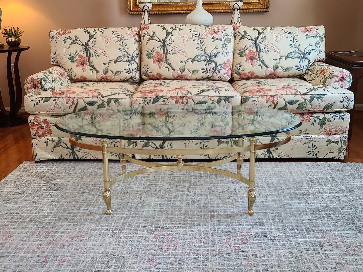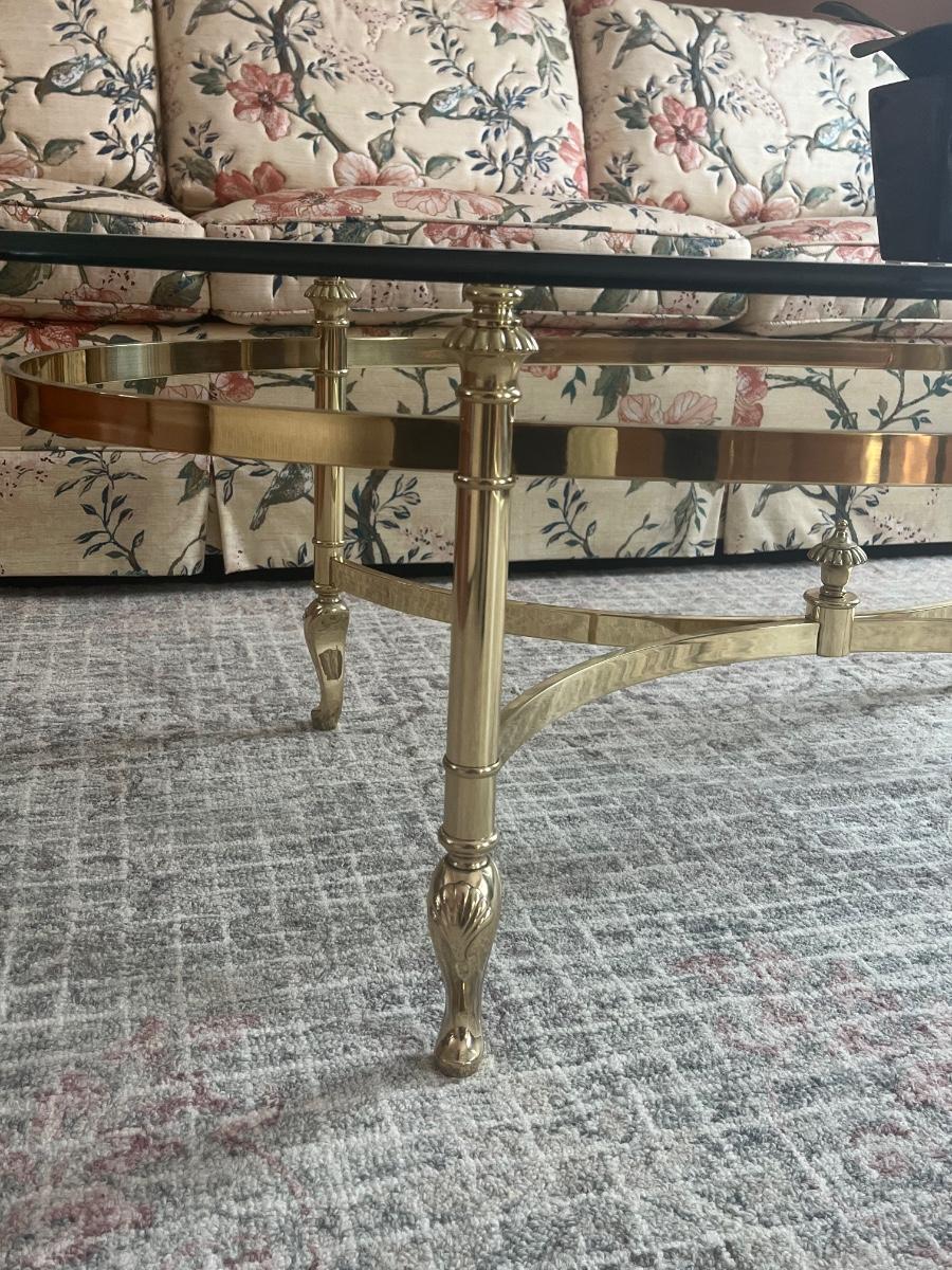 Lot 157: Beautiful Glass and Gold Oval Coffee Table