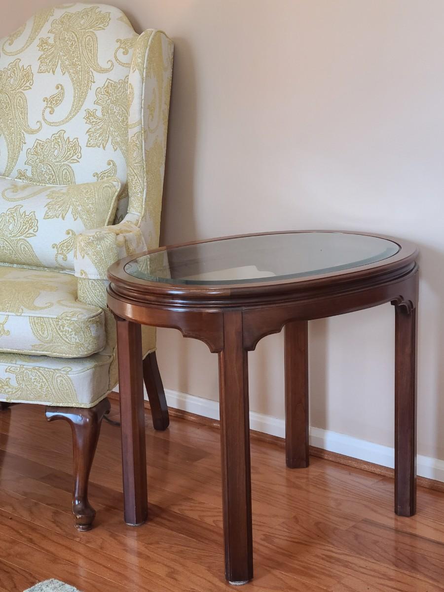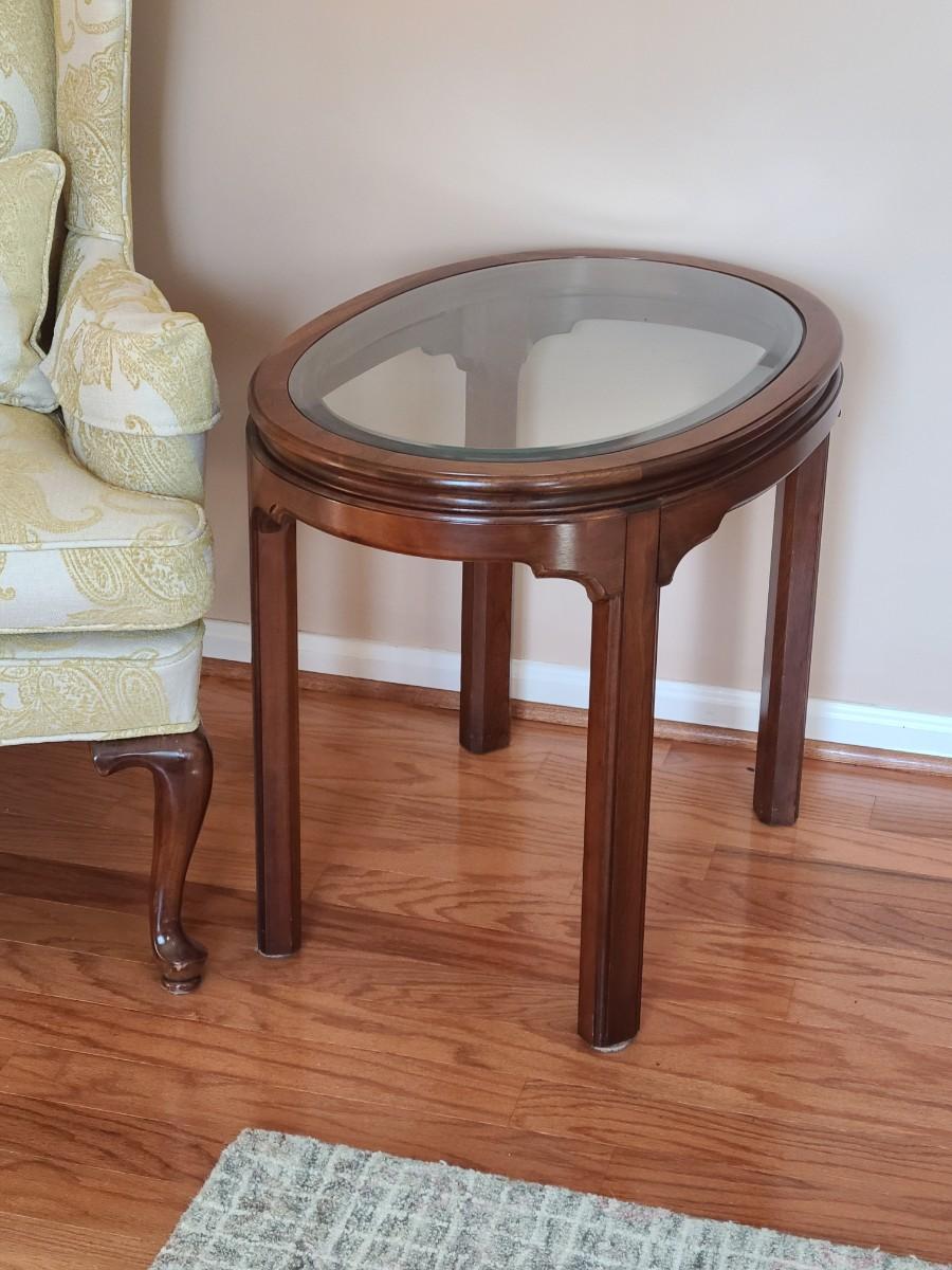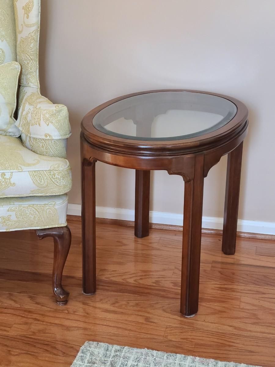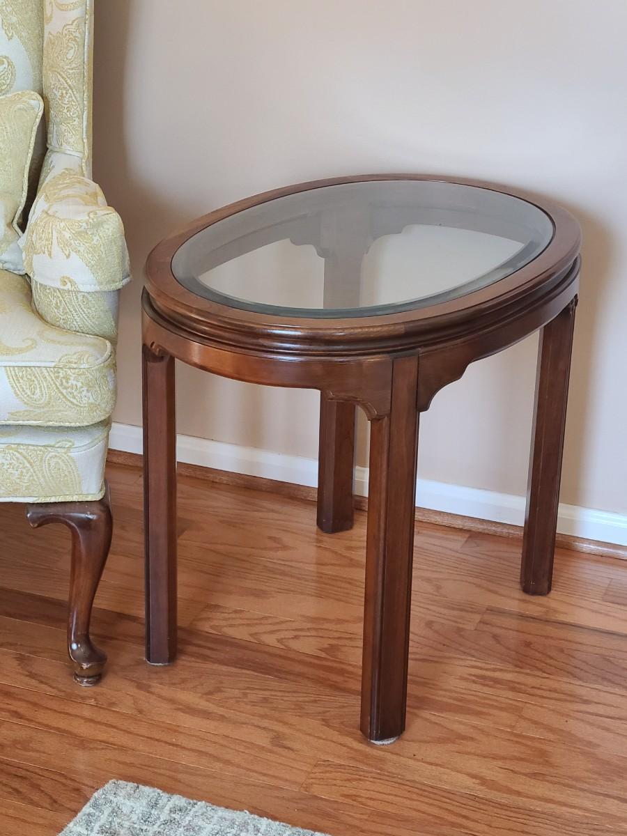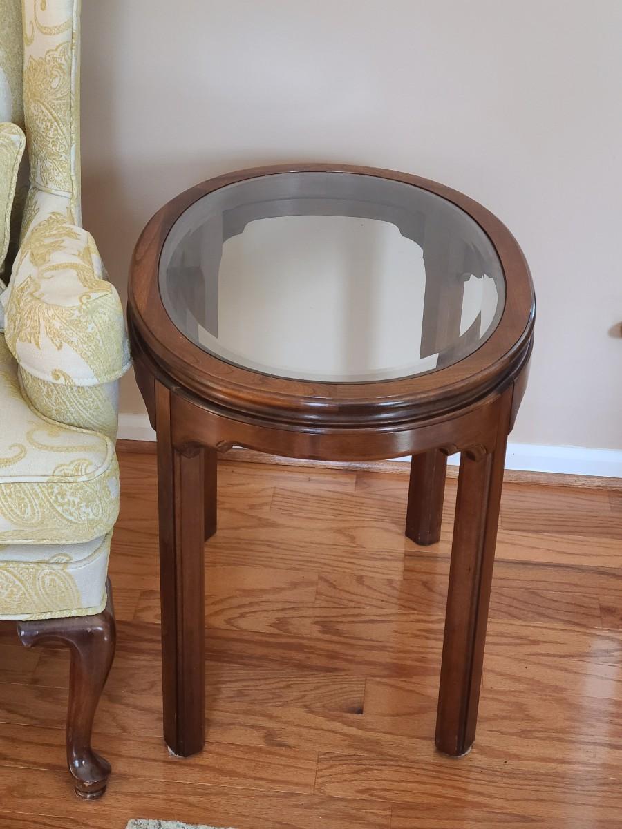 20x28x24 inches tall. Table only, Lamp not included. Please see all pictures as they are the best representation of the items. The pictures show condition, measurements if taken, and what is included in the lot. Due to the large amount that we photograph and the time frame, we are not always able to take measurements. All items unless noted, are pre-owned and have been used. If you purchased furniture, you must bring help. We do not allow one person to carry large furniture out on their own. Bring help, tools and a truck for the safety of our client’s homes, and your personal safety. Any damages that result to the property including walls, and floors due to moving of the furniture will be charged to the buyer. Company policy. Thank you.