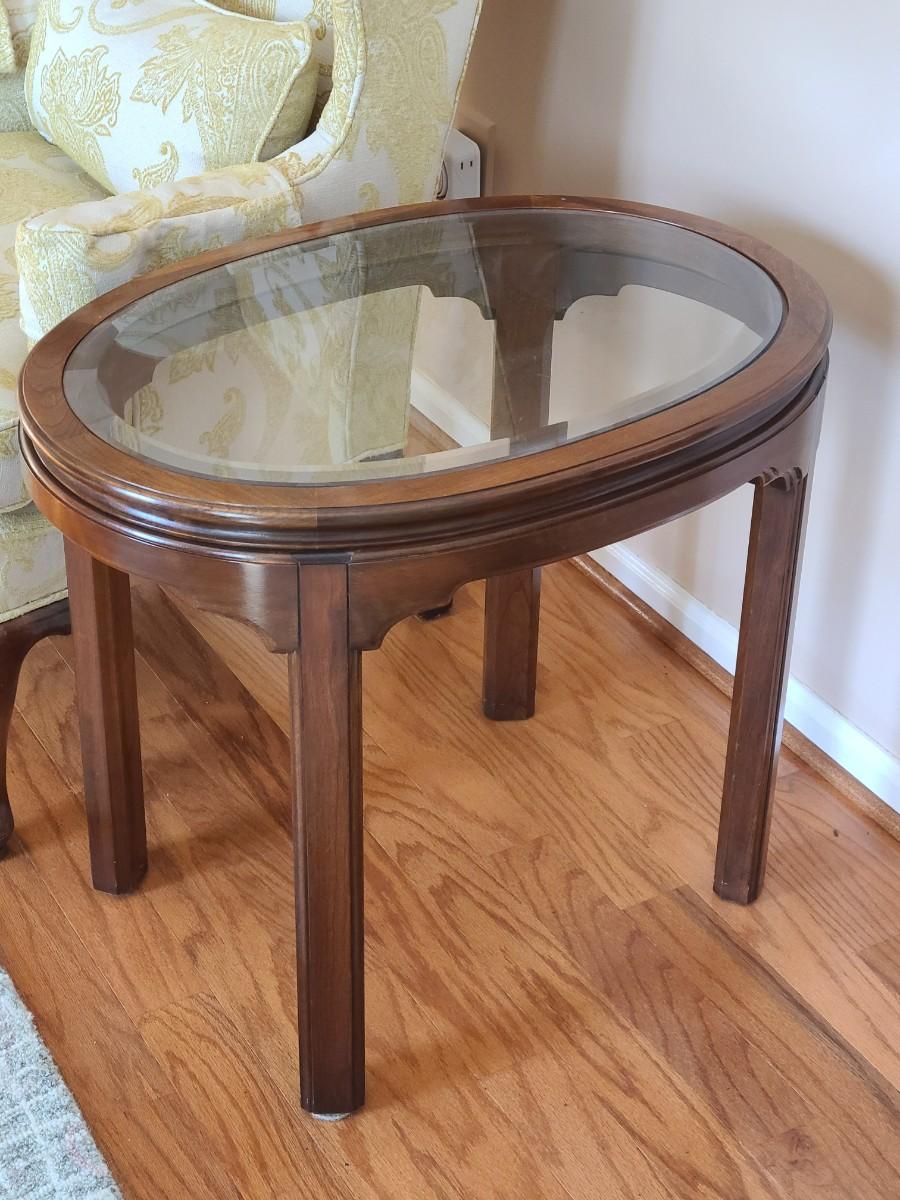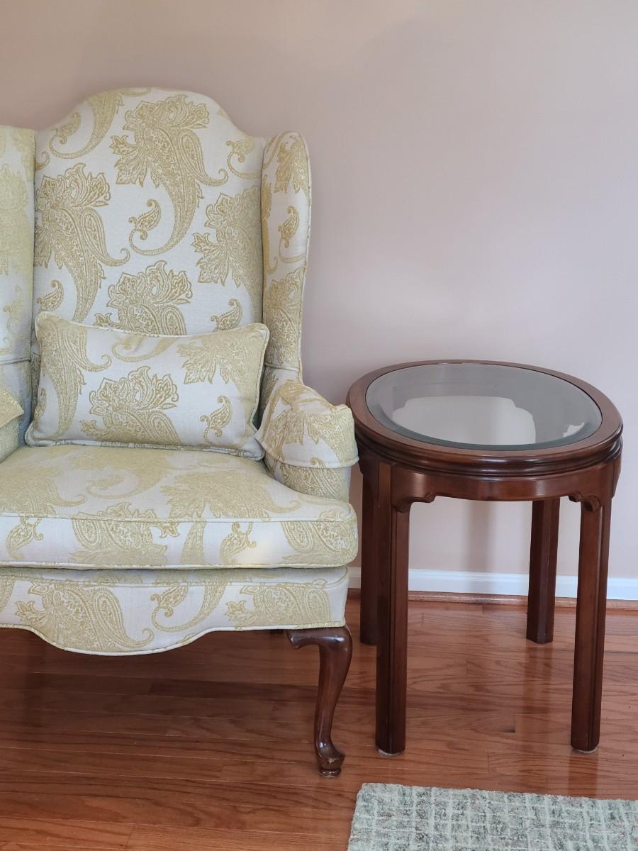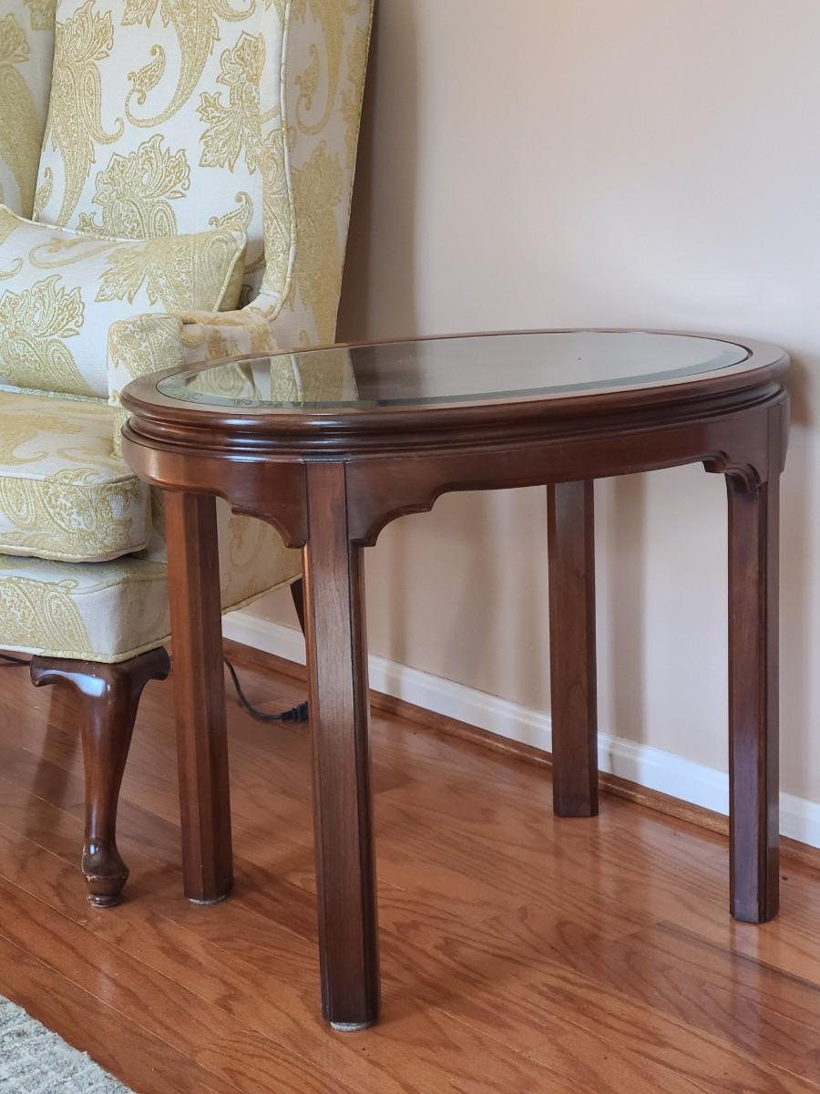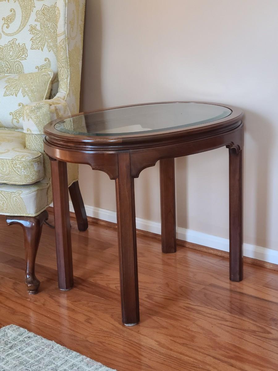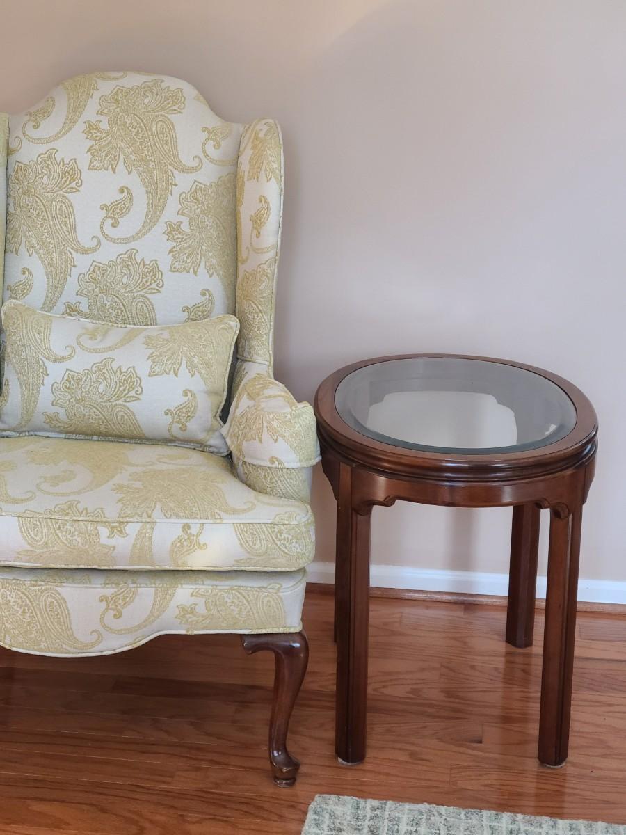 20x28x24 inches tall. Table only, Lamp not included. Please see all pictures as they are the best representation of the items. The pictures show condition, measurements if taken, and what is included in the lot. Due to the large amount that we photograph and the time frame, we are not always able to take measurements. All items unless noted, are pre-owned and have been used. If you purchased furniture, you must bring help. We do not allow one person to carry large furniture out on their own. Bring help, tools and a truck for the safety of our client’s homes, and your personal safety. Any damages that result to the property including walls, and floors due to moving of the furniture will be charged to the buyer. Company policy. Thank you.