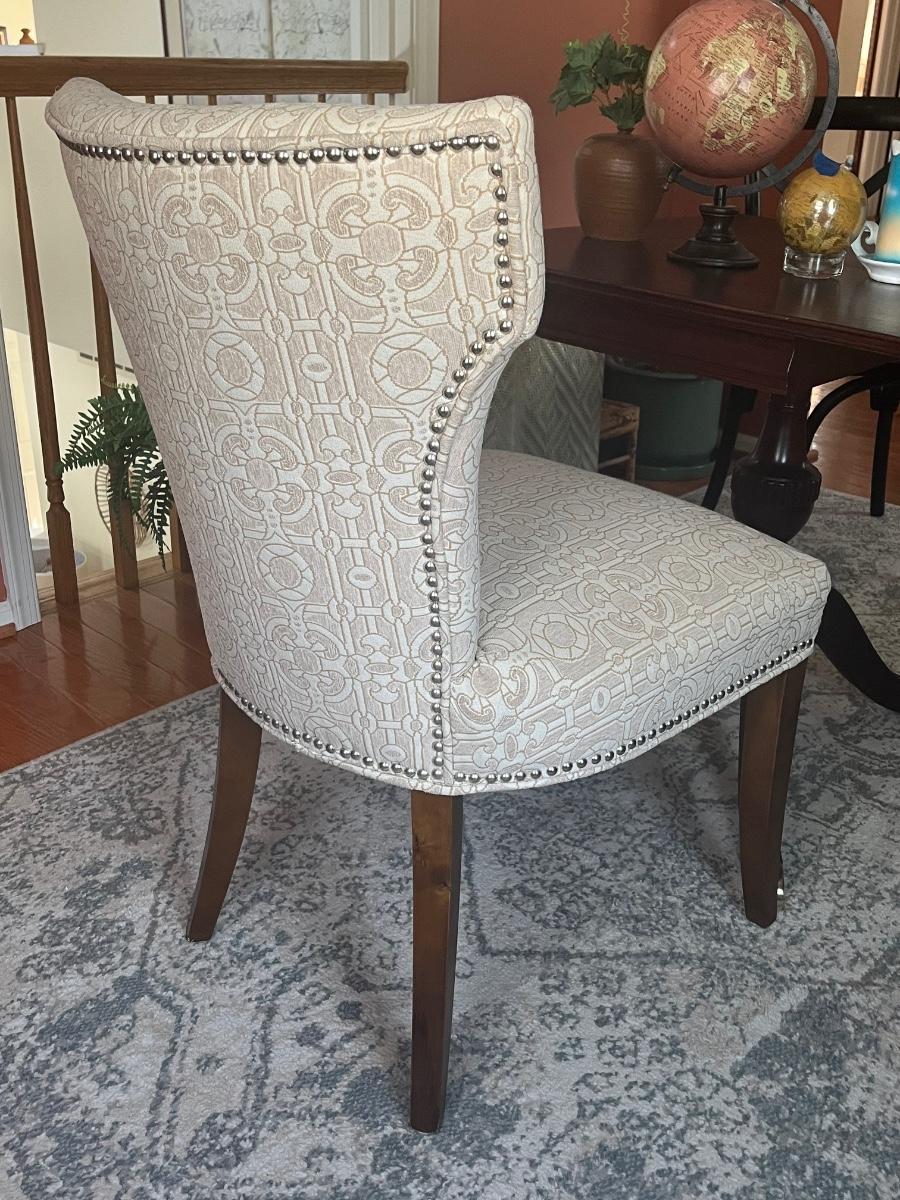 Lot 477: Modern Beige with Brushed Nickel Nailhead Trim Accent Chair