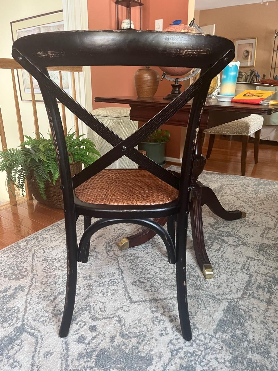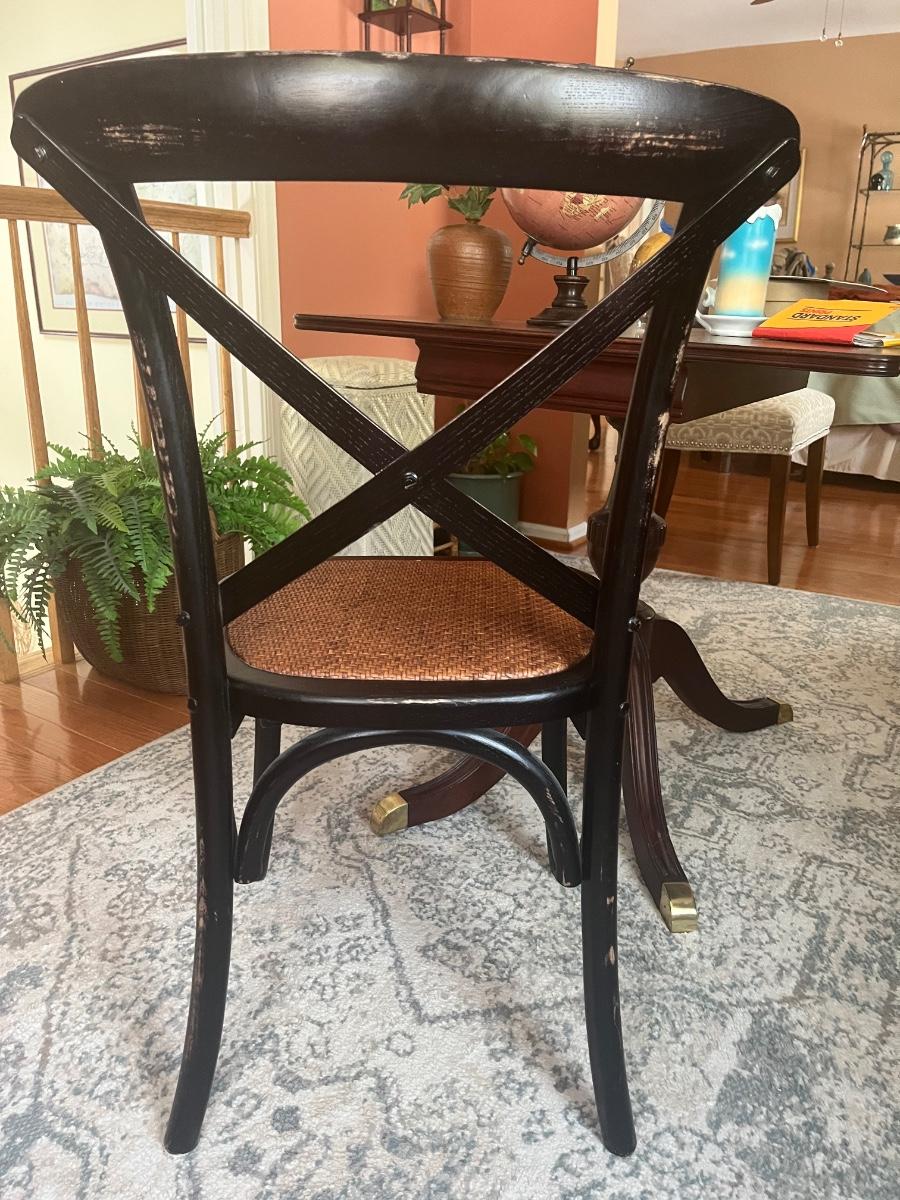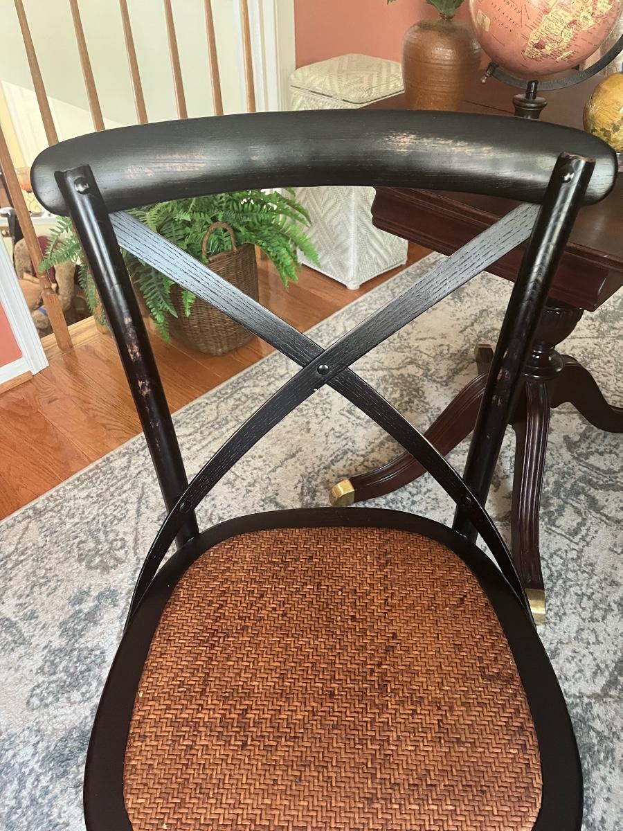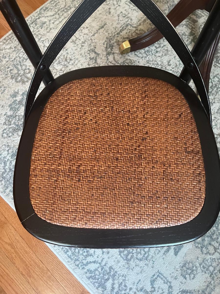 Lot 478: Modern Distressed Black and Rattan Accent  Chair