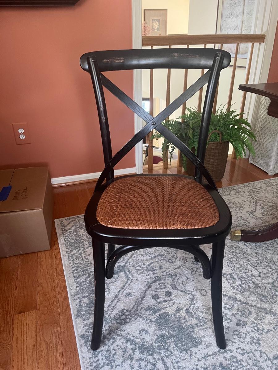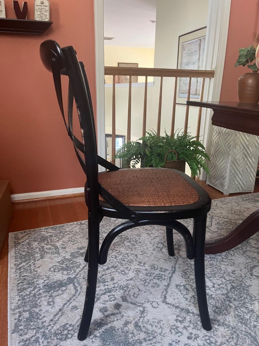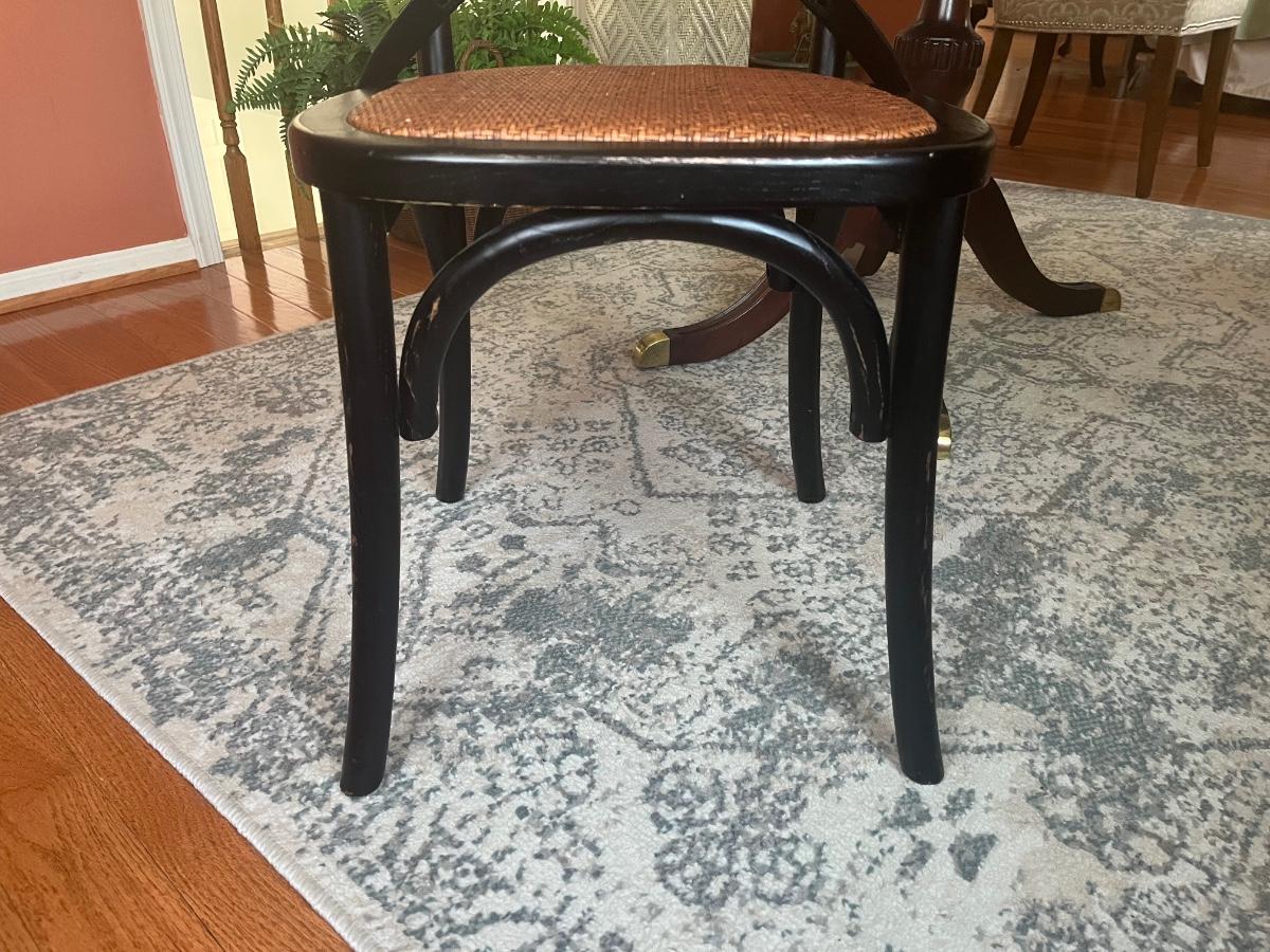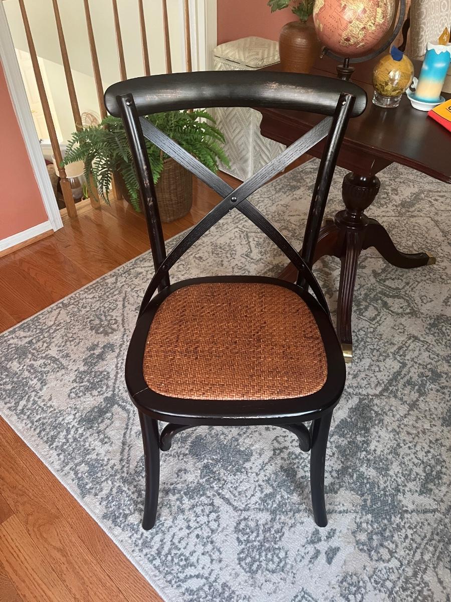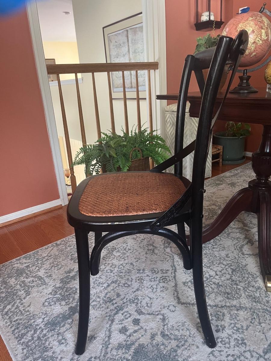 Lot 478: Modern Distressed Black and Rattan Accent  Chair