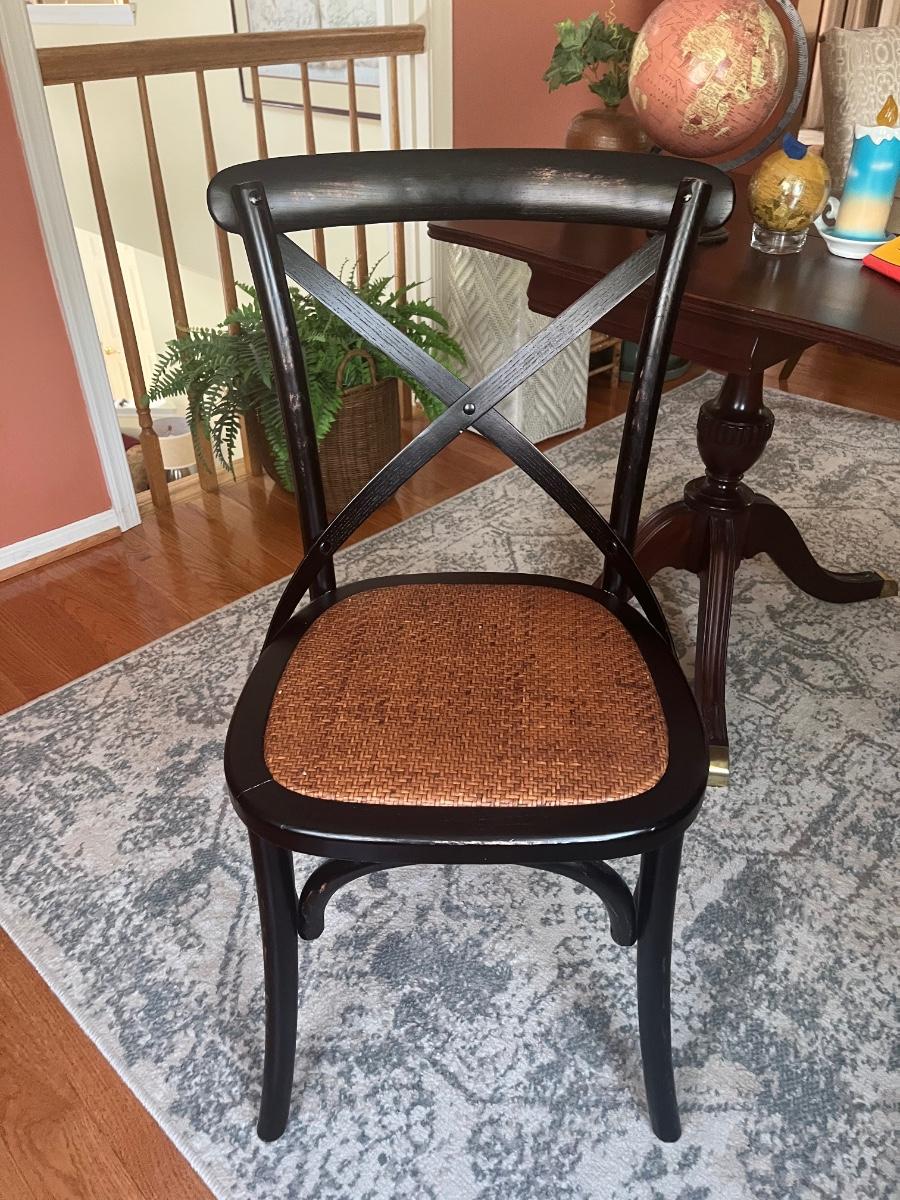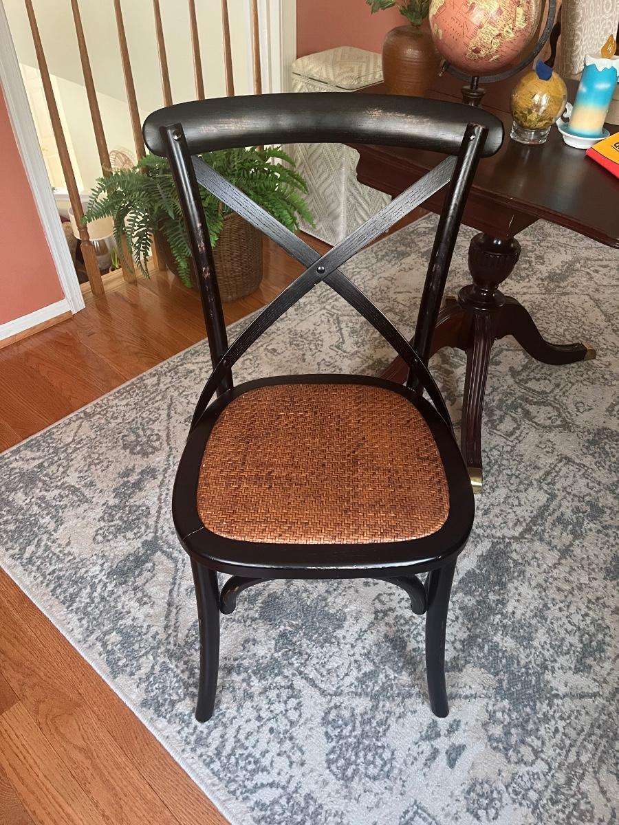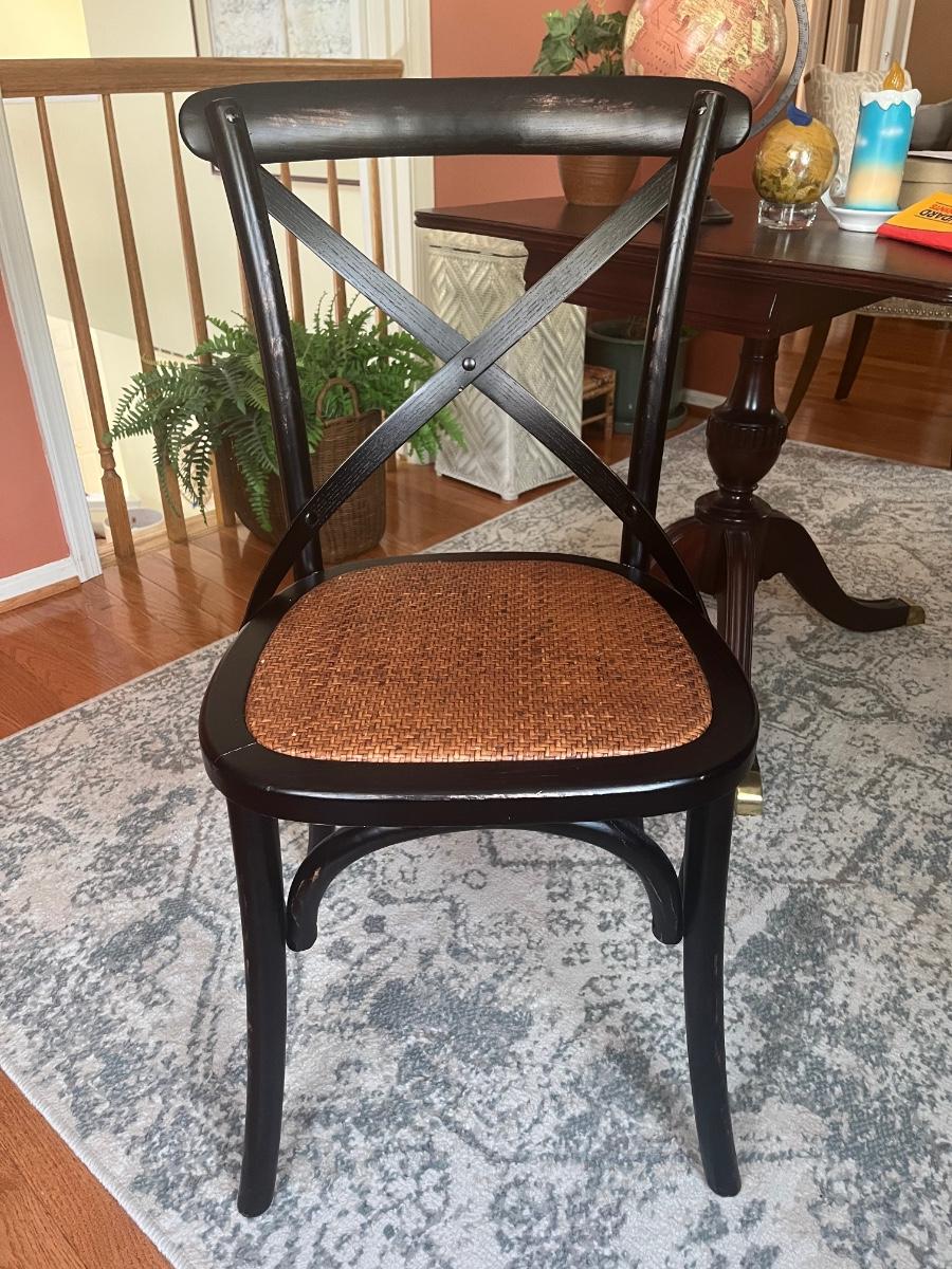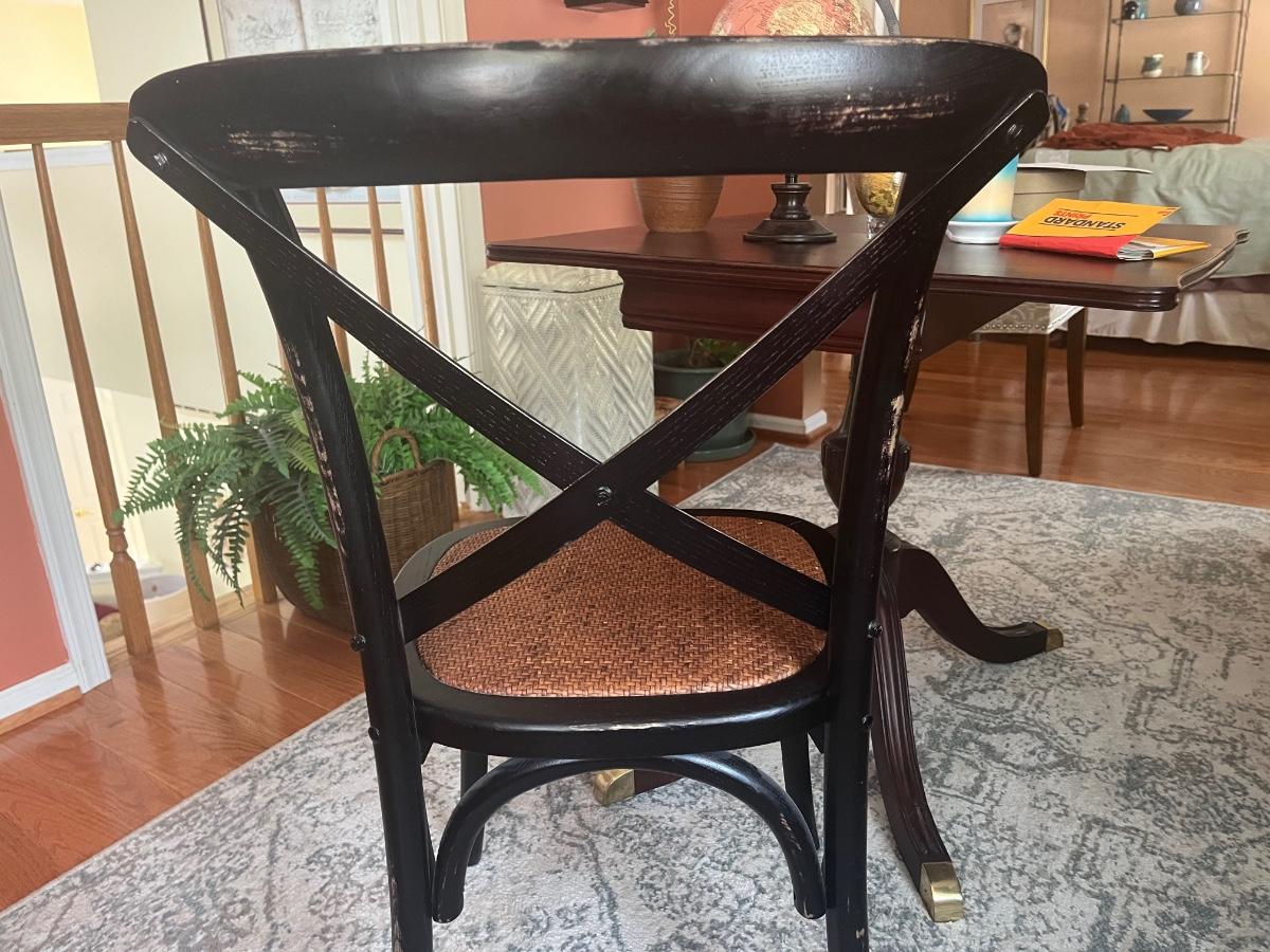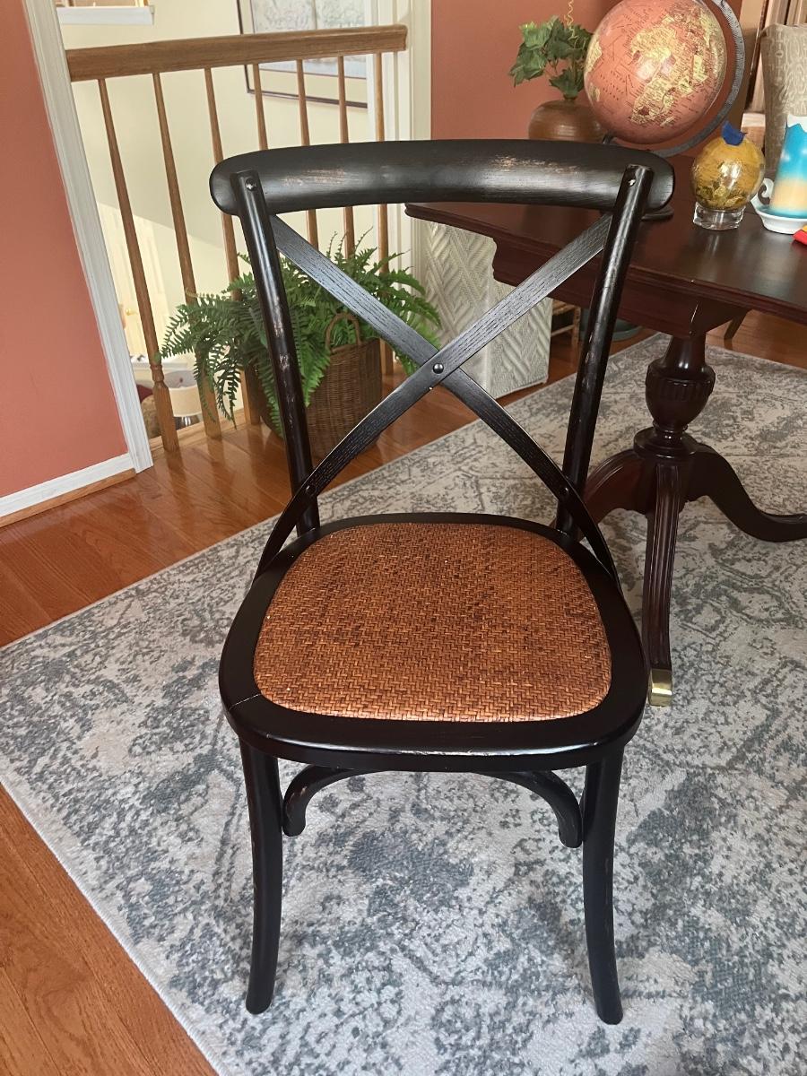 Lot 478: Modern Distressed Black and Rattan Accent Chair