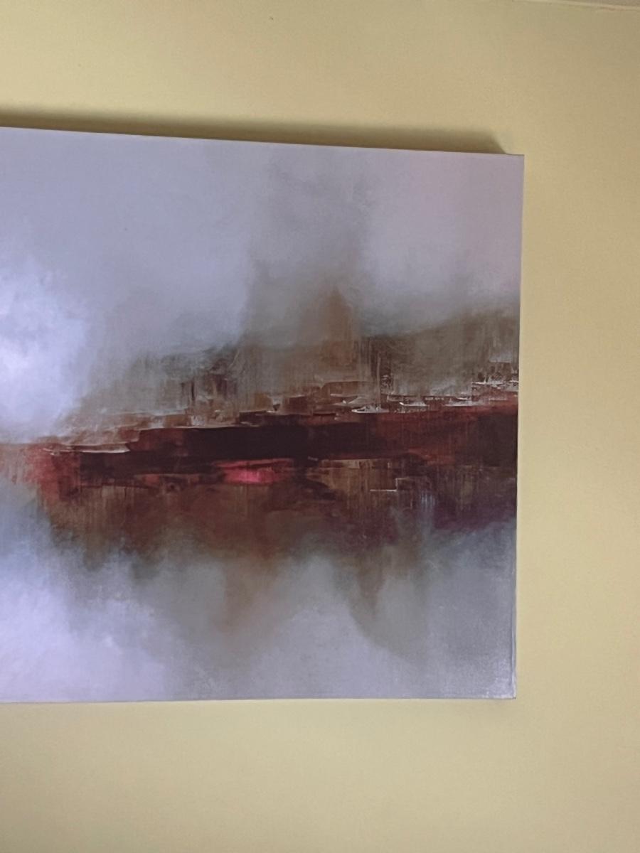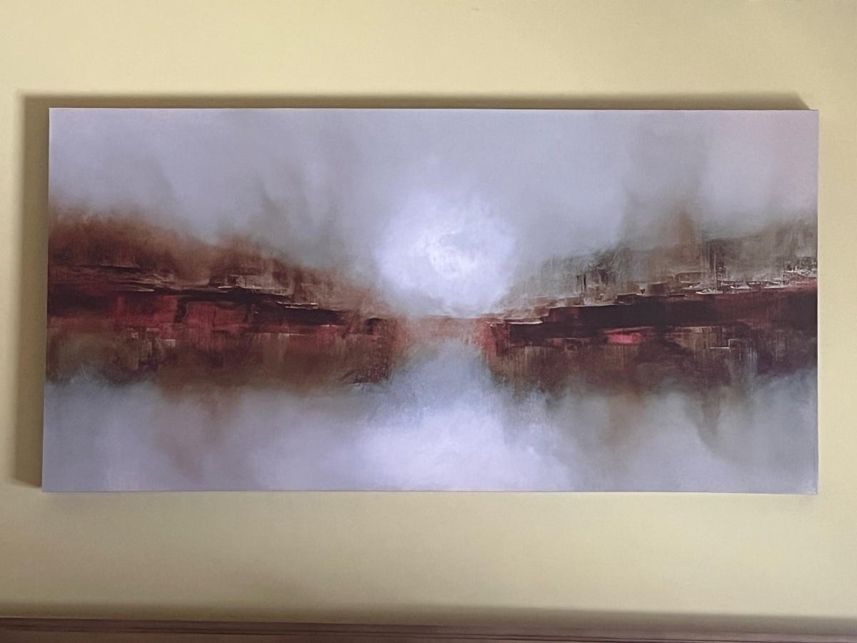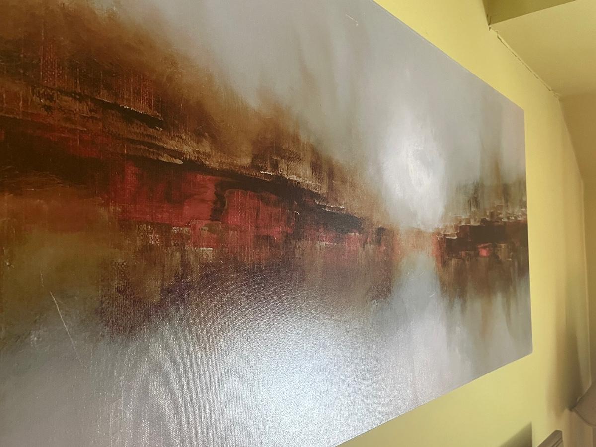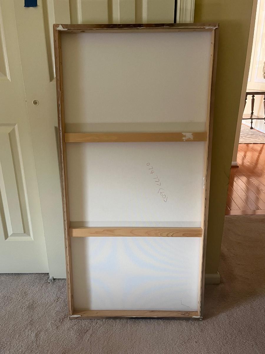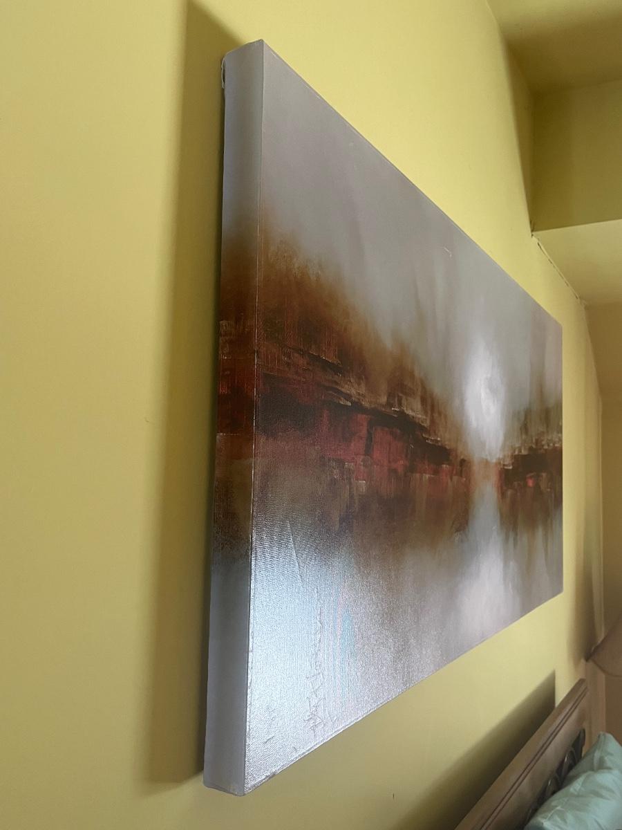 48x24x2 inches deep. This piece does show some light wear, and it was used as decor above a queen headboard. This is for the artwork only. Please see all pictures as they are the best representation of the items. The pictures show condition, measurements if taken, and what is included in the lot. Due to the large amount that we photograph and the time frame, we are not always able to take measurements. All items unless noted, are pre-owned and have been used. If you purchased furniture, you must bring help. We do not allow one person to carry large furniture out on their own. Bring help, tools and a truck for the safety of our client’s homes, and your personal safety. Any damages that result to the property including walls, and floors due to moving of the furniture will be charged to the buyer. Company policy. Thank you.