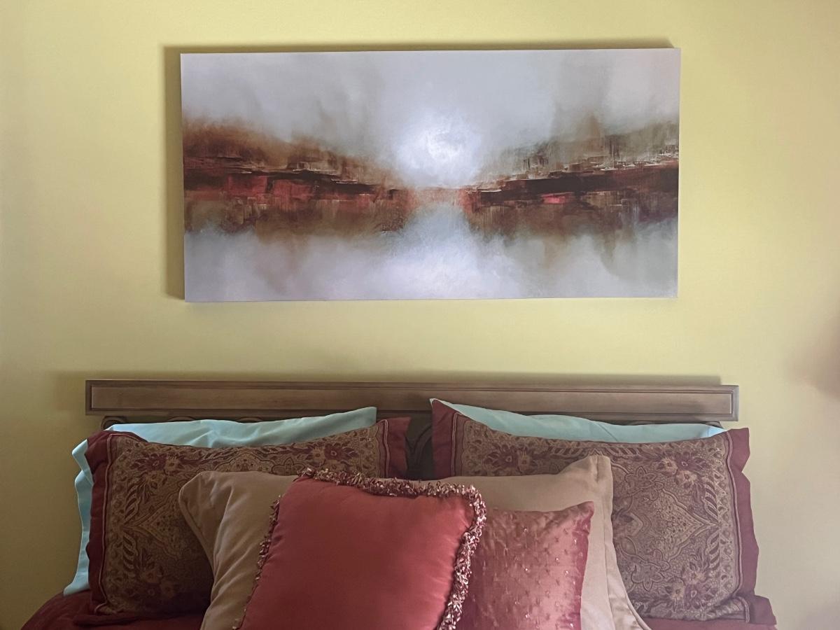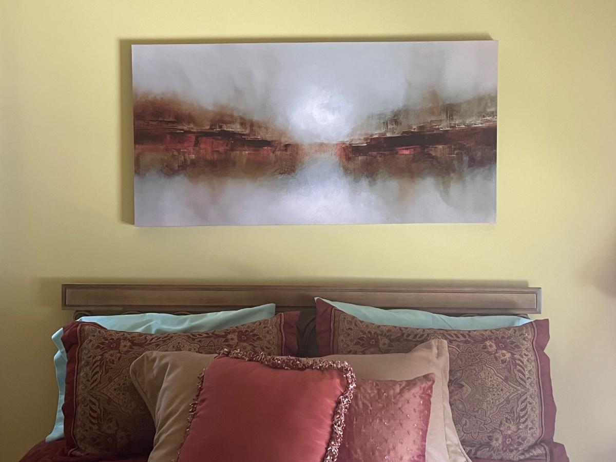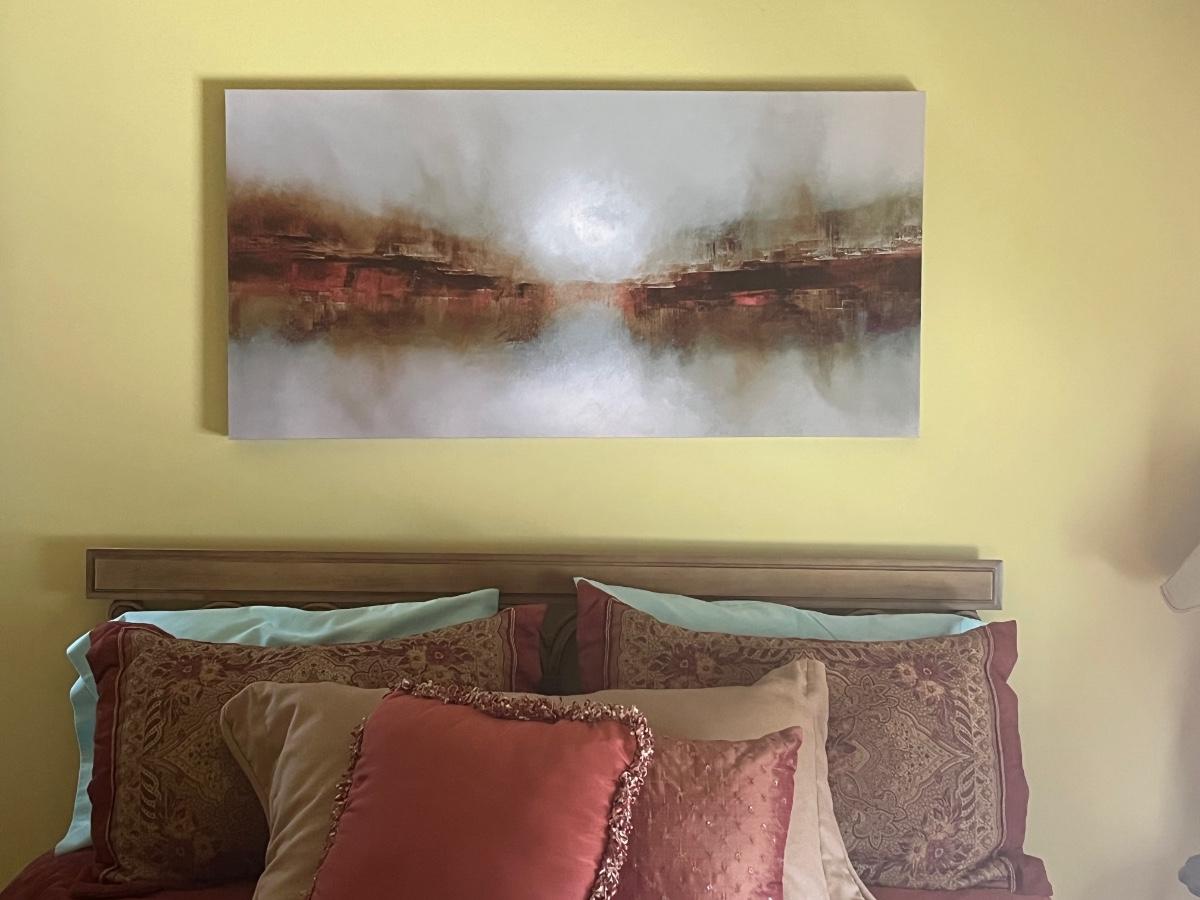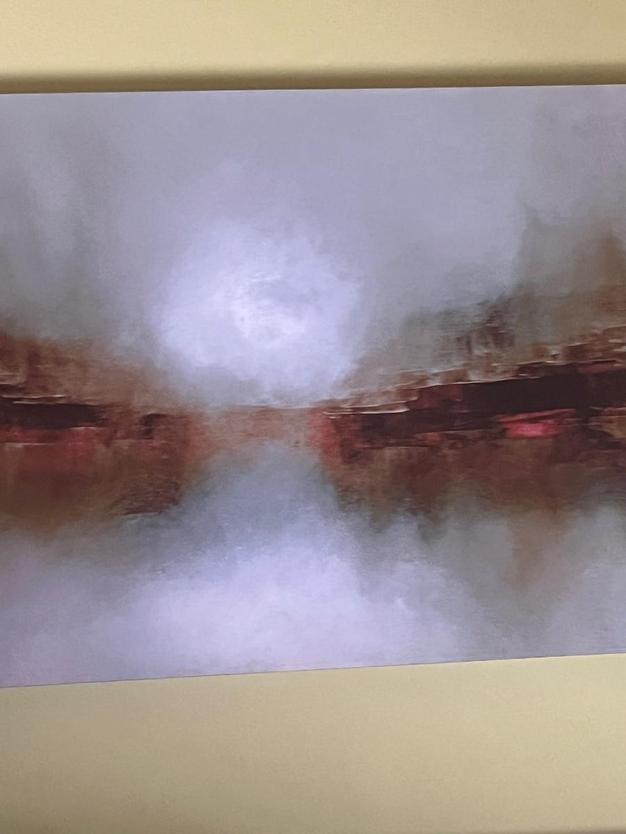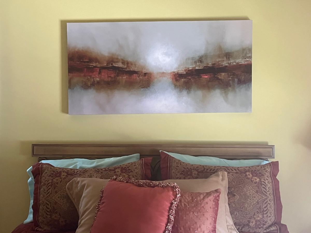 48x24x2 inches deep. This piece does show some light wear, and it was used as decor above a queen headboard. This is for the artwork only. Please see all pictures as they are the best representation of the items. The pictures show condition, measurements if taken, and what is included in the lot. Due to the large amount that we photograph and the time frame, we are not always able to take measurements. All items unless noted, are pre-owned and have been used. If you purchased furniture, you must bring help. We do not allow one person to carry large furniture out on their own. Bring help, tools and a truck for the safety of our client’s homes, and your personal safety. Any damages that result to the property including walls, and floors due to moving of the furniture will be charged to the buyer. Company policy. Thank you.