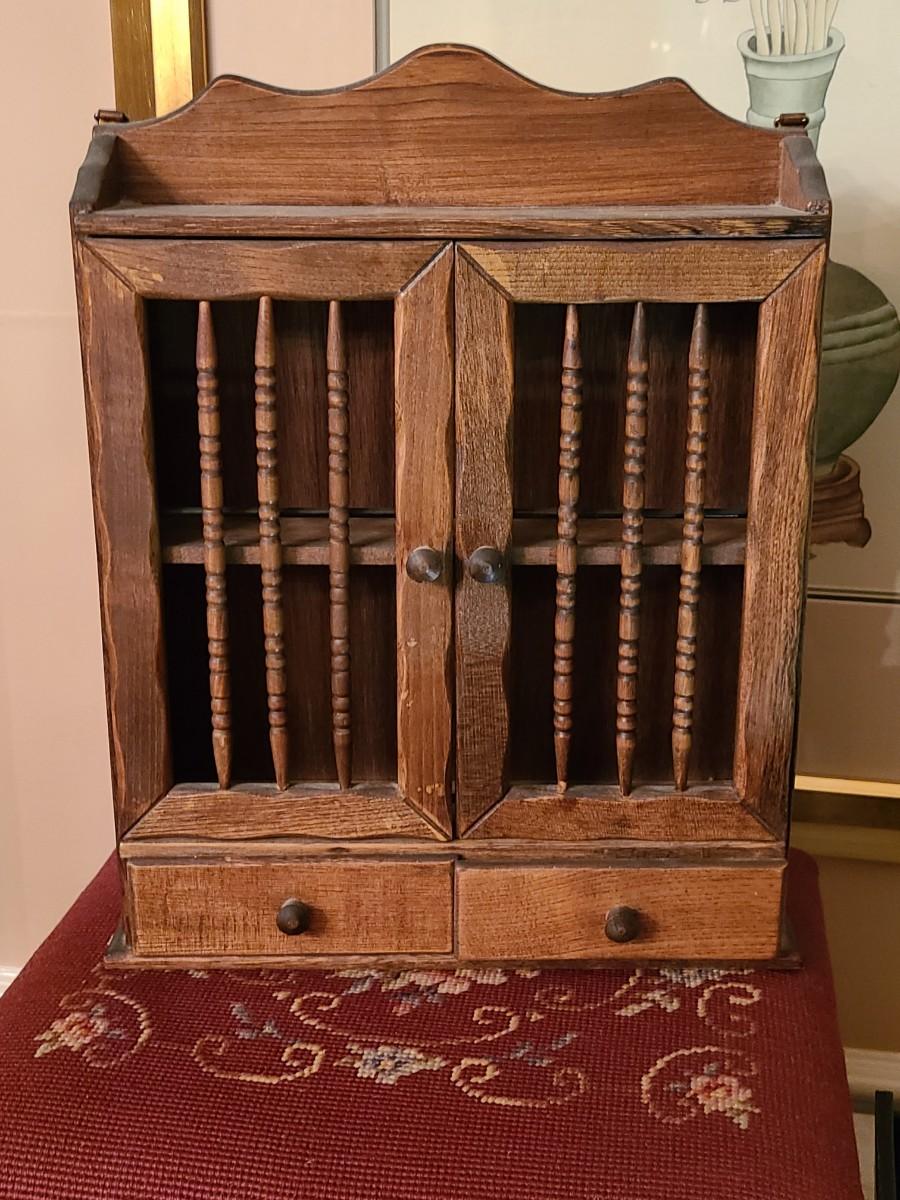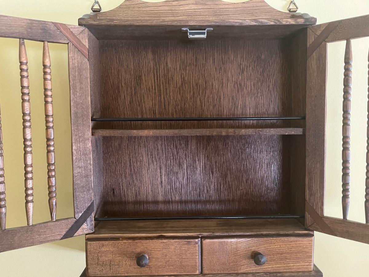 Cabinet is small and wall mounts. All of these items are pre-owned and show minor wear due to age. Please see all pictures as they are the best representation of the items. The pictures show condition, measurements if taken, and what is included in the lot. Due to the large amount that we photograph and the time frame, we are not always able to take measurements. All items unless noted, are pre-owned and have been used. If you purchased furniture, you must bring help. We do not allow one person to carry large furniture out on their own. Bring help, tools and a truck for the safety of our client’s homes, and your personal safety. Any damages that result to the property including walls, and floors due to moving of the furniture will be charged to the buyer. Company policy. Thank you.
