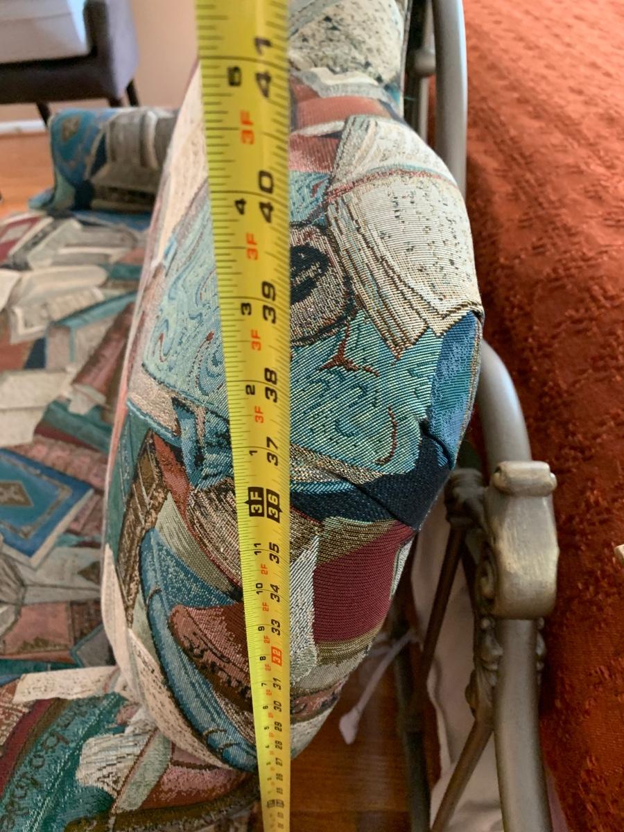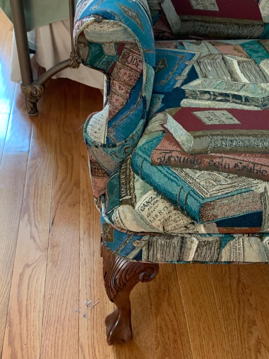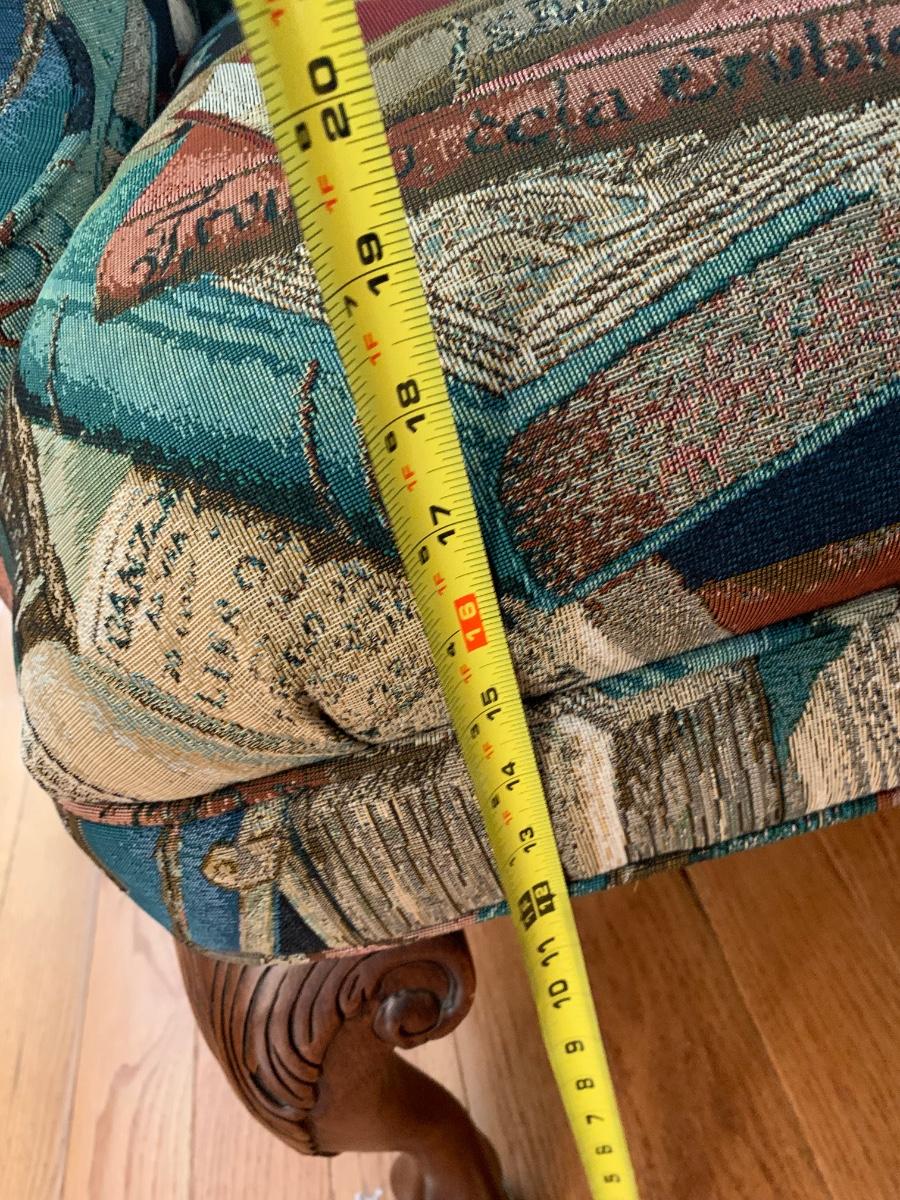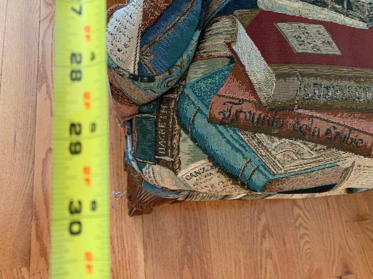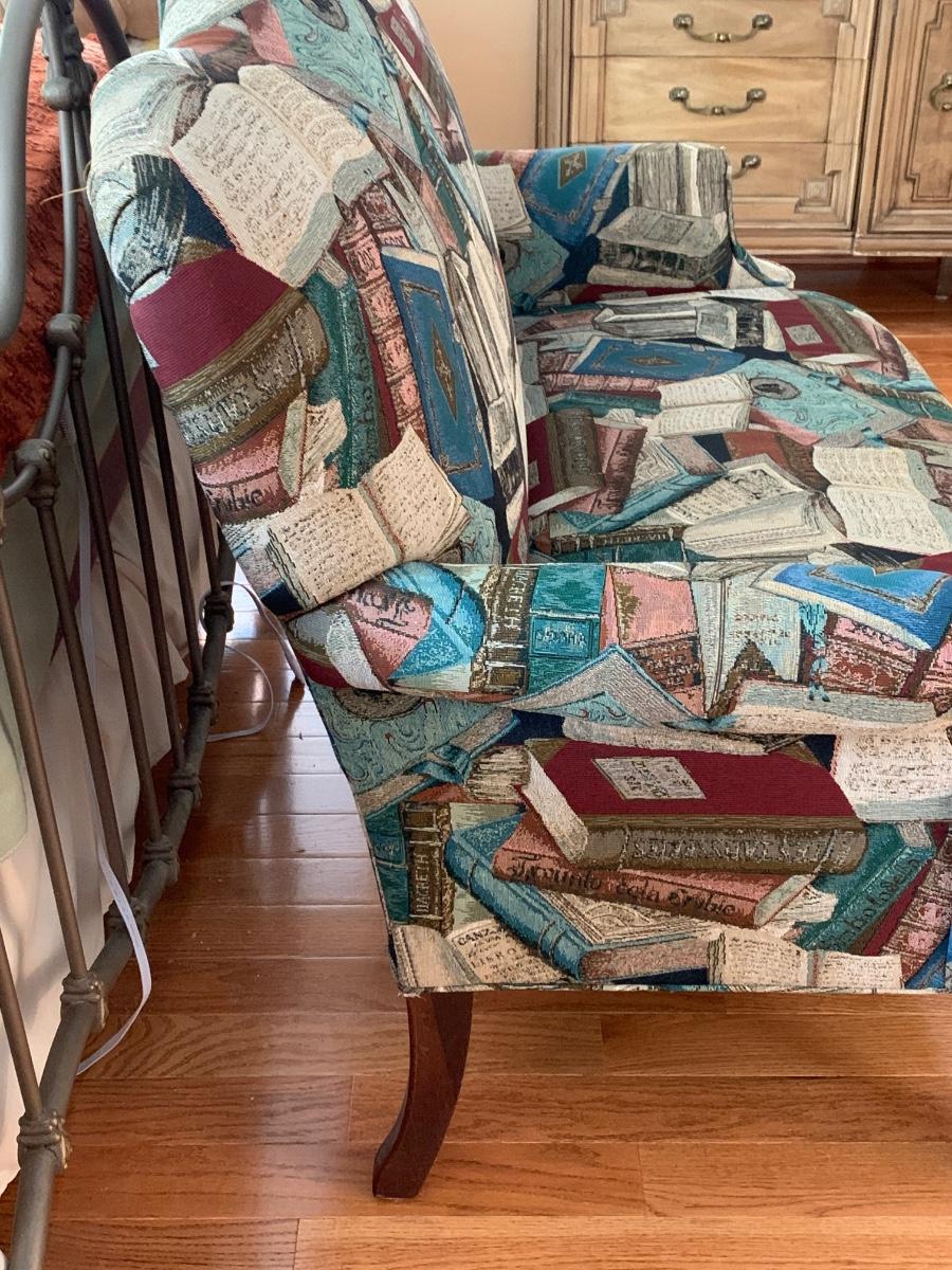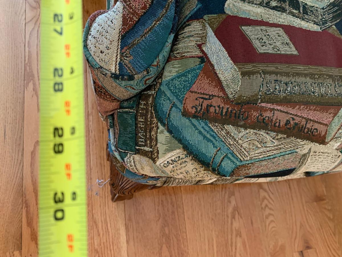Settee with library/books fabric in very good condition and comfy. Awesome addition to any home.