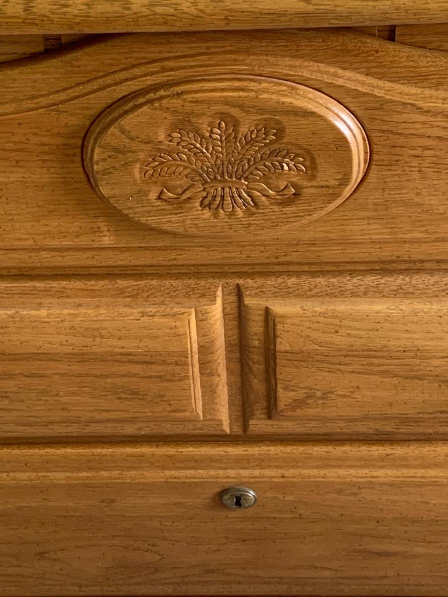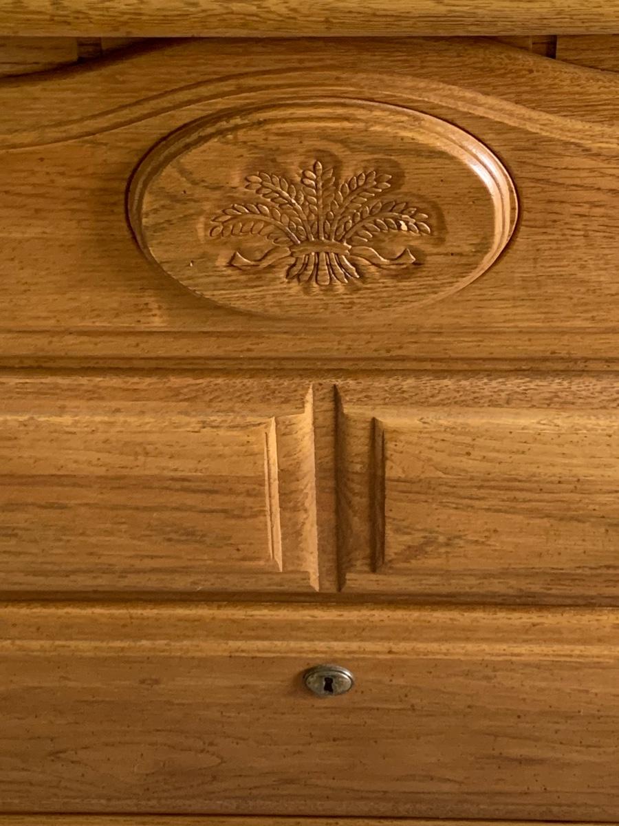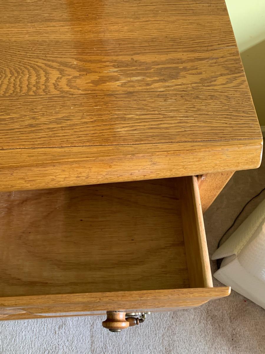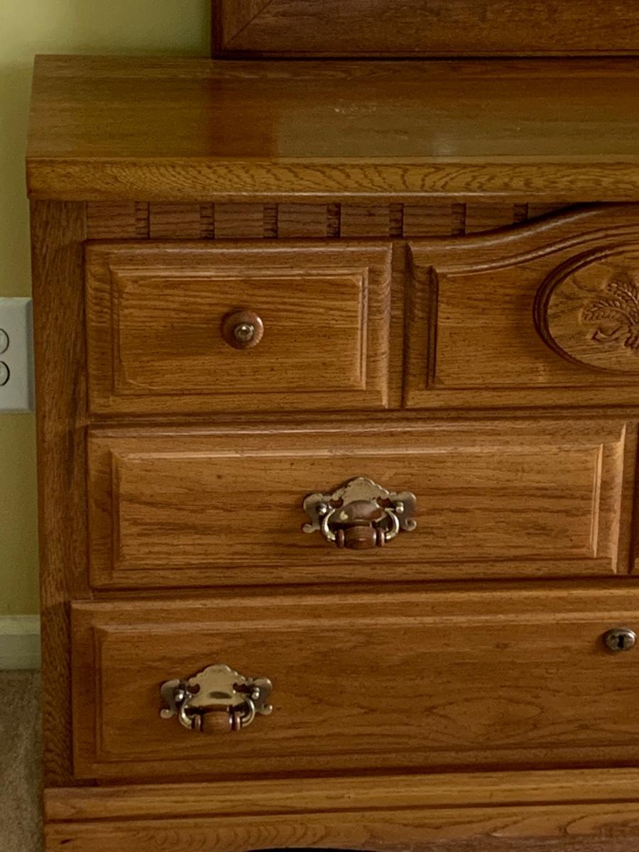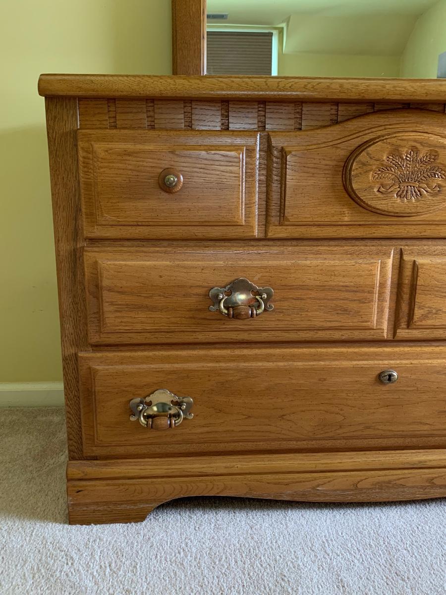 Oak bureau/dress with mirror. This piece is not all solid oak there are oak features.29 x 45 mirror 44 x 18 x 30 bureau