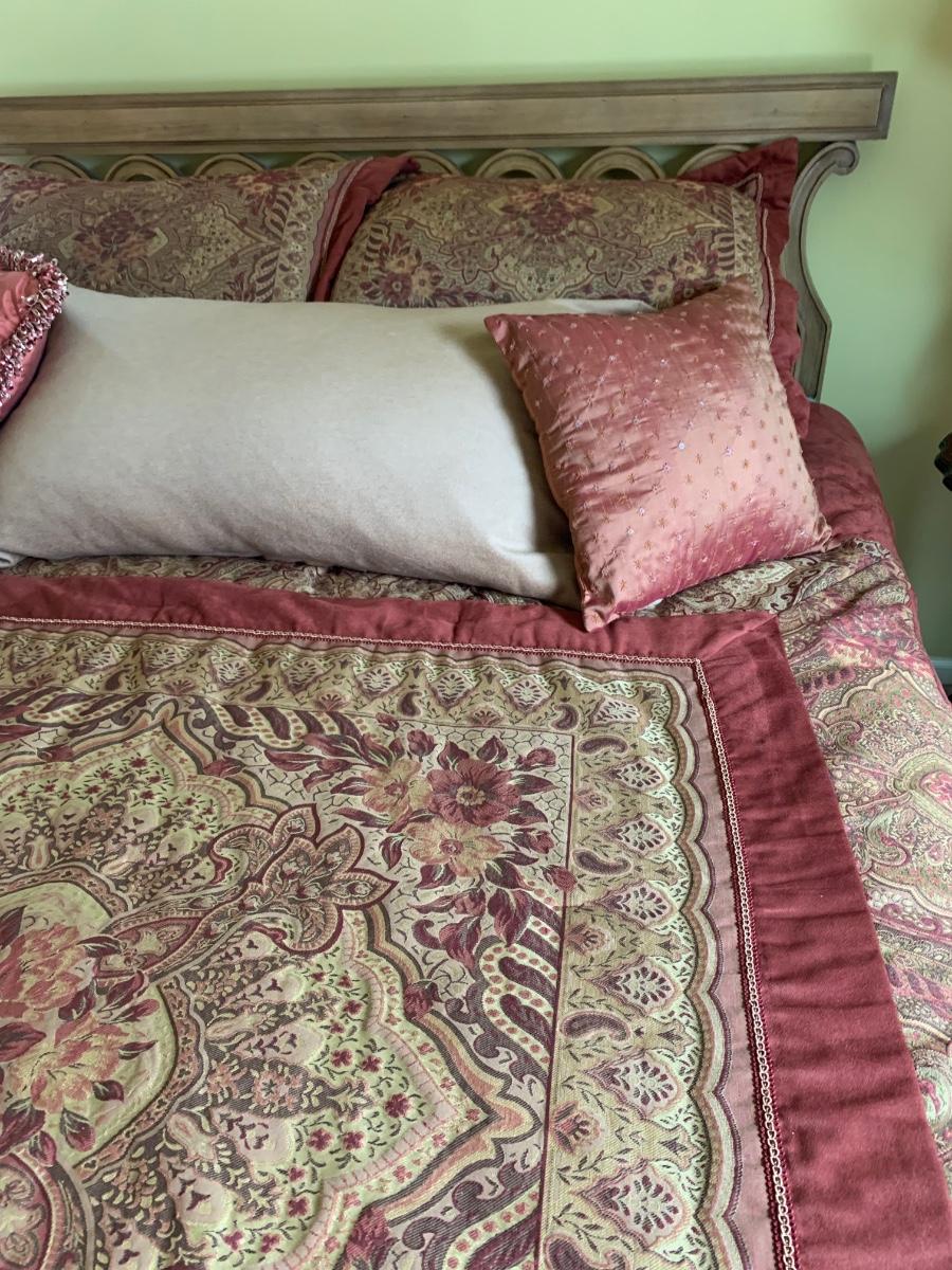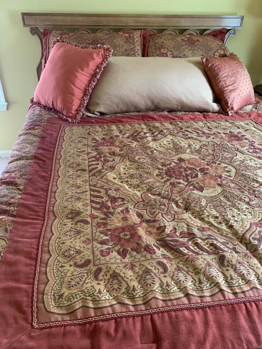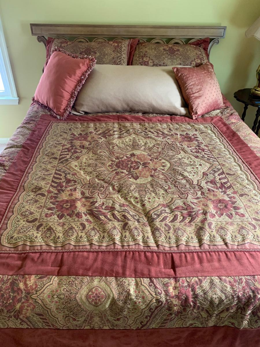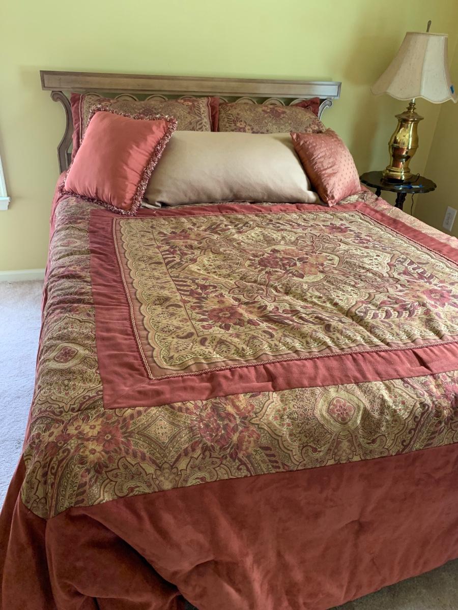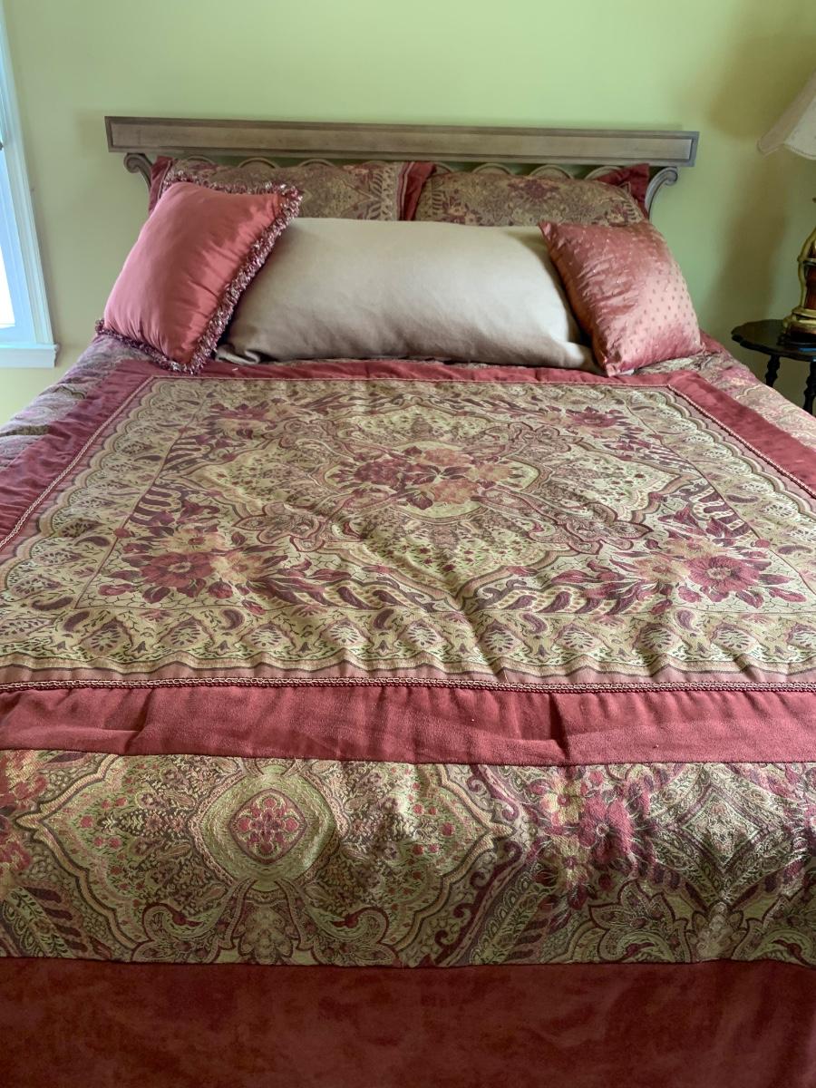 Beautiful head board and bedding for refurnishing the bedroom. Queen Size (83 x 63 x 26)
