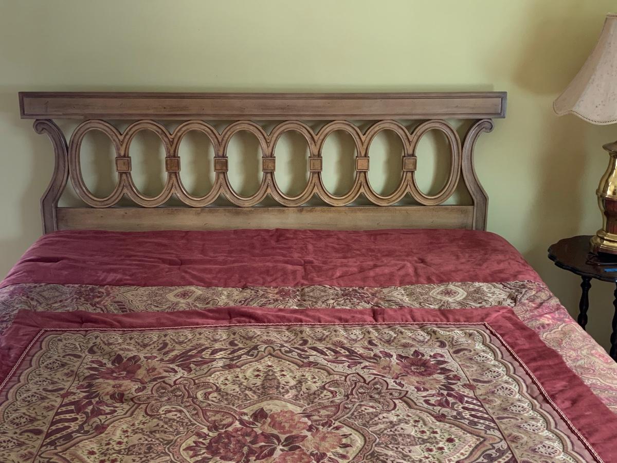 Lot 295R: MCM Head Board, Bedding & Bed