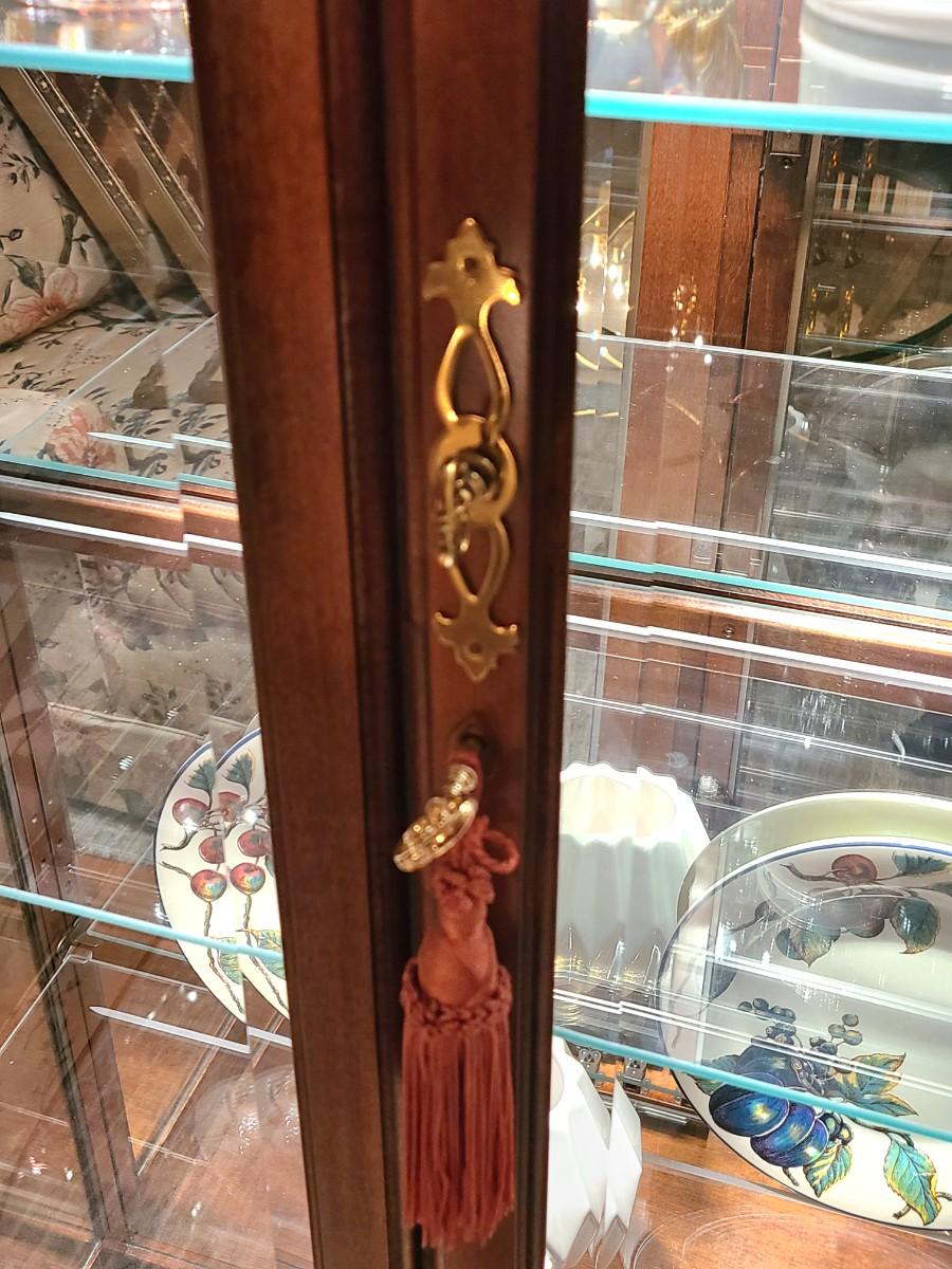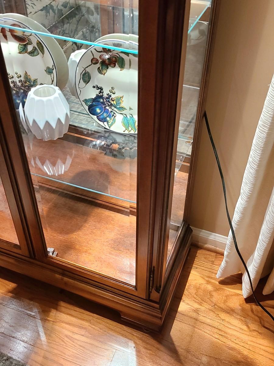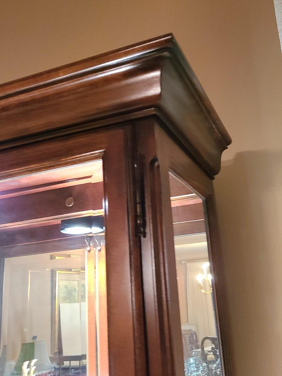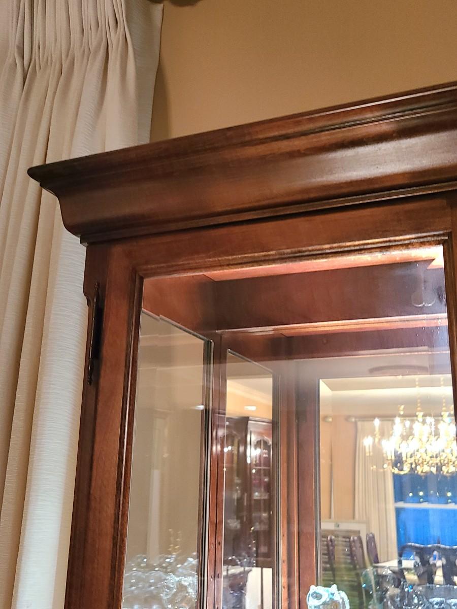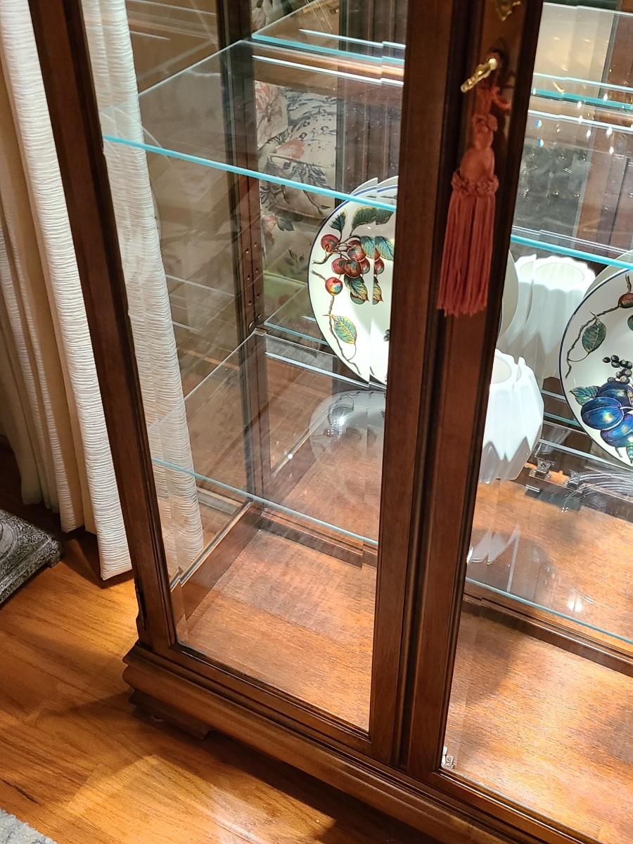 Cabinet is lighted, has glass on front and sides with 4 glass shelves (31 x 13 x 78) Please see all pictures as they are the best representation of the items. The pictures show condition, measurements if taken, and what is included in the lot. Due to the large amount that we photograph and the time frame, we are not always able to take measurements. All items unless noted, are pre-owned and have been used. If you purchased furniture, you must bring help. We do not allow one person to carry large furniture out on their own. Bring help, tools and a truck for the safety of our client’s homes, and your personal safety. Any damages that result to the property including walls, and floors due to moving of the furniture will be charged to the buyer. Company policy. Thank you.