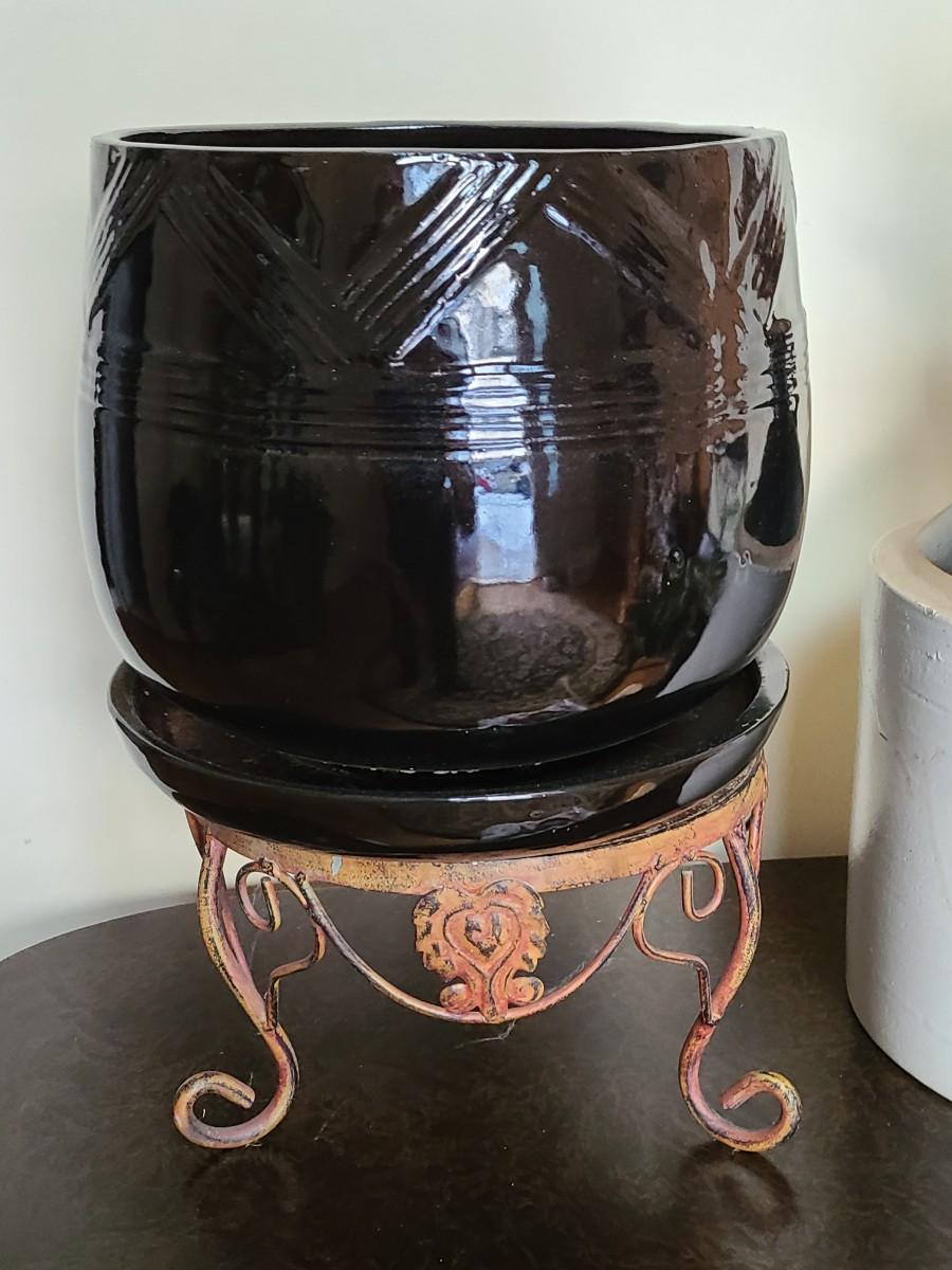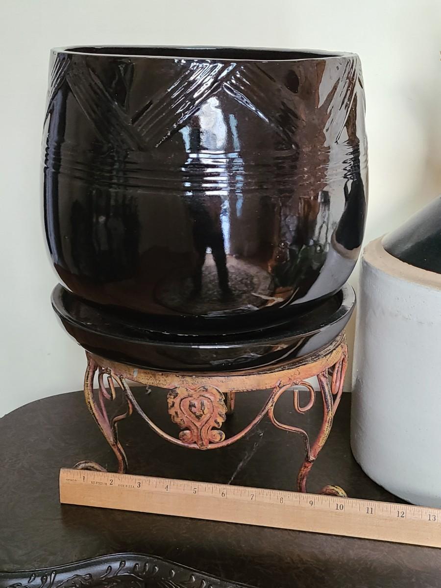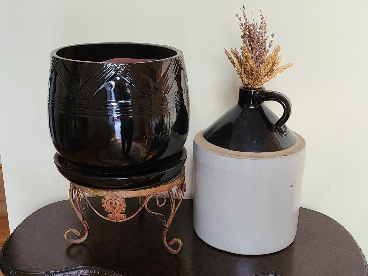 Lot 43: Stoneware Jug & Modern Planter on Metal Stand