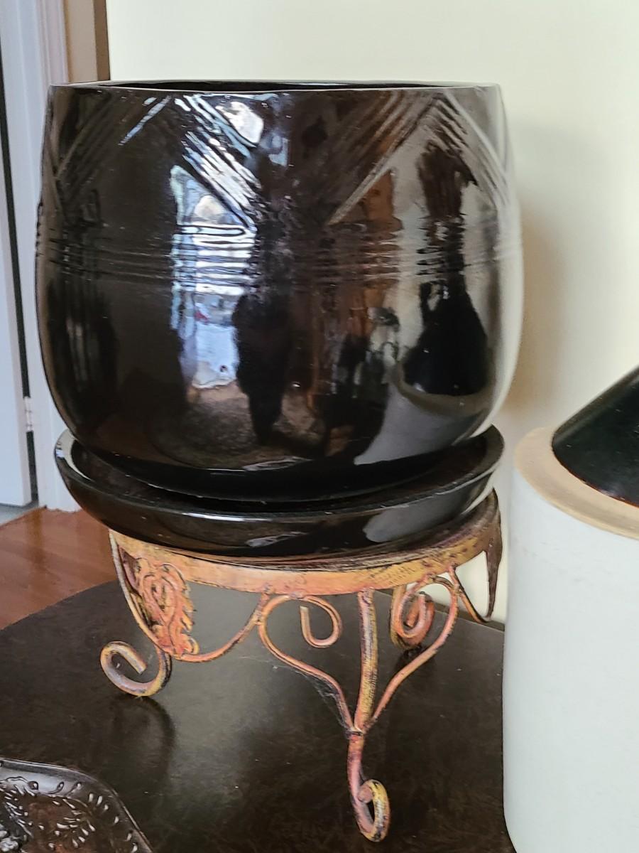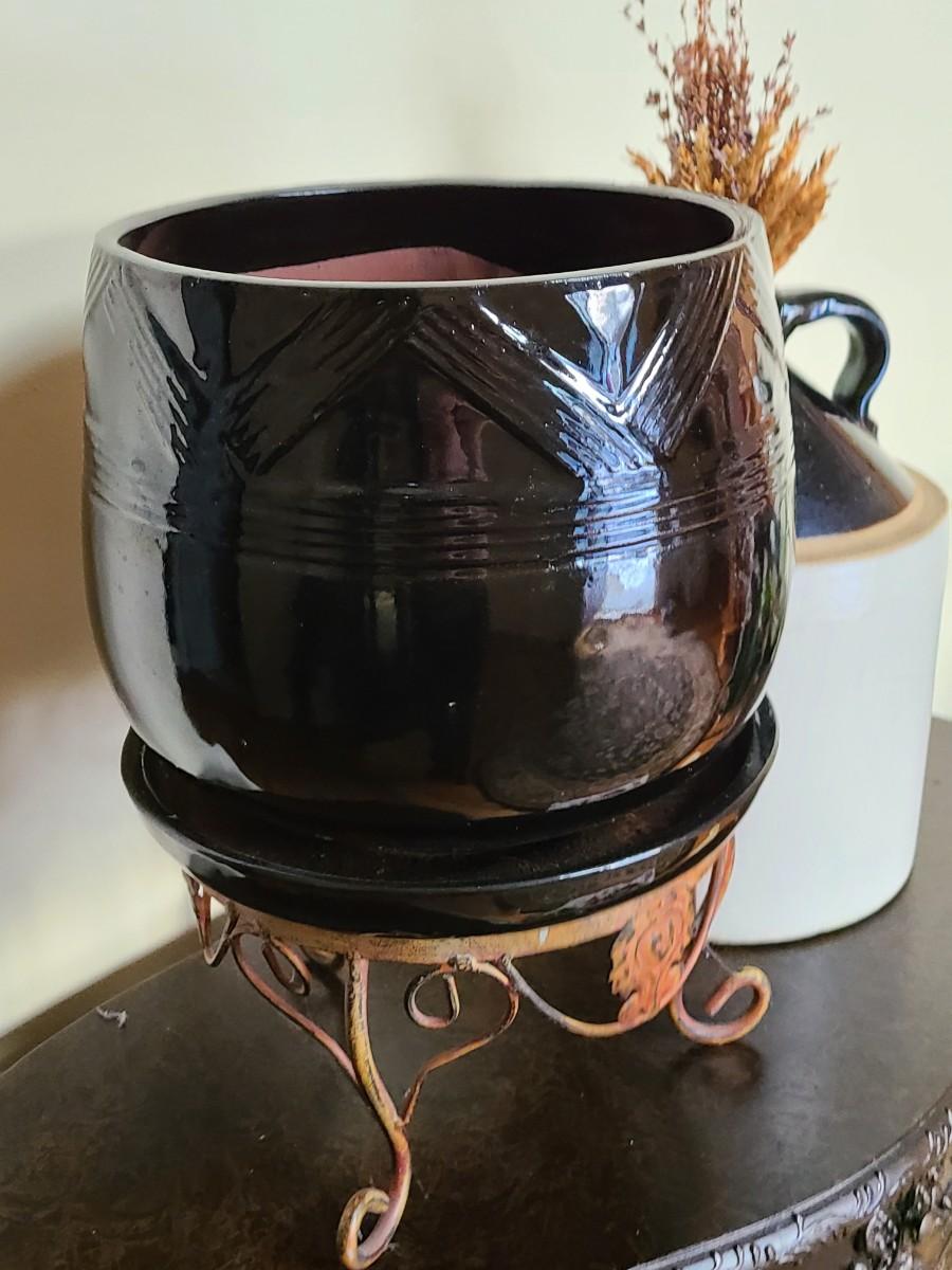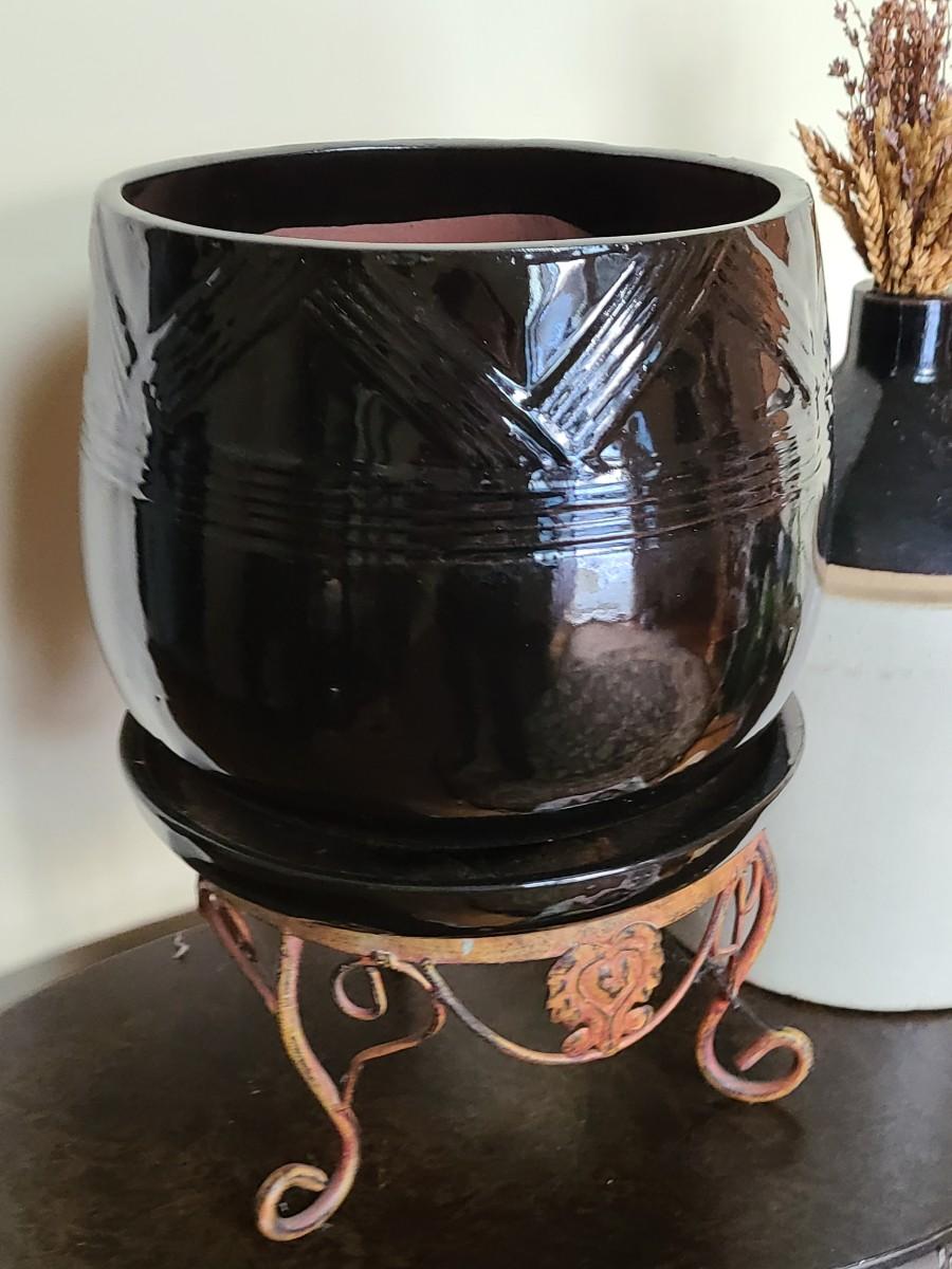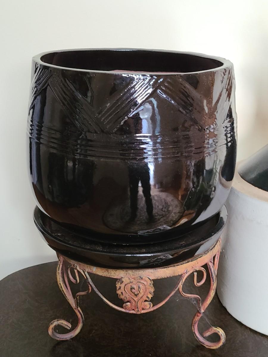 Lot 43: Stoneware Jug & Modern Planter on Metal Stand