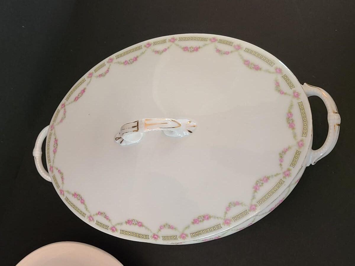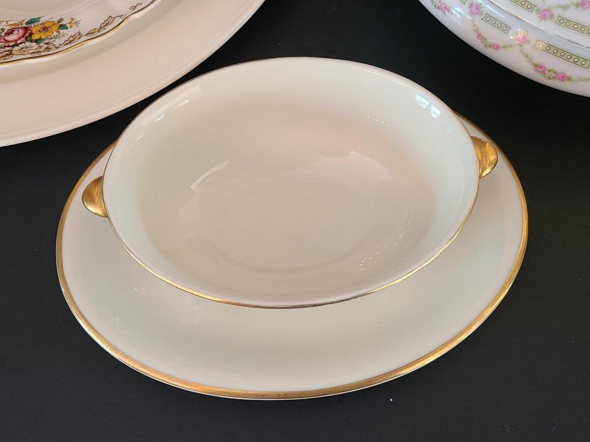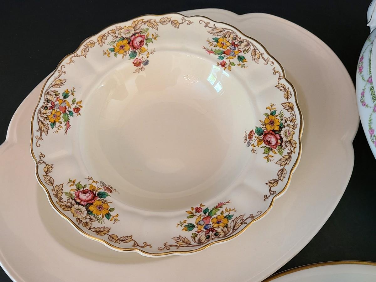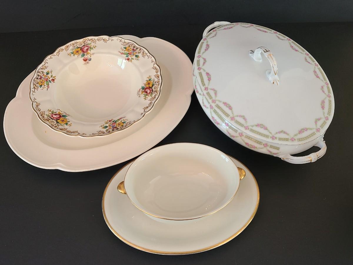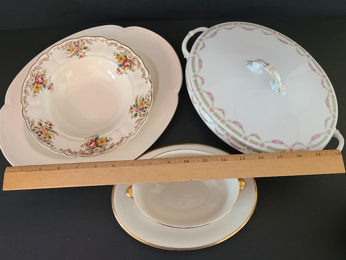 Vintage mixed collection of serving pieces and lidded serving bowl