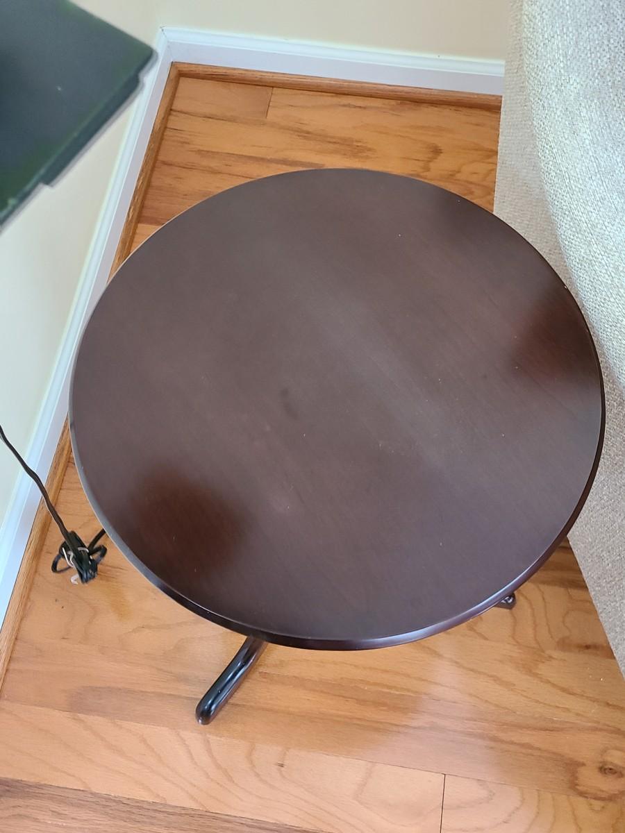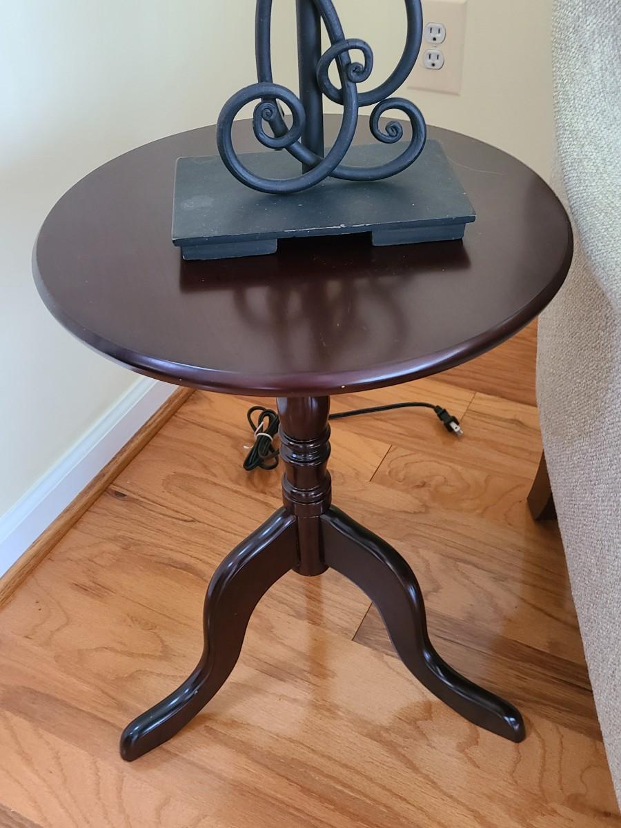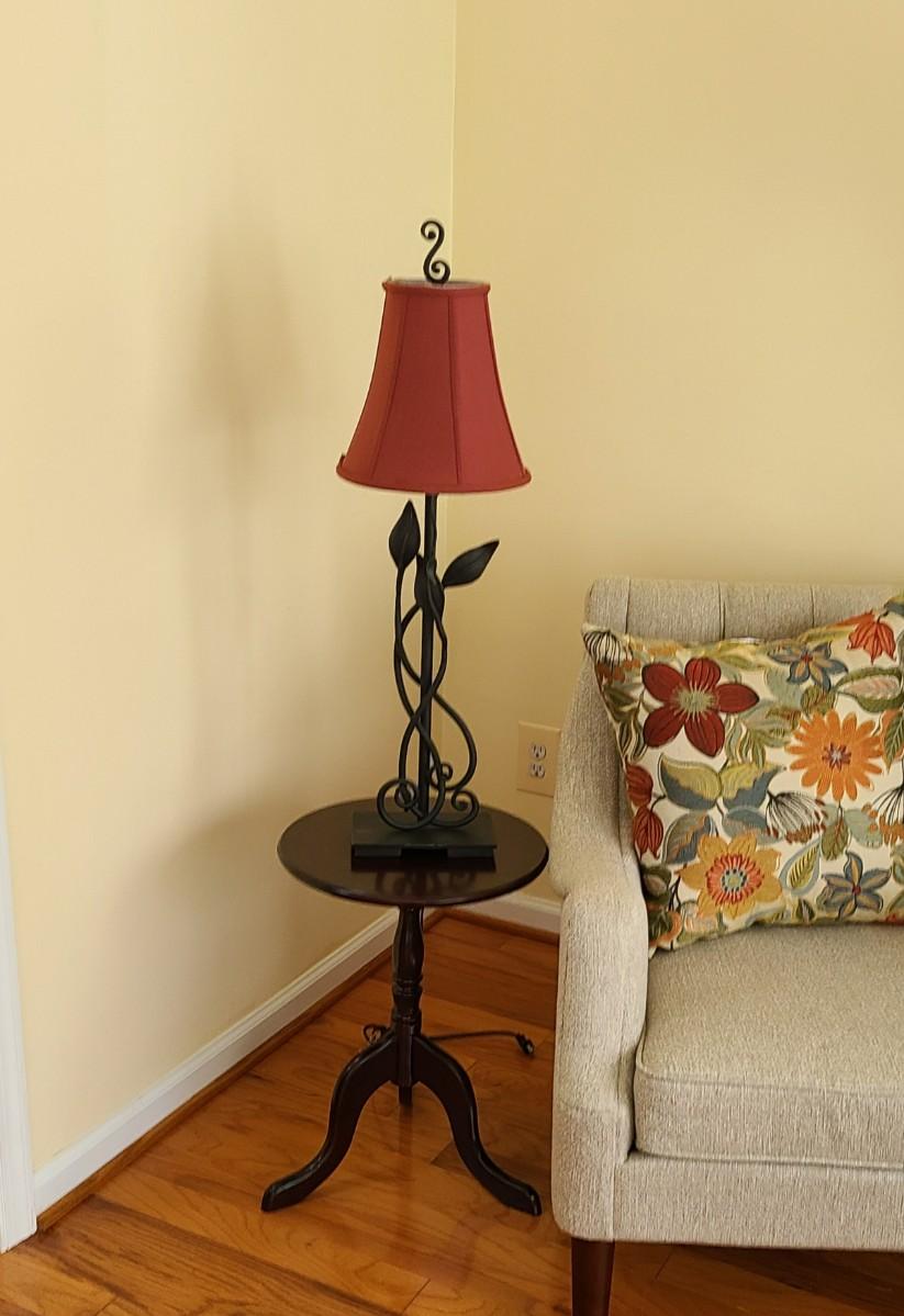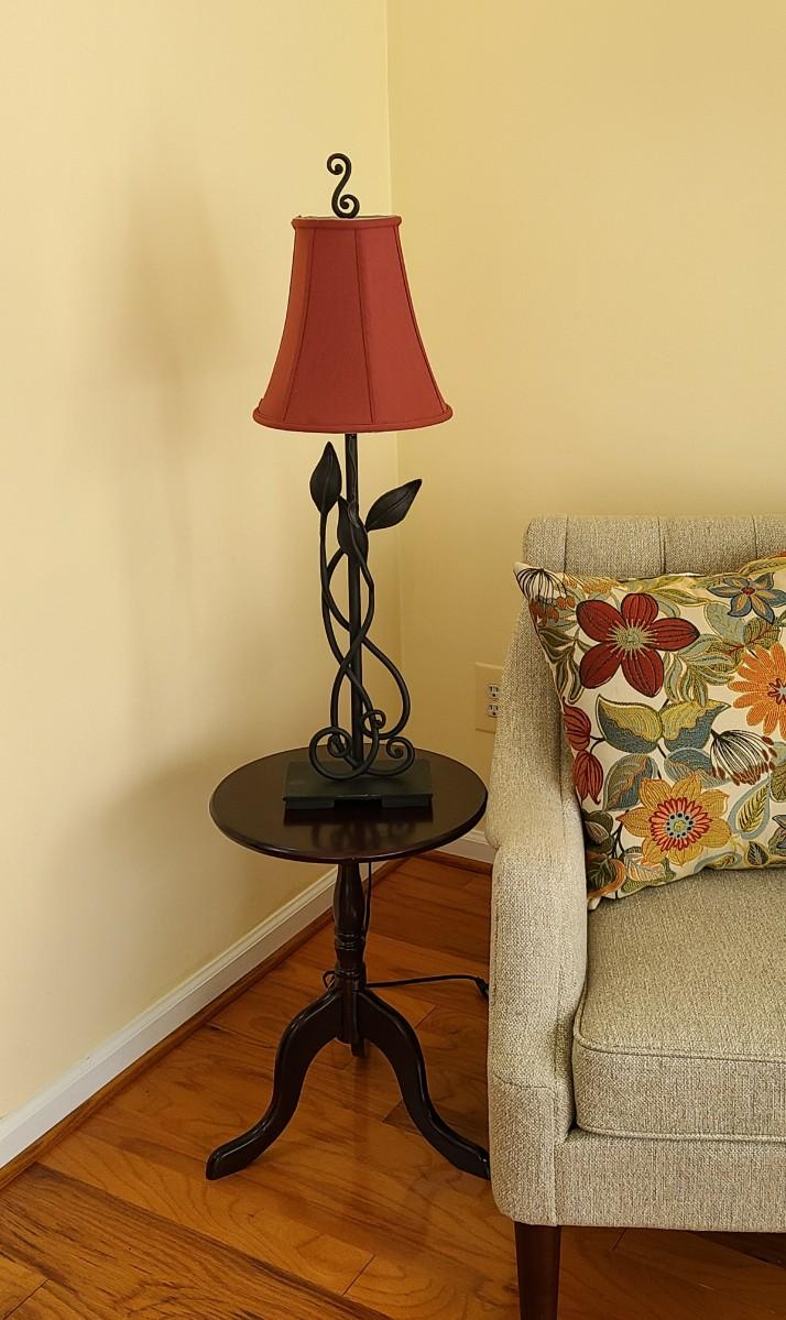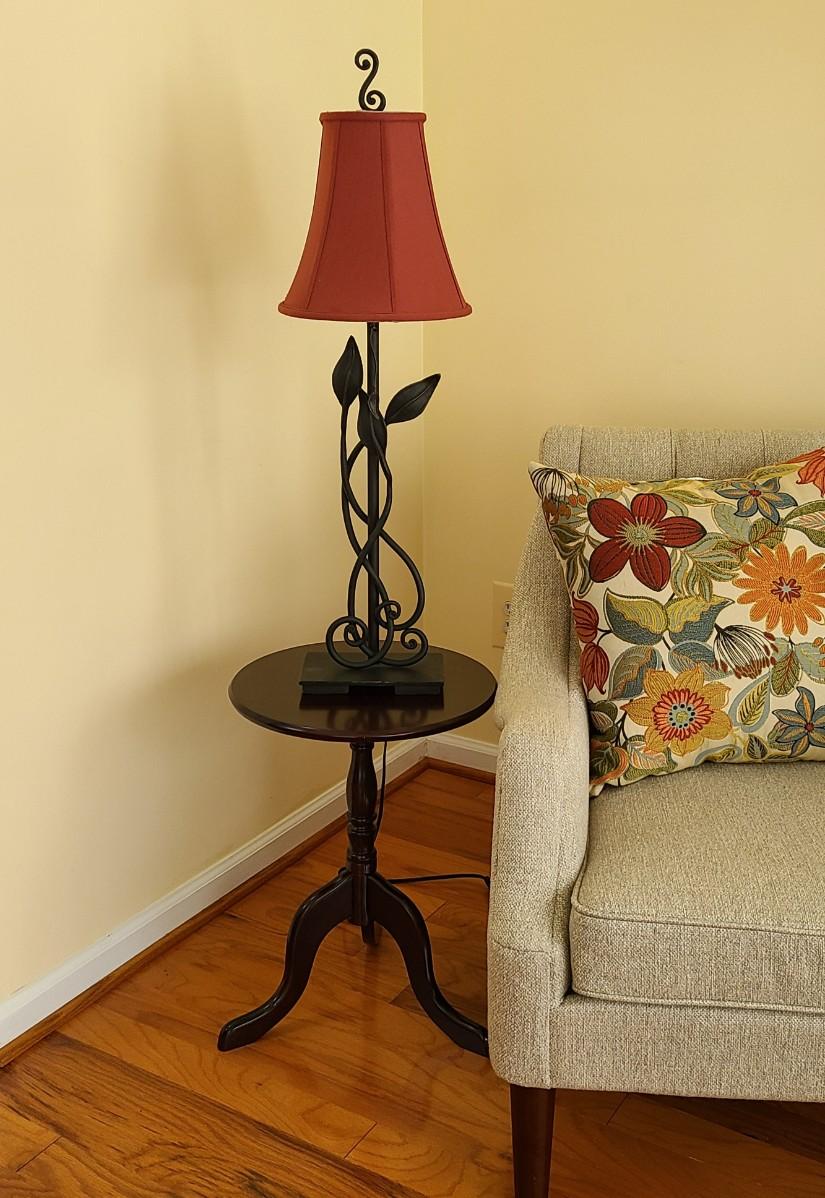 Lovely black metal lamp with leaf details (32 inches tall), and small Bombay accent table (21 inches tall, and 15 across). Please see all pictures as they are the best representation of the items. The pictures show condition, measurements if taken, and what is included in the lot. Due to the large amount that we photograph and the time frame, we are not always able to take measurements. All items unless noted, are pre-owned and have been used. If you purchased furniture, you must bring help. We do not allow one person to carry large furniture out on their own. Bring help, tools and a truck for the safety of our client’s homes, and your personal safety. Any damages that result to the property including walls, and floors due to moving of the furniture will be charged to the buyer. Company policy. Thank you.