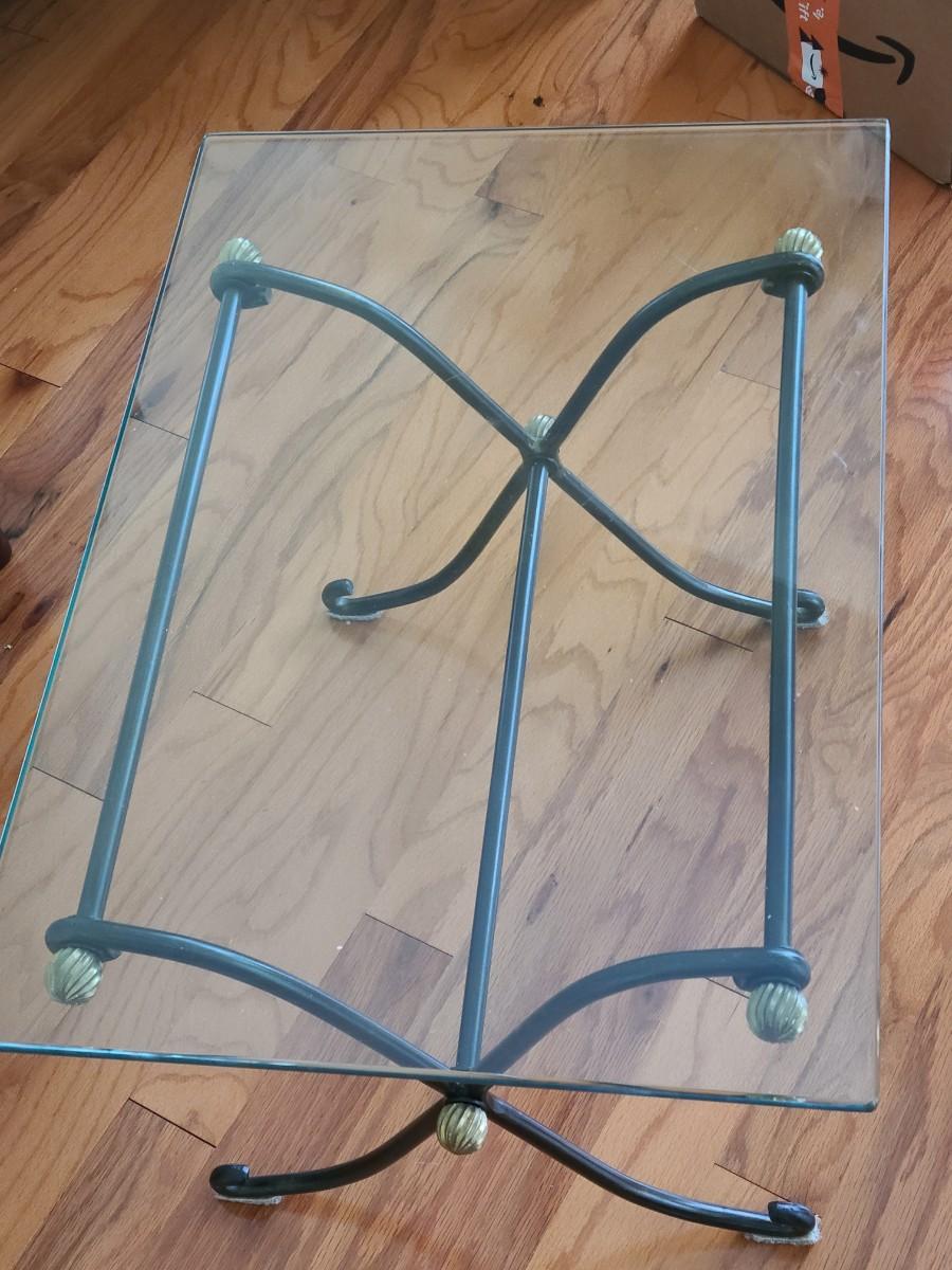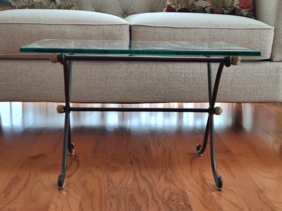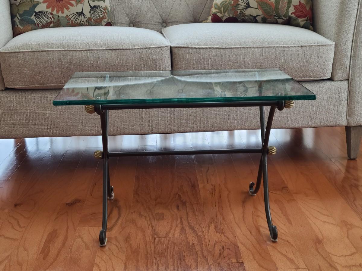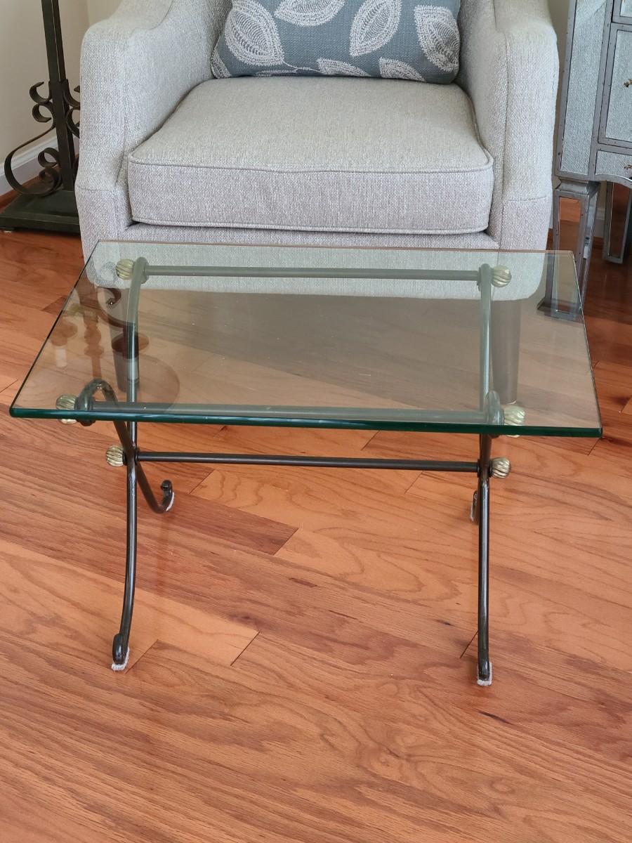 Lot 285: Glass Top & Black/ Gold Metal Petite Coffee Table
