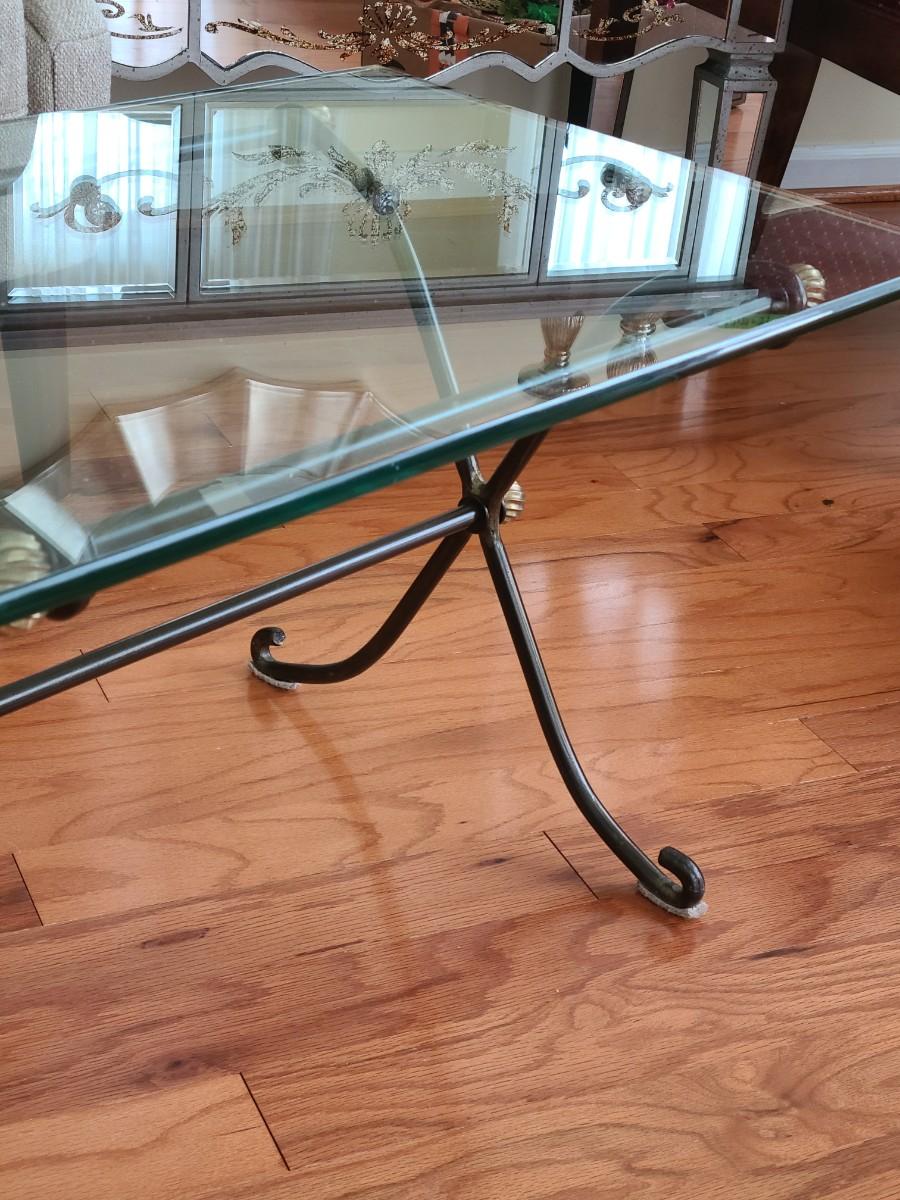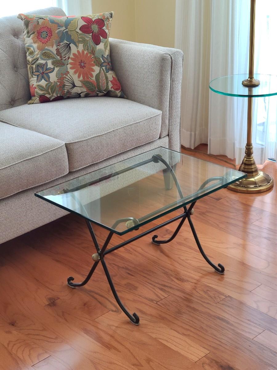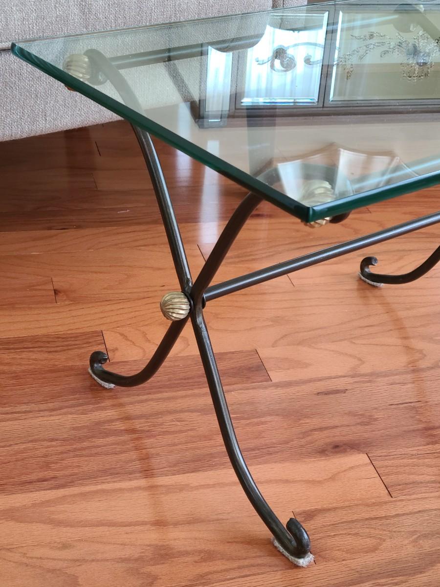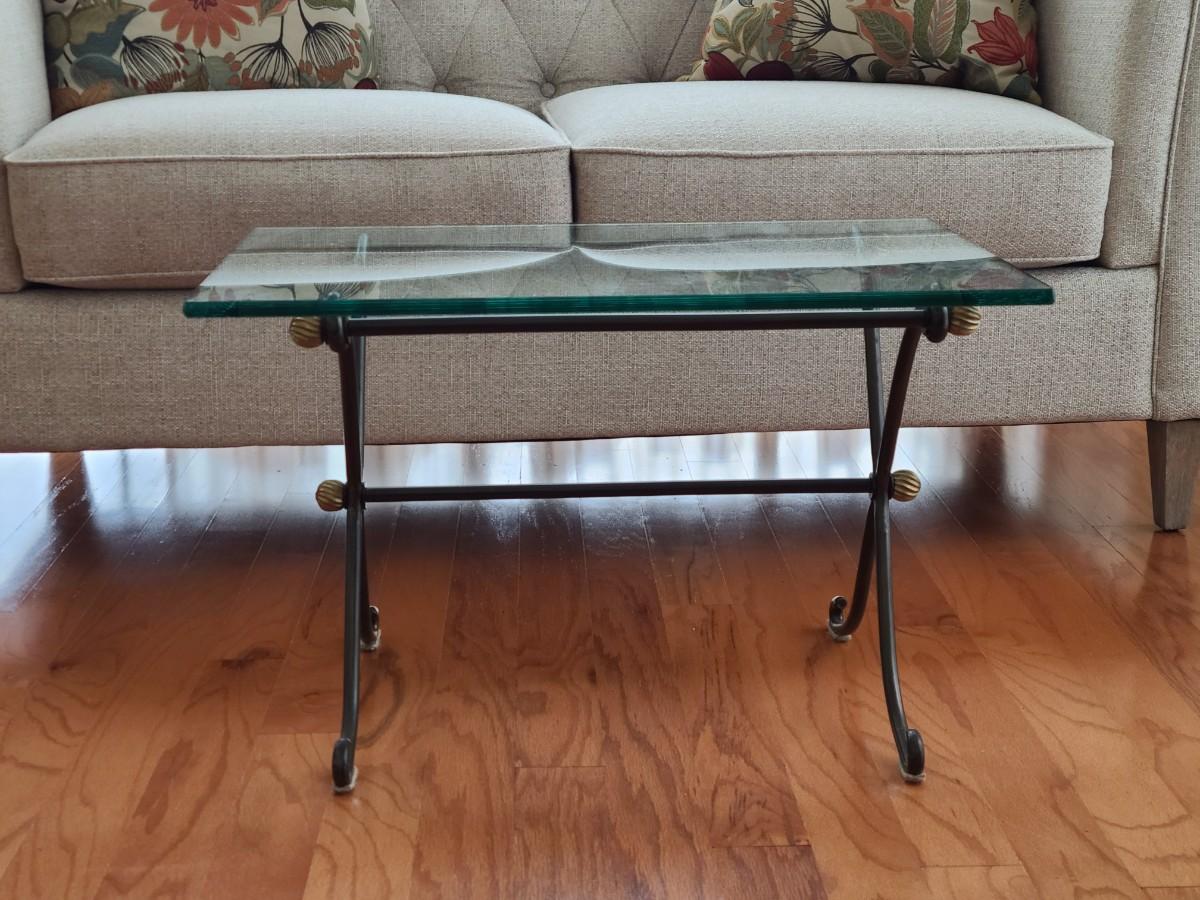Lot 285: Glass Top & Black/ Gold Metal Petite Coffee Table