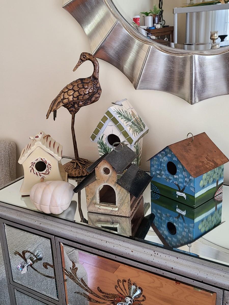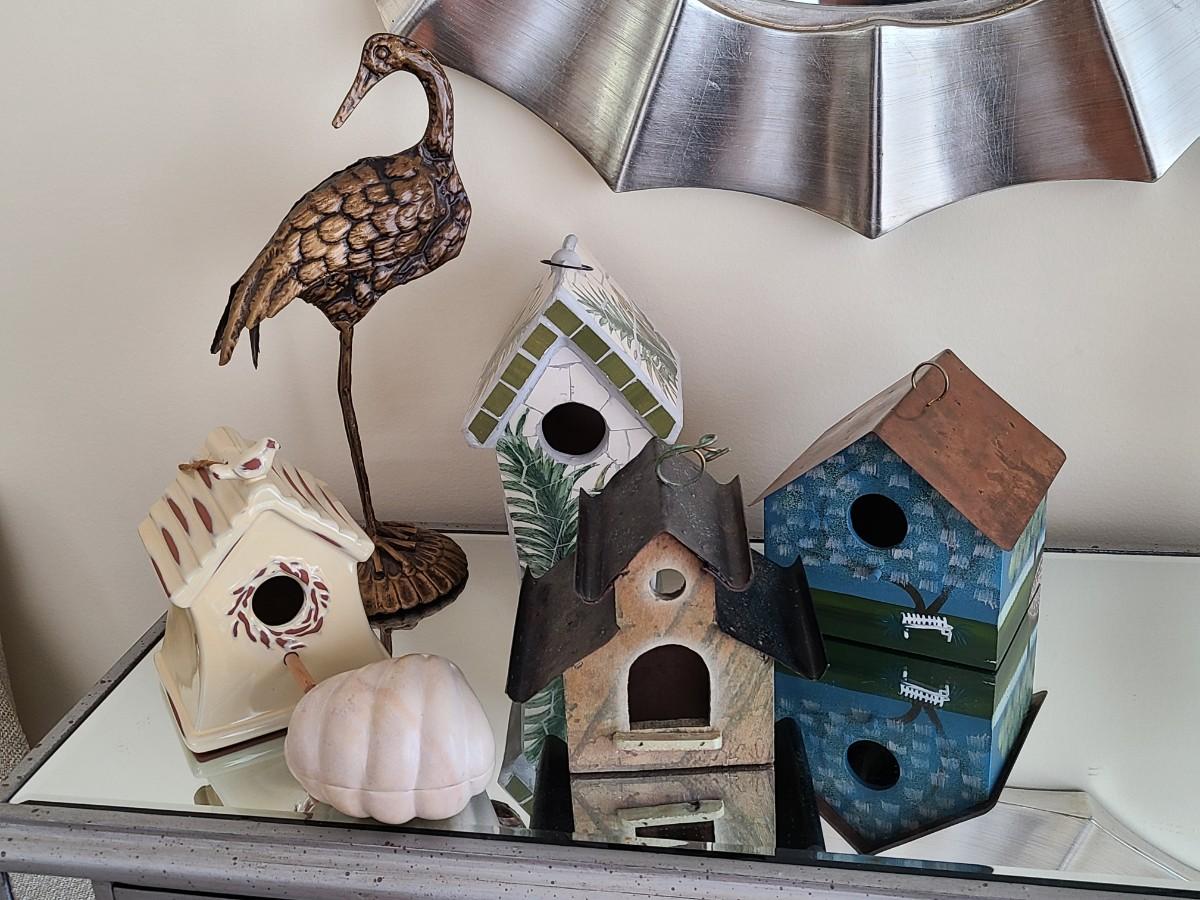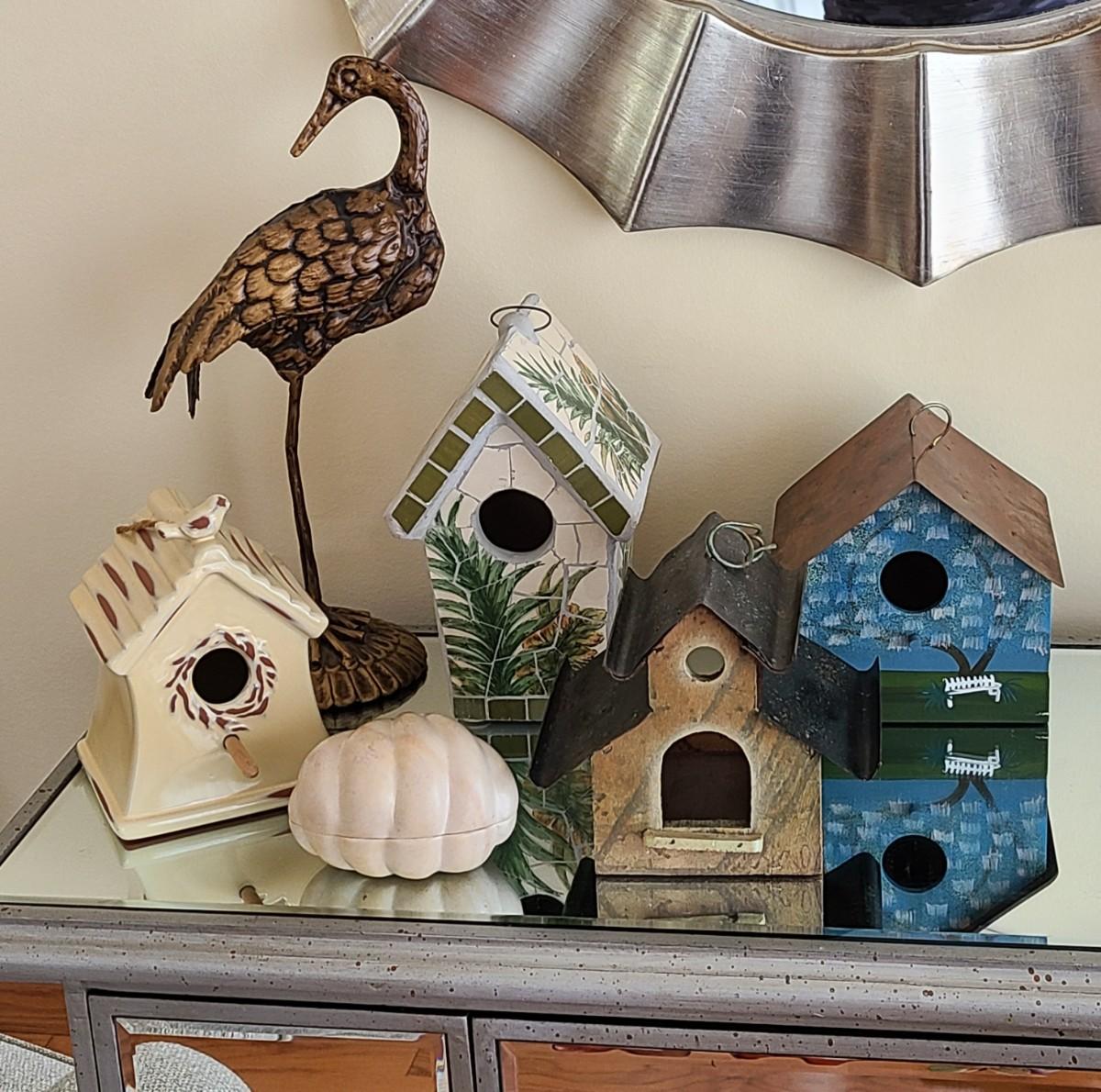 Modern home store pieces used as decor. Mirror & Table not included. Bird and Birdhouses included. Please see all pictures as they are the best representation of the items. The pictures show condition, measurements if taken, and what is included in the lot. Due to the large amount that we photograph and the time frame, we are not always able to take measurements. All items unless noted, are pre-owned and have been used. If you purchased furniture, you must bring help. We do not allow one person to carry large furniture out on their own. Bring help, tools and a truck for the safety of our client’s homes, and your personal safety. Any damages that result to the property including walls, and floors due to moving of the furniture will be charged to the buyer. Company policy. Thank you.