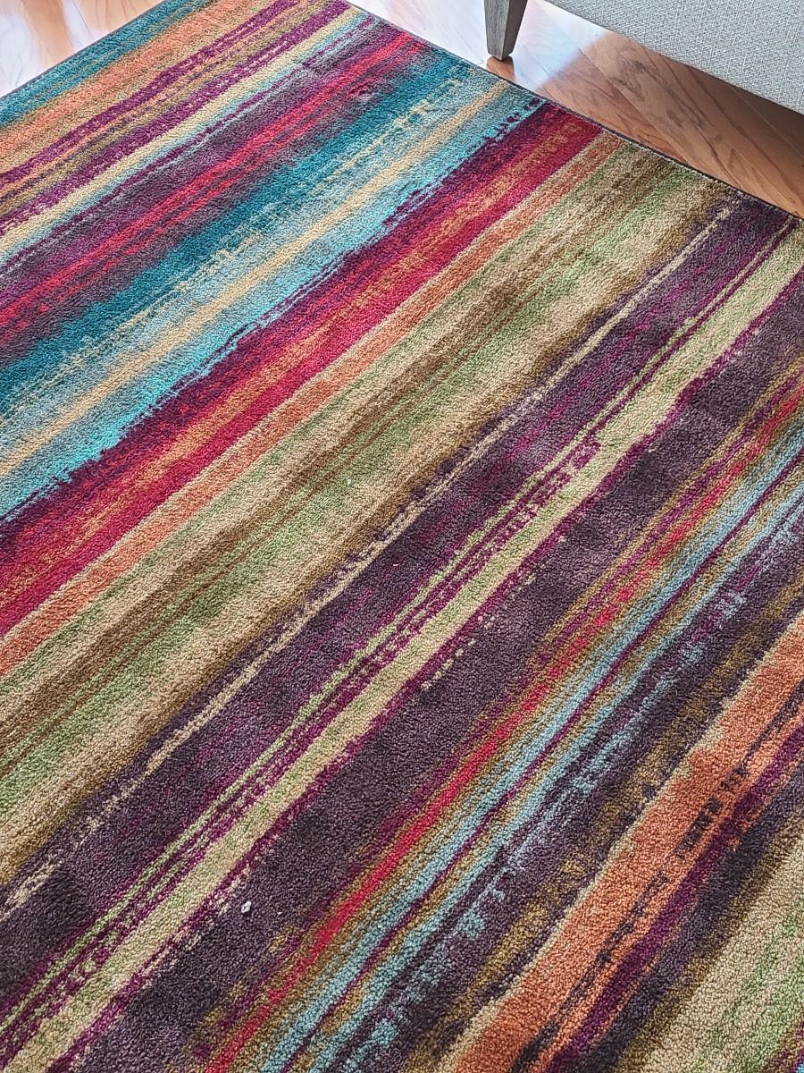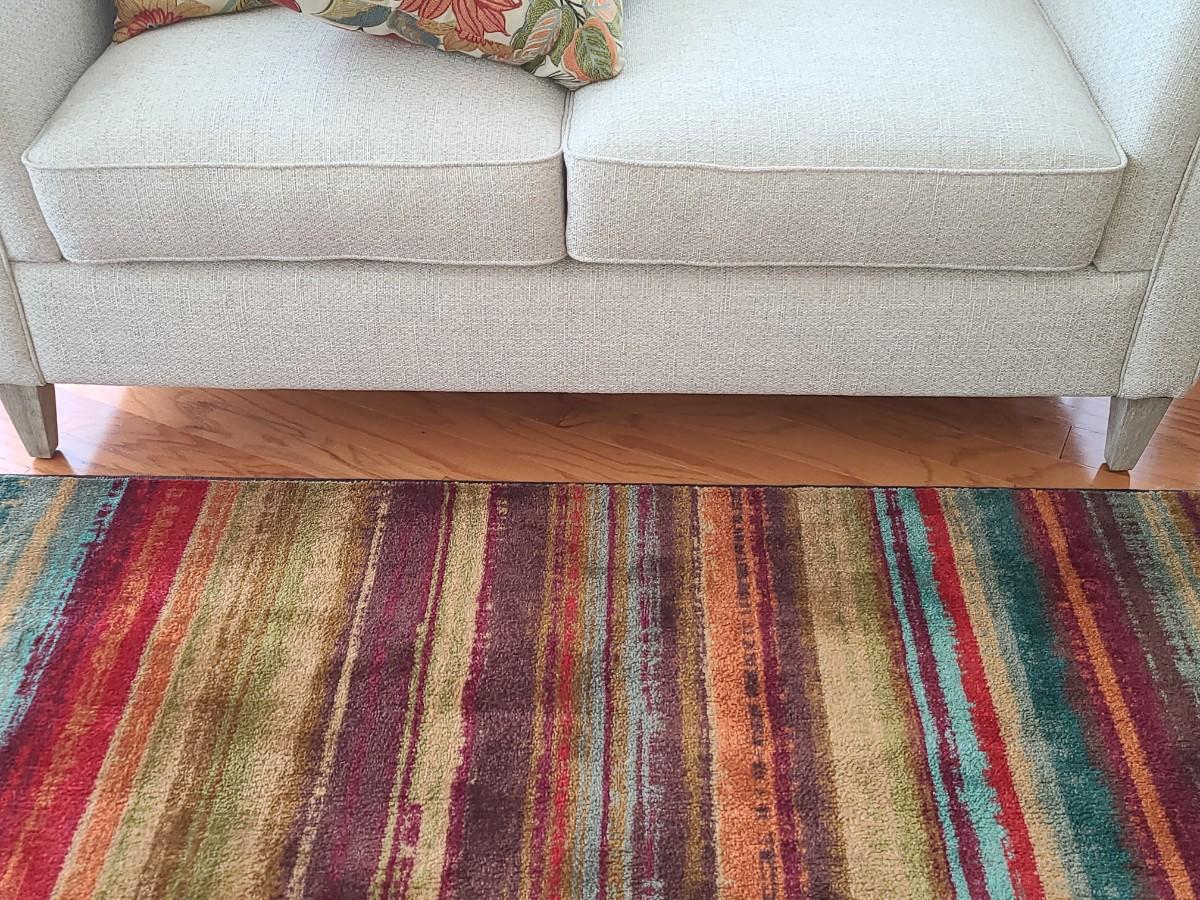Very nice accent rug only used in sitting room. Still looks new. Please see all pictures as they are the best representation of the items. The pictures show condition, measurements if taken, and what is included in the lot. Due to the large amount that we photograph and the time frame, we are not always able to take measurements. All items unless noted, are pre-owned and have been used. If you purchased furniture, you must bring help. We do not allow one person to carry large furniture out on their own. Bring help, tools and a truck for the safety of our client’s homes, and your personal safety. Any damages that result to the property including walls, and floors due to moving of the furniture will be charged to the buyer. Company policy. Thank you.