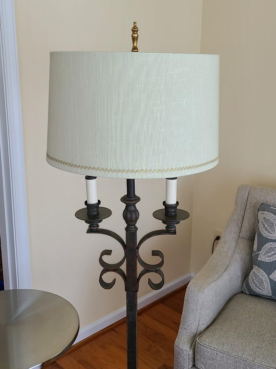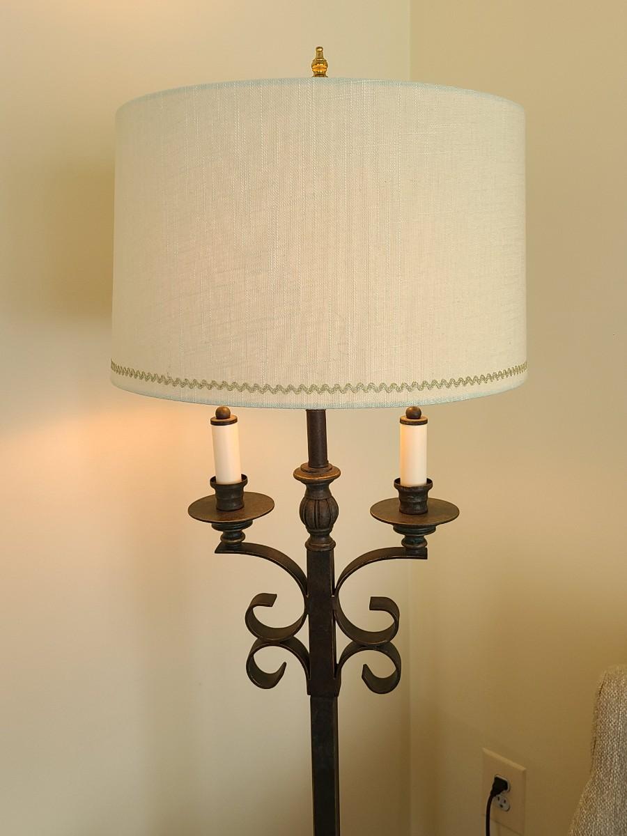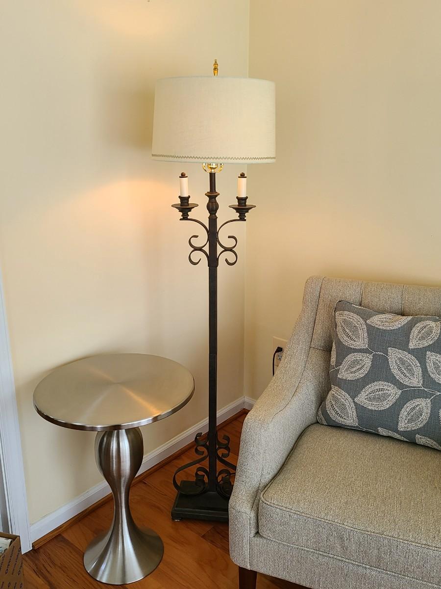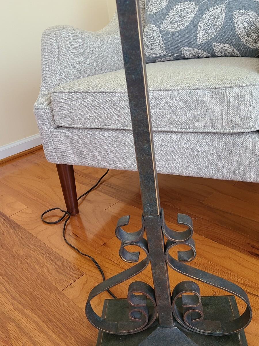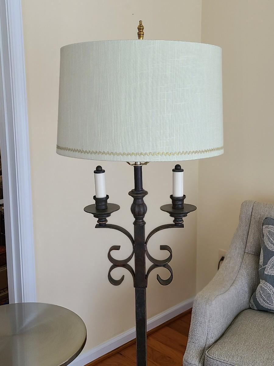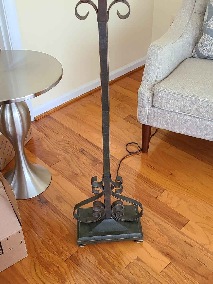 This lot is for the floor lamp only. Lovely metal floor lamp, bronze in color. This is a modern home piece designed to look older. Does have weight to it, but not cast iron. 63 inches tall. Please see all pictures as they are the best representation of the items. The pictures show condition, measurements if taken, and what is included in the lot. Due to the large amount that we photograph and the time frame, we are not always able to take measurements. All items unless noted, are pre-owned and have been used. If you purchased furniture, you must bring help. We do not allow one person to carry large furniture out on their own. Bring help, tools and a truck for the safety of our client’s homes, and your personal safety. Any damages that result to the property including walls, and floors due to moving of the furniture will be charged to the buyer. Company policy. Thank you.