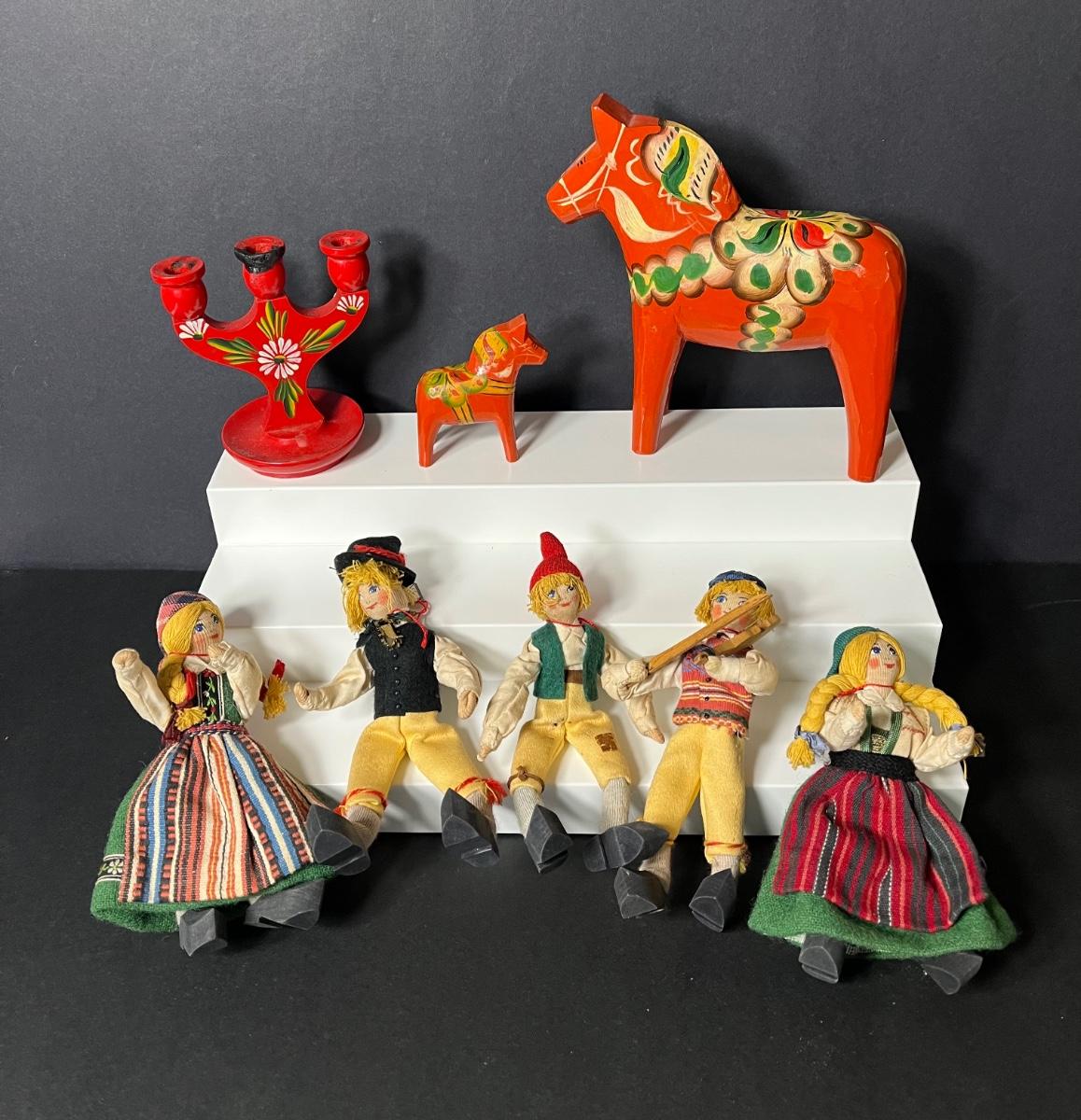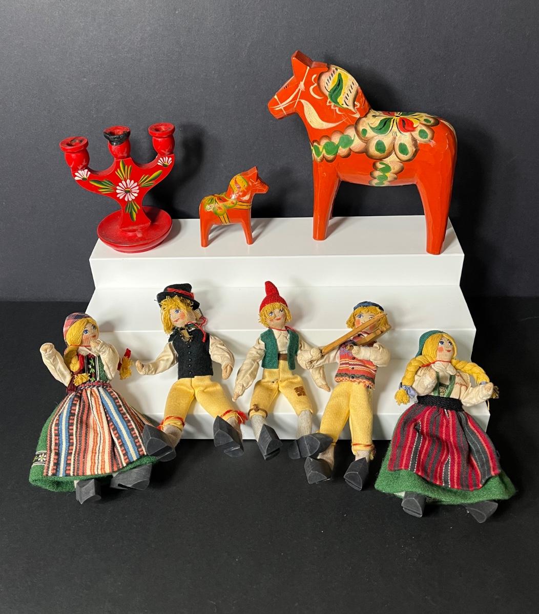 LOT 1: Swedish Souvenirs - Wooden Decor & Skansk Poseable Dolls w/ Wooden Shoes